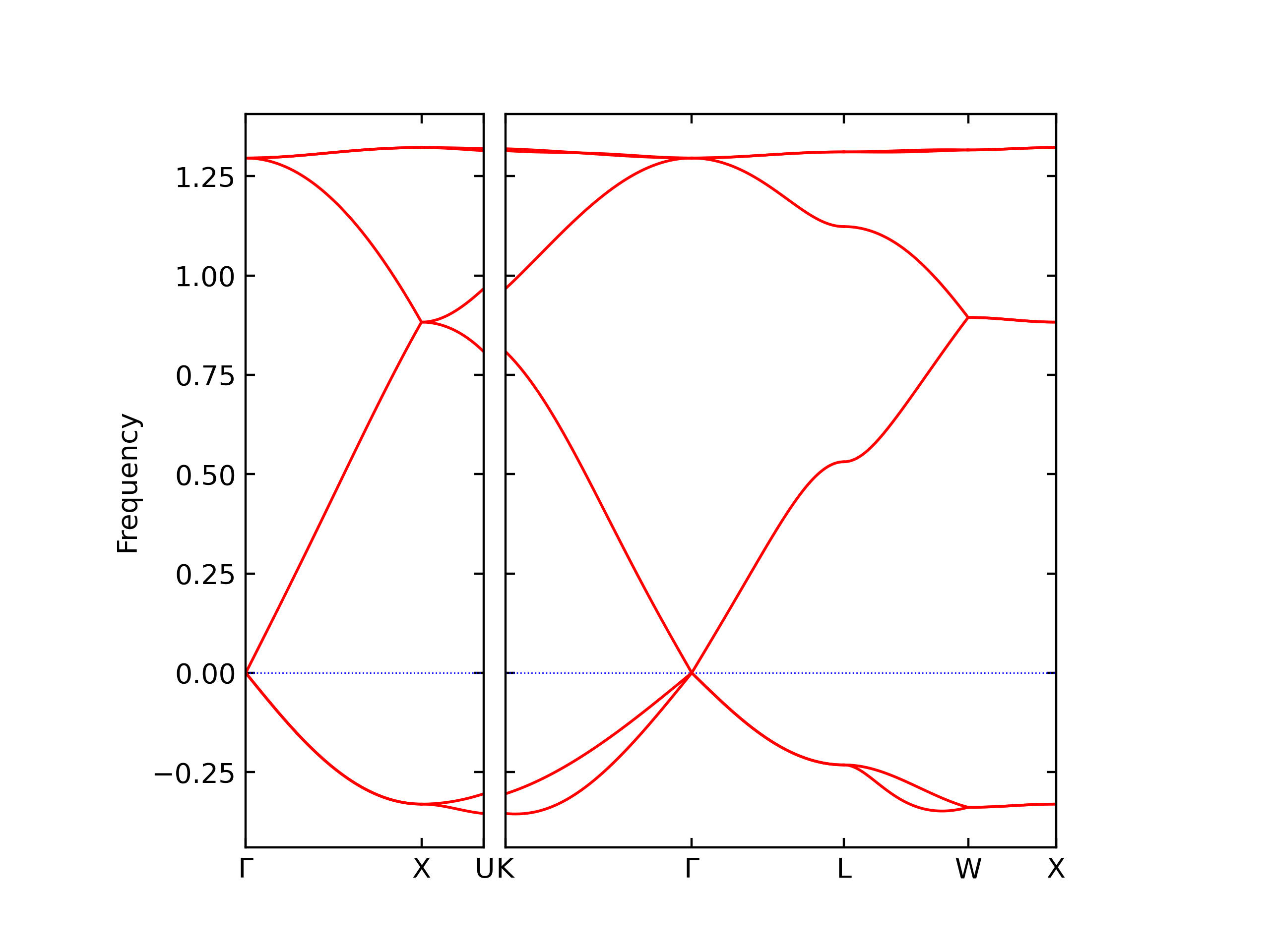 Phonon band structures and crystal properties estimated from quasi-harmonic approximation (QHA) calculations are displayed for select crystals. The calculations were performed using phonopy and LAMMPS. For the phonon calculations, 3x3 supercells of the potential-specific relaxed crystals were used. The QHA calculations were based on 11 strain states ranging from -0.05 to 0.05.