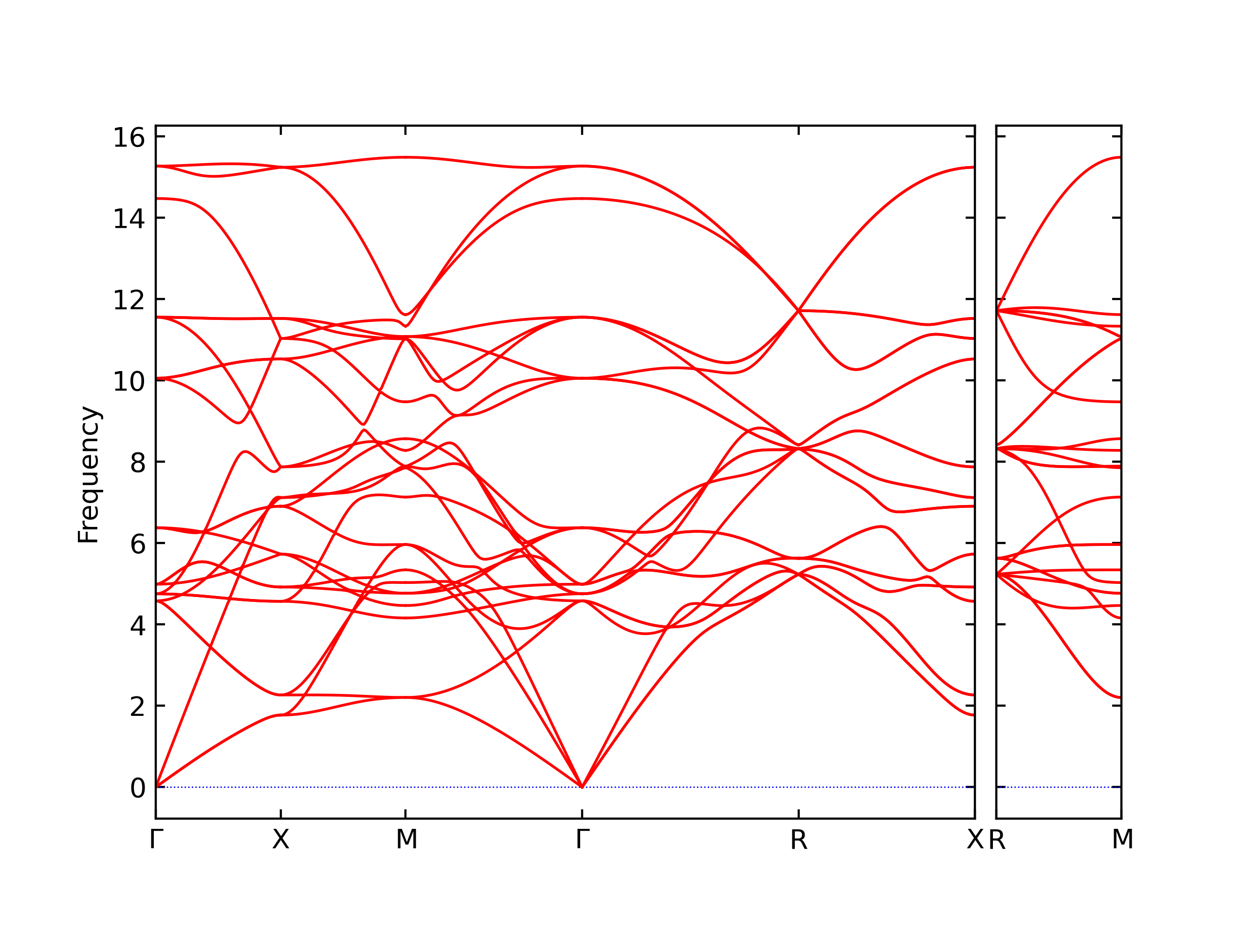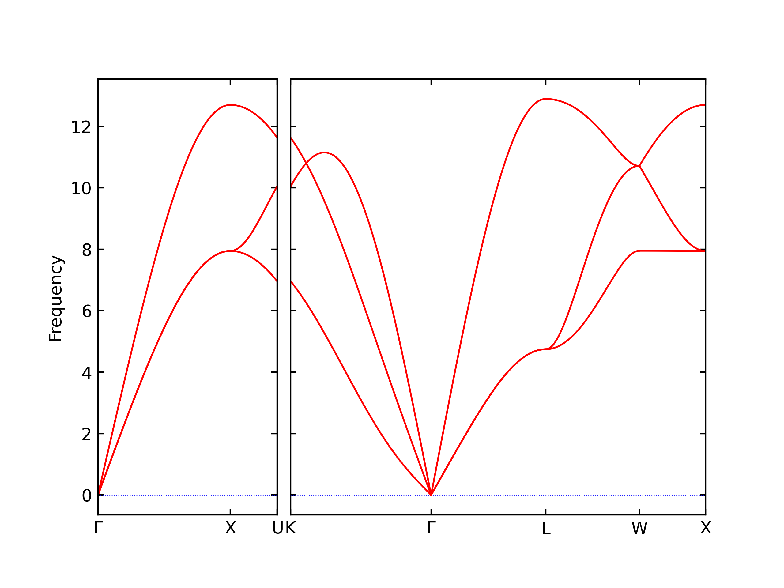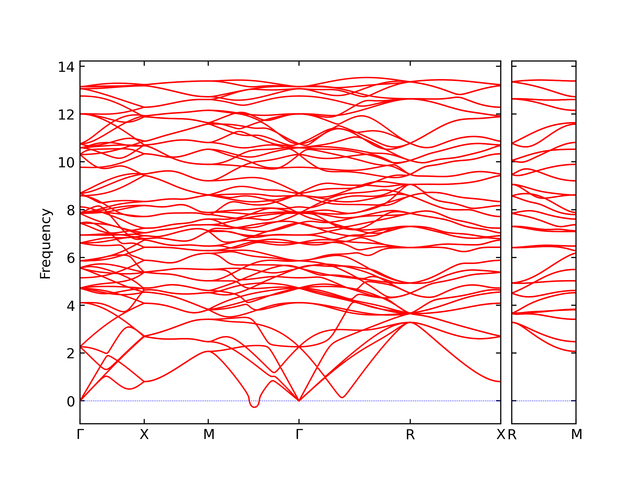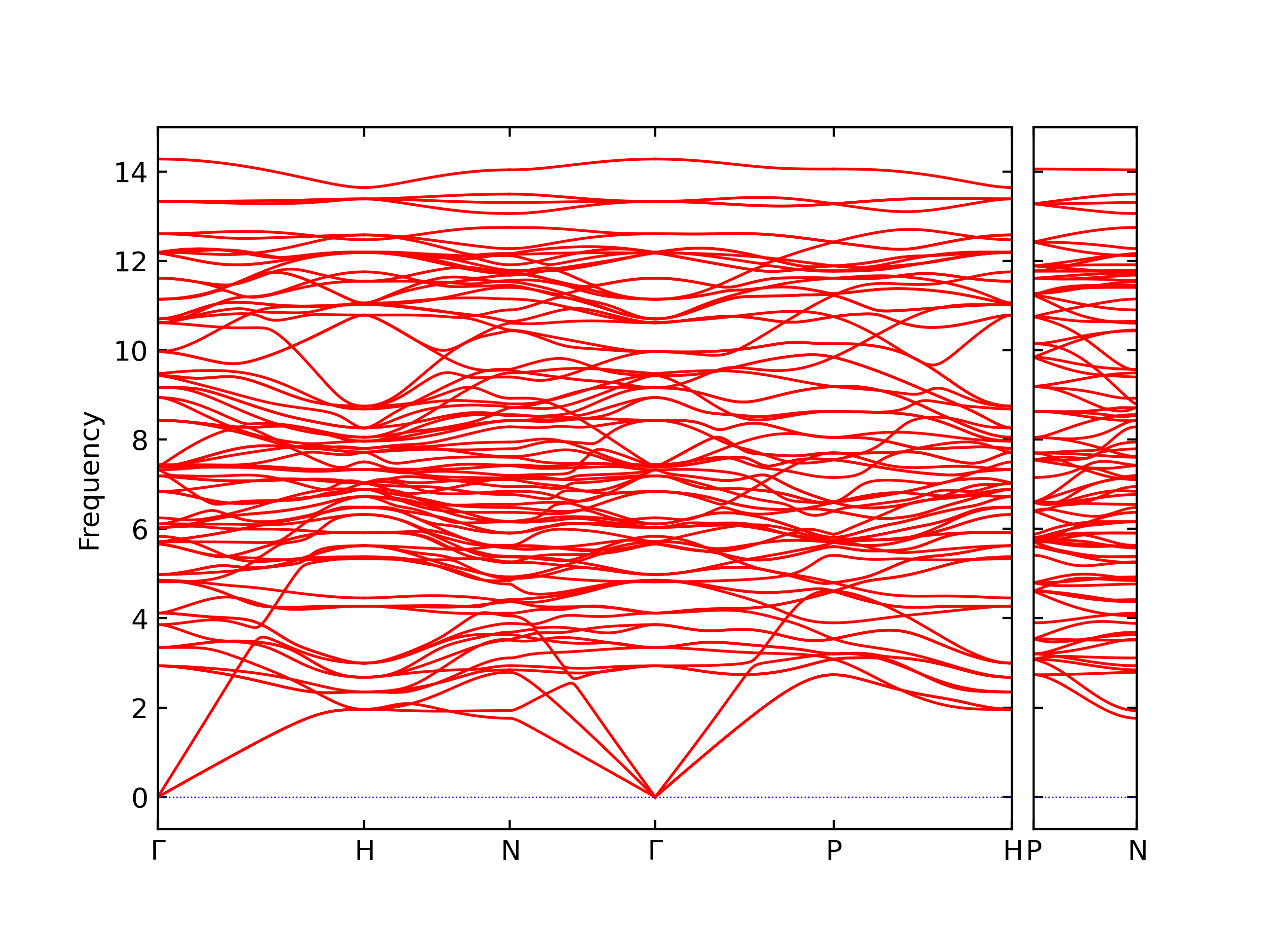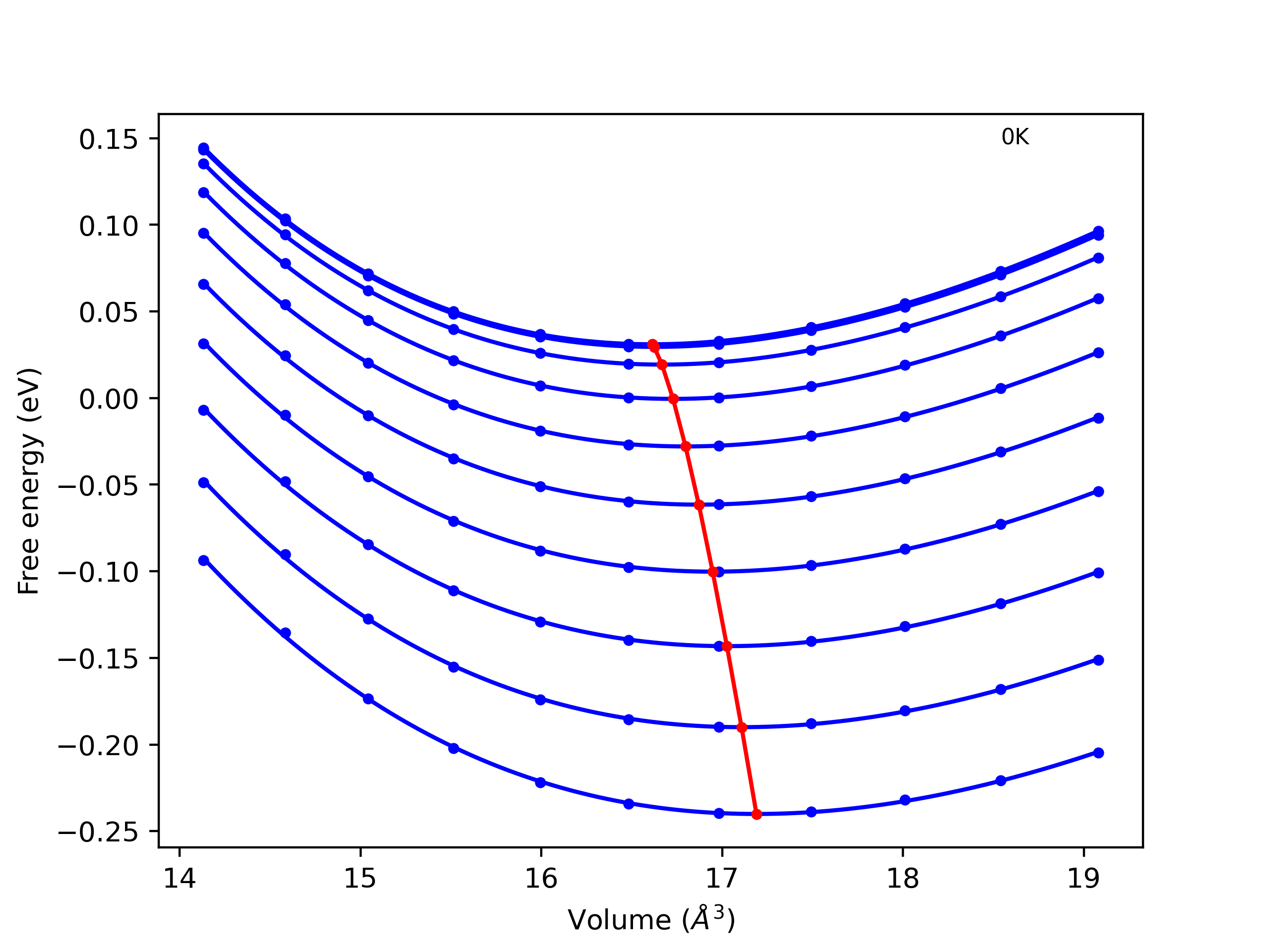 Phonon band structures and crystal properties estimated from quasi-harmonic approximation (QHA) calculations are displayed for select crystals. The calculations were performed using phonopy and LAMMPS. For the phonon calculations, 3x3 supercells of the potential-specific relaxed crystals were used. The QHA calculations were based on 11 strain states ranging from -0.05 to 0.05.