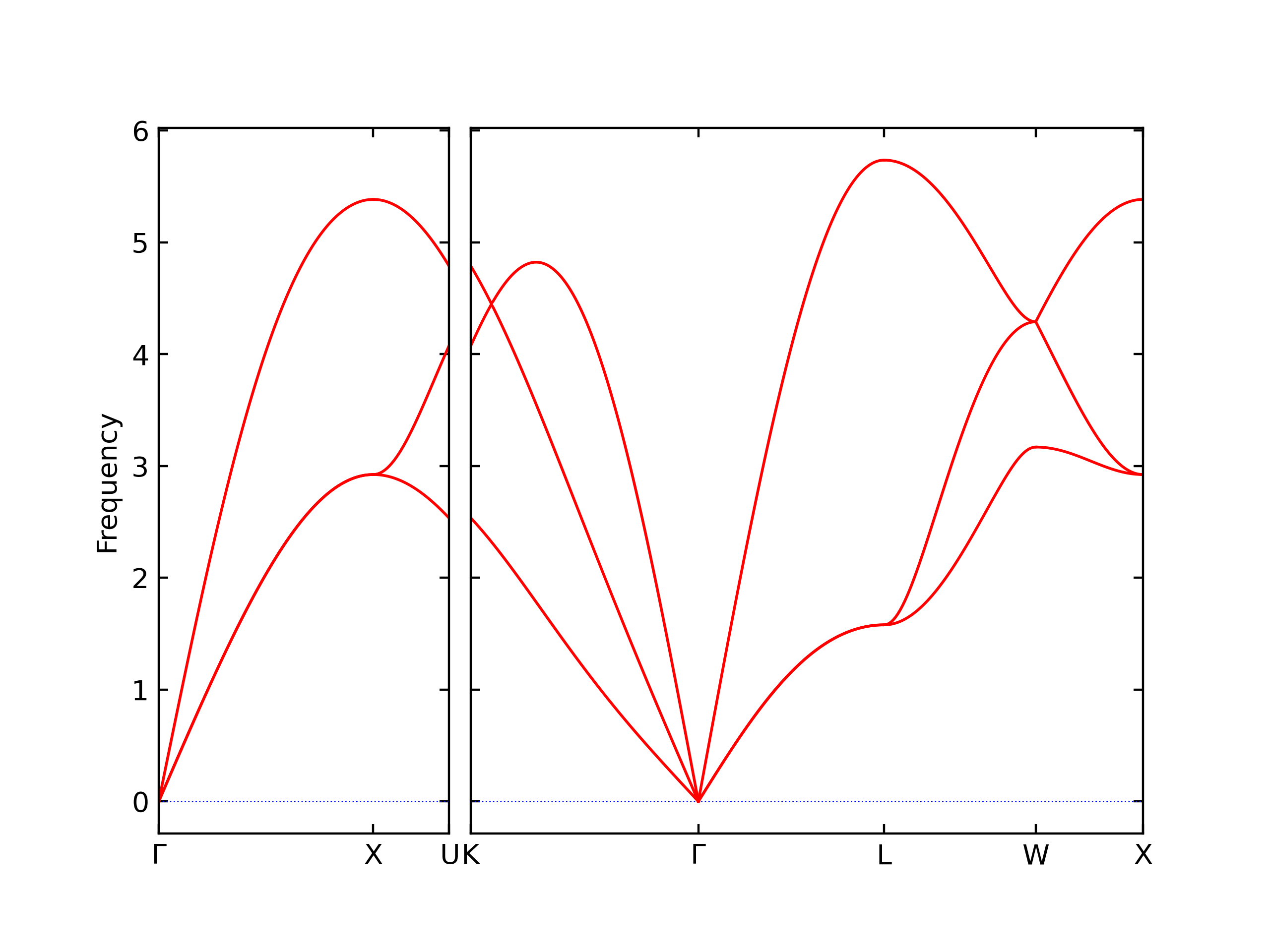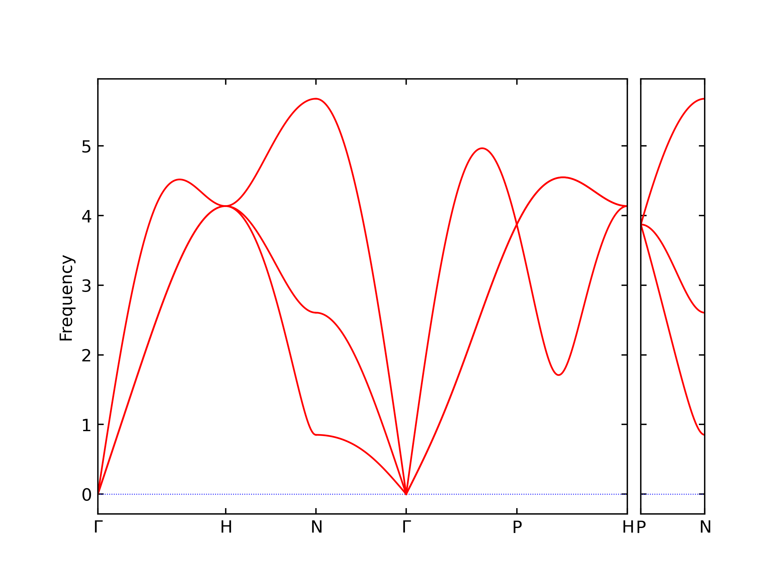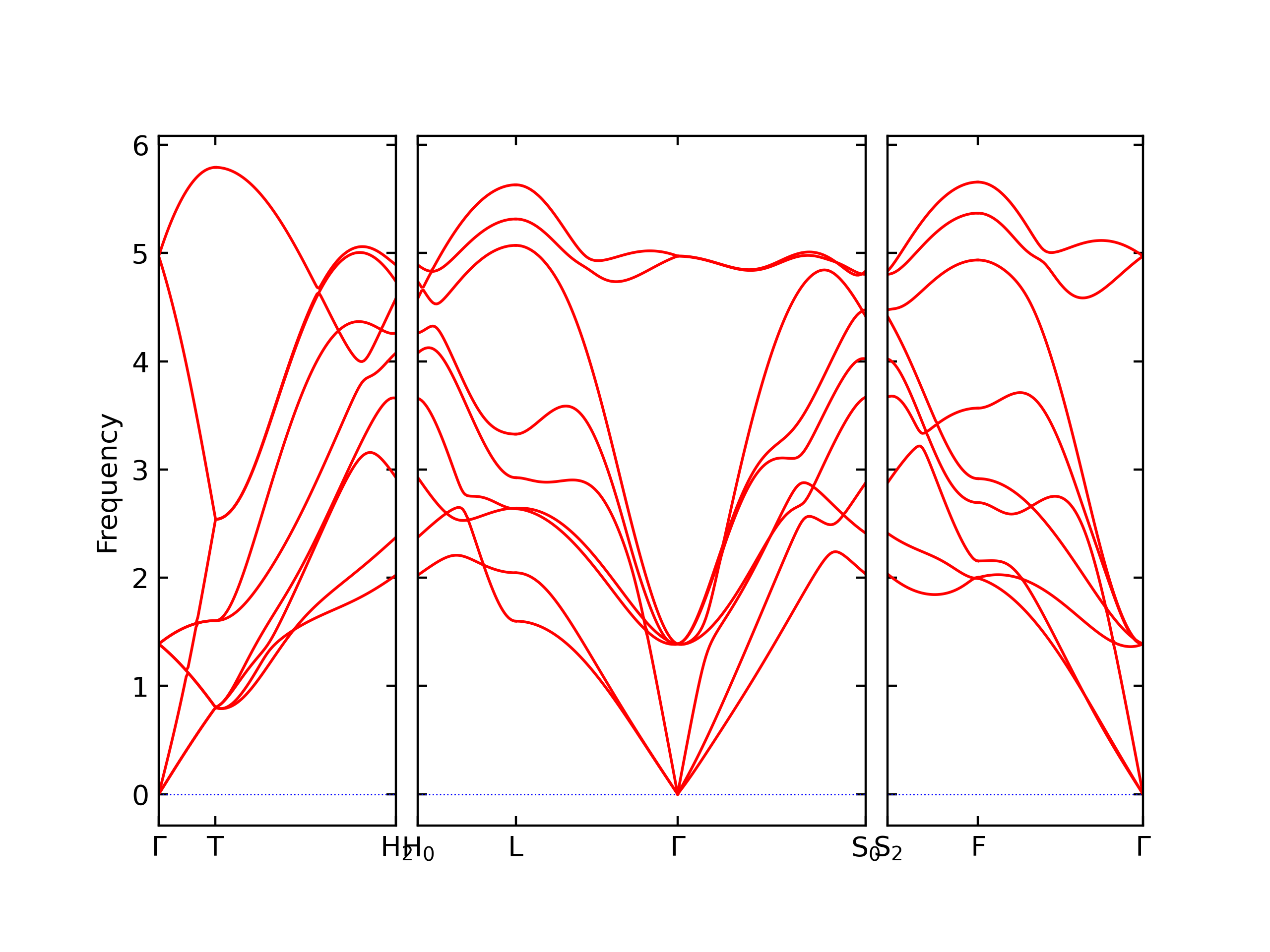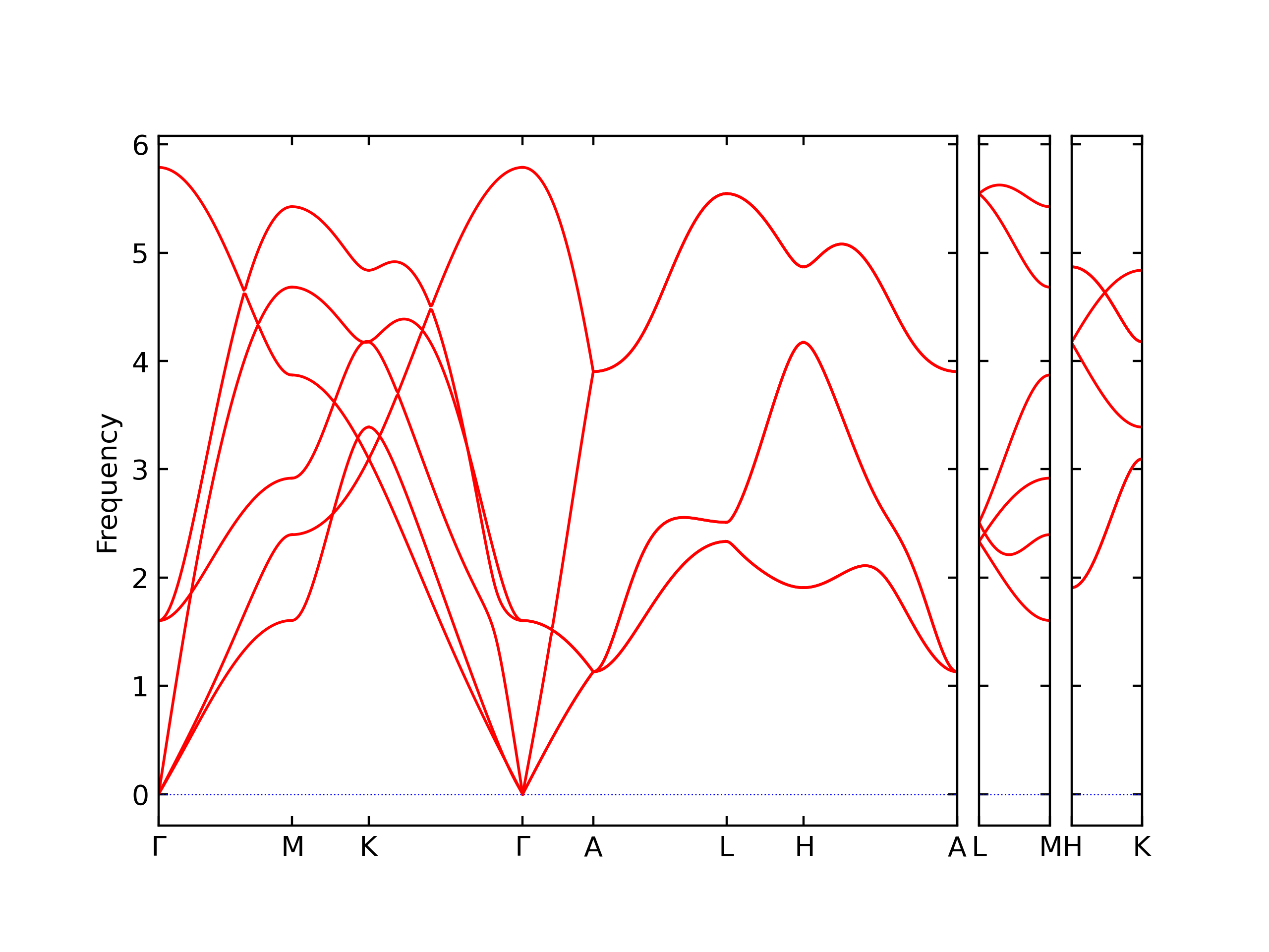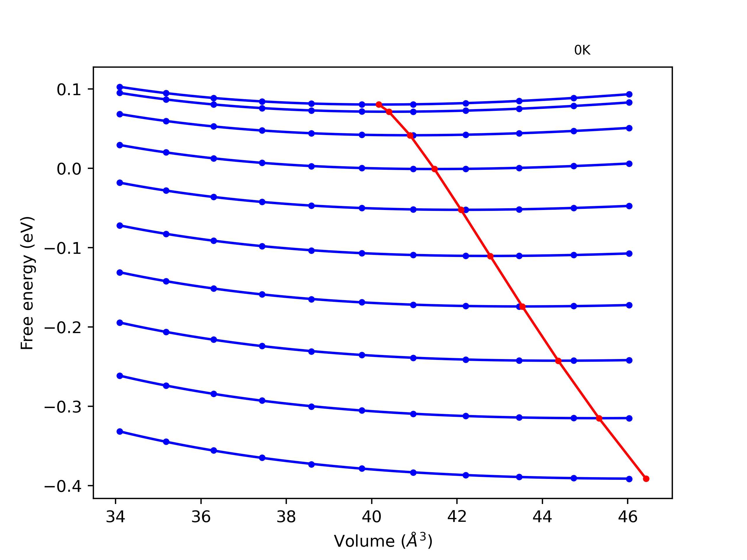 Phonon band structures and crystal properties estimated from quasi-harmonic approximation (QHA) calculations are displayed for select crystals. The calculations were performed using phonopy and LAMMPS. For the phonon calculations, 3x3 supercells of the potential-specific relaxed crystals were used. The QHA calculations were based on 11 strain states ranging from -0.05 to 0.05.
