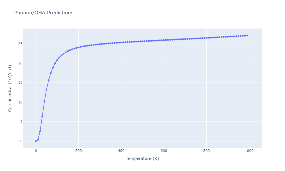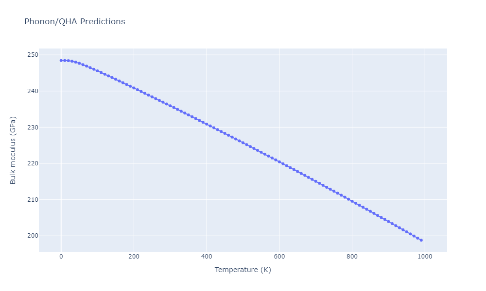 • For succinctness, the elastic constants displayed here are averaged according to the 0 K structure's crystal symmetry family. If the structures deviate from the expected symmetry at higher temperatures, the values may not be valid. Raw results are available for verification if requested.