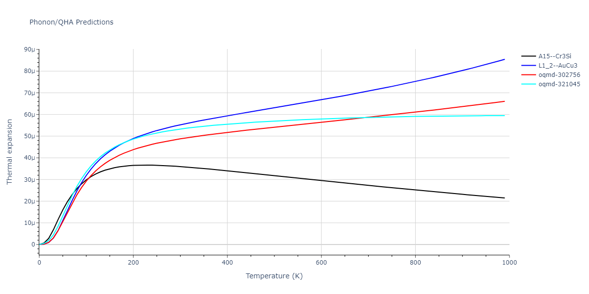 • The maximum temperature shown for a crystal either corresponds to the maximum value that has been computed so far, or the maximum value that the structure is believed to have remained untransformed. The unstable/transformation temperature identification is mostly automated and can miss transitions not associated with large discontinuities in property values with changing temperature.