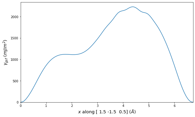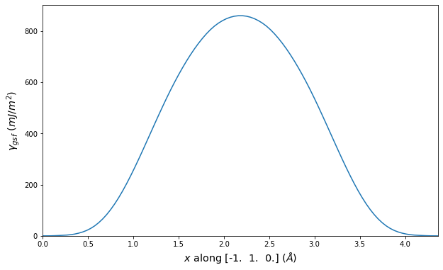 5. The stacking fault energy for a given shift is computed by comparing the energy of the system before and after applying the shift, and dividing by the area of the fault plane