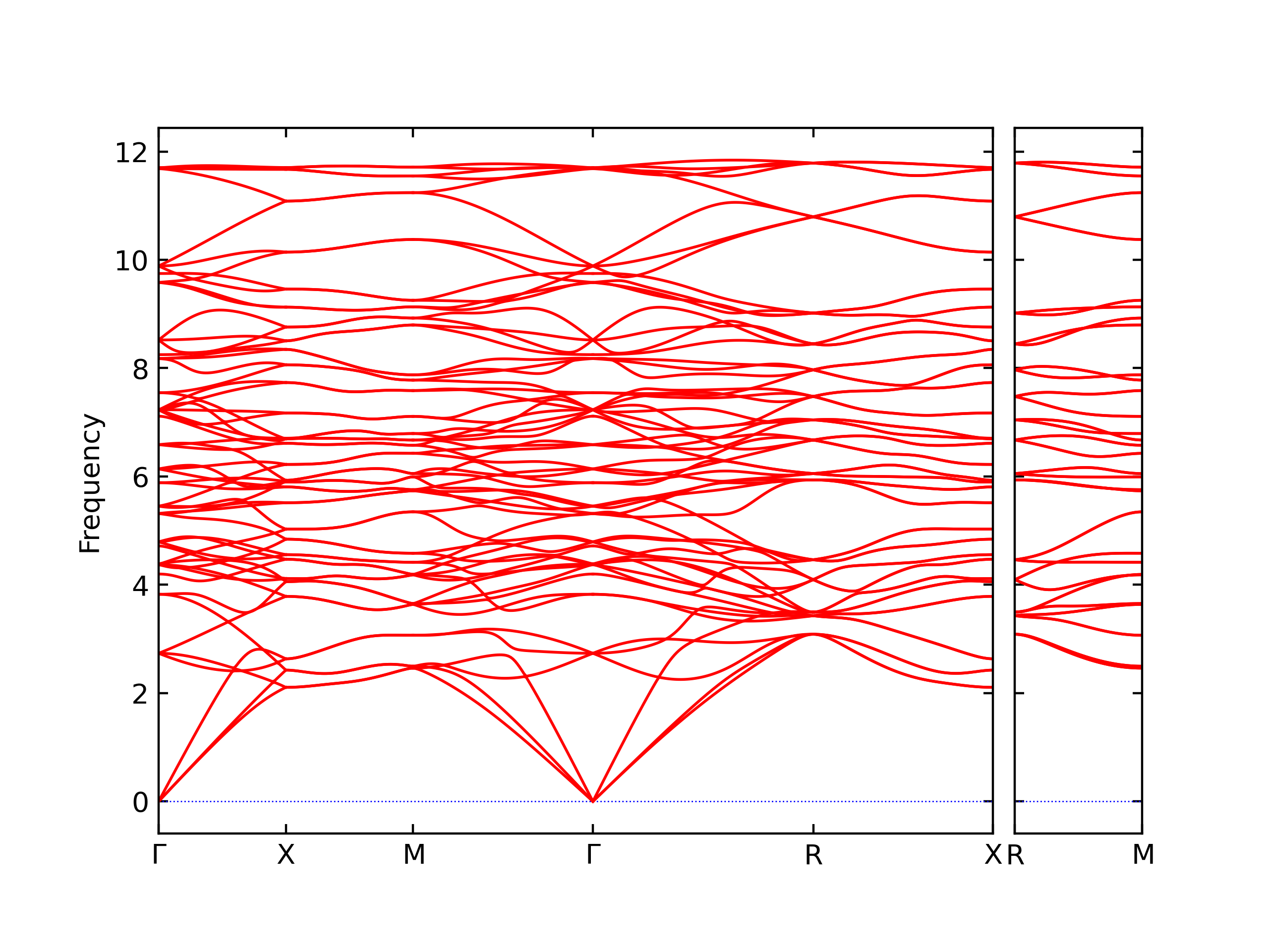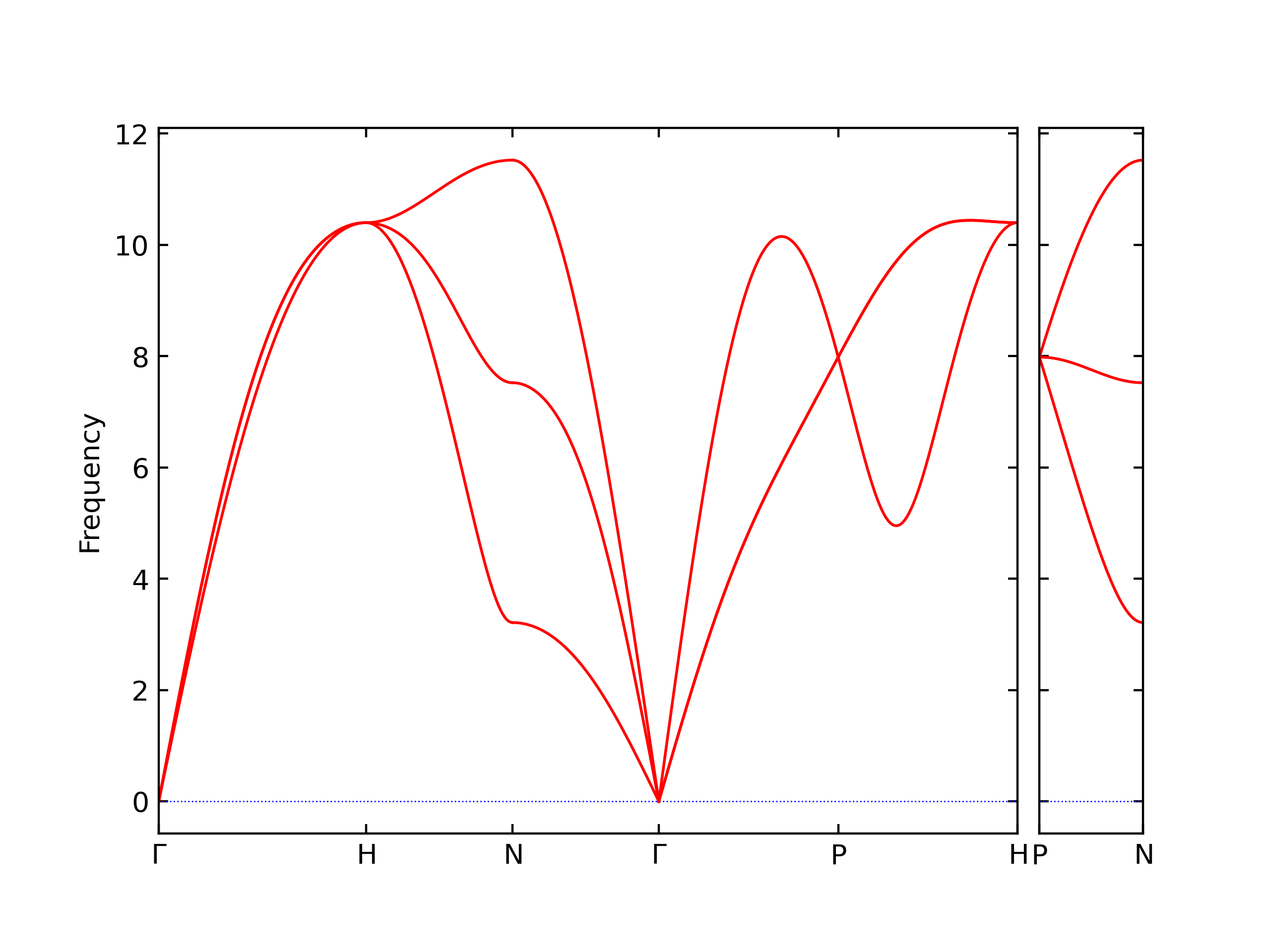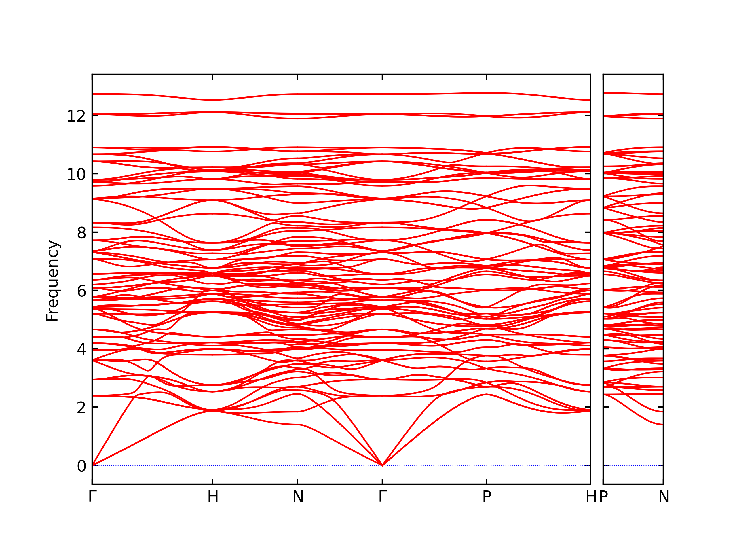 Phonon band structures and crystal properties estimated from quasi-harmonic approximation (QHA) calculations are displayed for select crystals. The calculations were performed using phonopy and LAMMPS. For the phonon calculations, 3x3 supercells of the potential-specific relaxed crystals were used. The QHA calculations were based on 11 strain states ranging from -0.05 to 0.05.