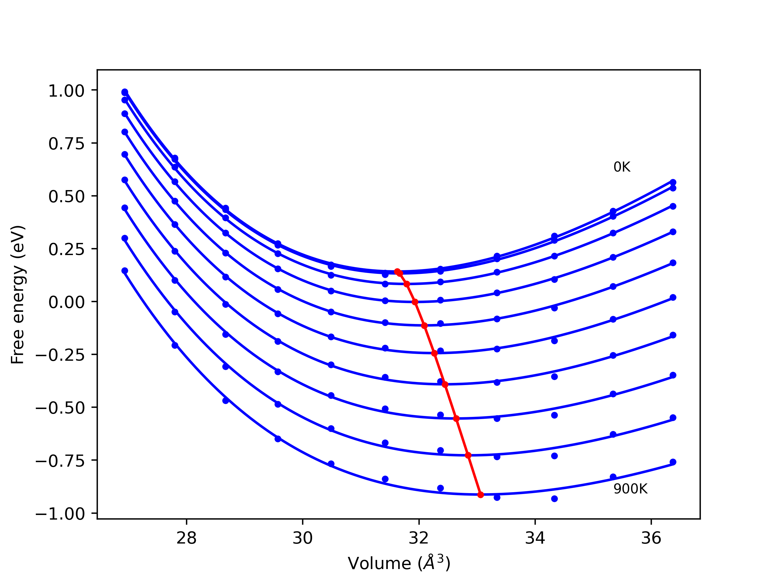Plots of potential energy vs interatomic spacing, r, are shown below for a number of crystal structures. The structures are generated based on the ideal atomic positions and b/a and c/a lattice parameter ratios for a given crystal prototype. The size of the system is then uniformly scaled, and the energy calculated without relaxing the system. To obtain these plots, values of r are evaluated every 0.02 Å up to 6 Å.