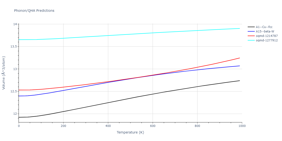 • QHA results may not be available for all crystal structures that have phonon results. Missing QHA results indicates an issue either with the strained states or with the QHA calculation itself.
