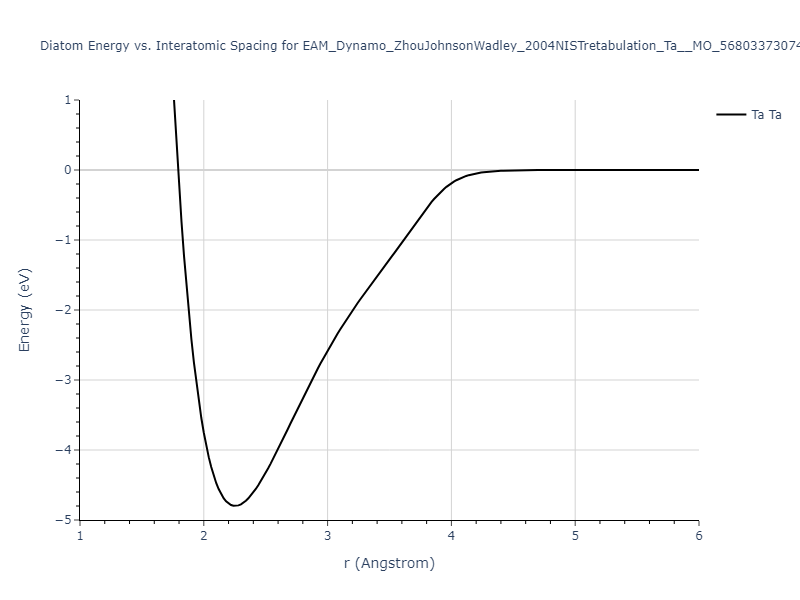 Plots of potential energy vs interatomic spacing, r, are shown below for a number of crystal structures. The structures are generated based on the ideal atomic positions and b/a and c/a lattice parameter ratios for a given crystal prototype. The size of the system is then uniformly scaled, and the energy calculated without relaxing the system. To obtain these plots, values of r are evaluated every 0.02 Å up to 6 Å.