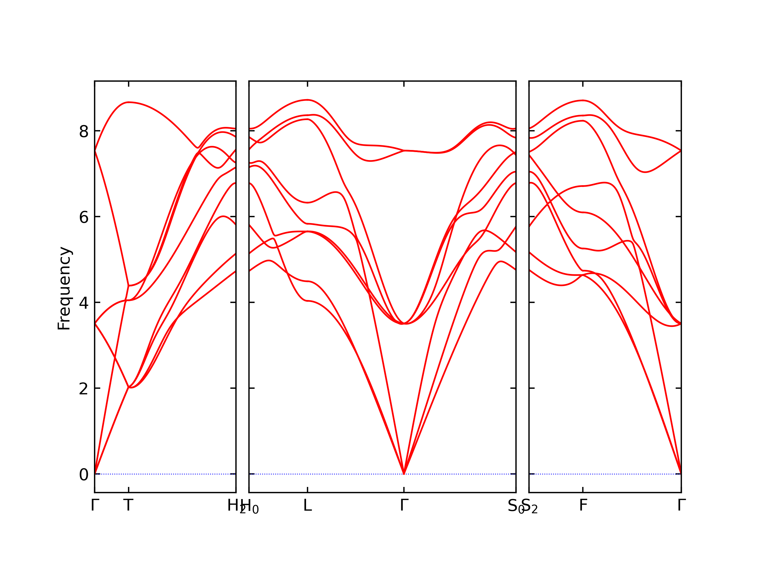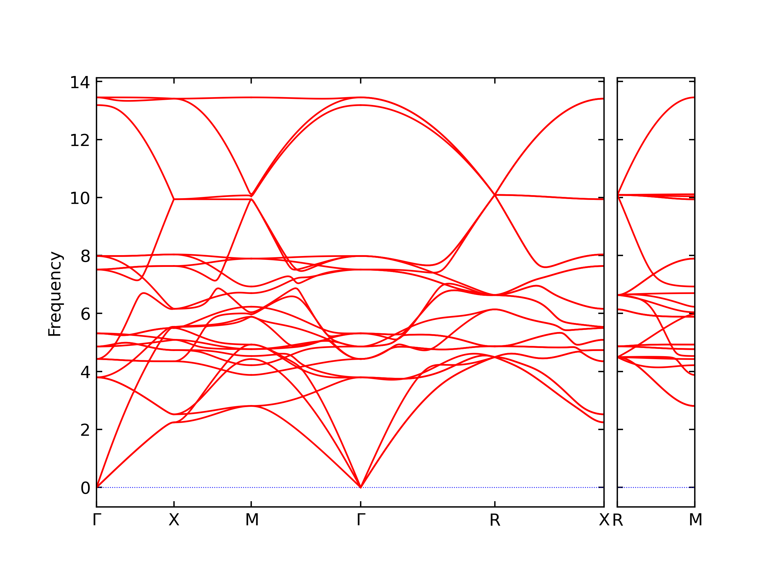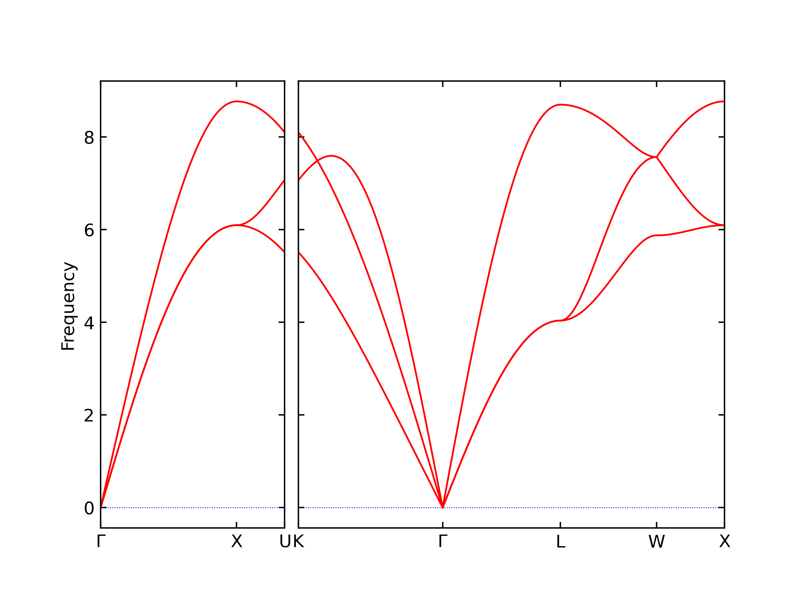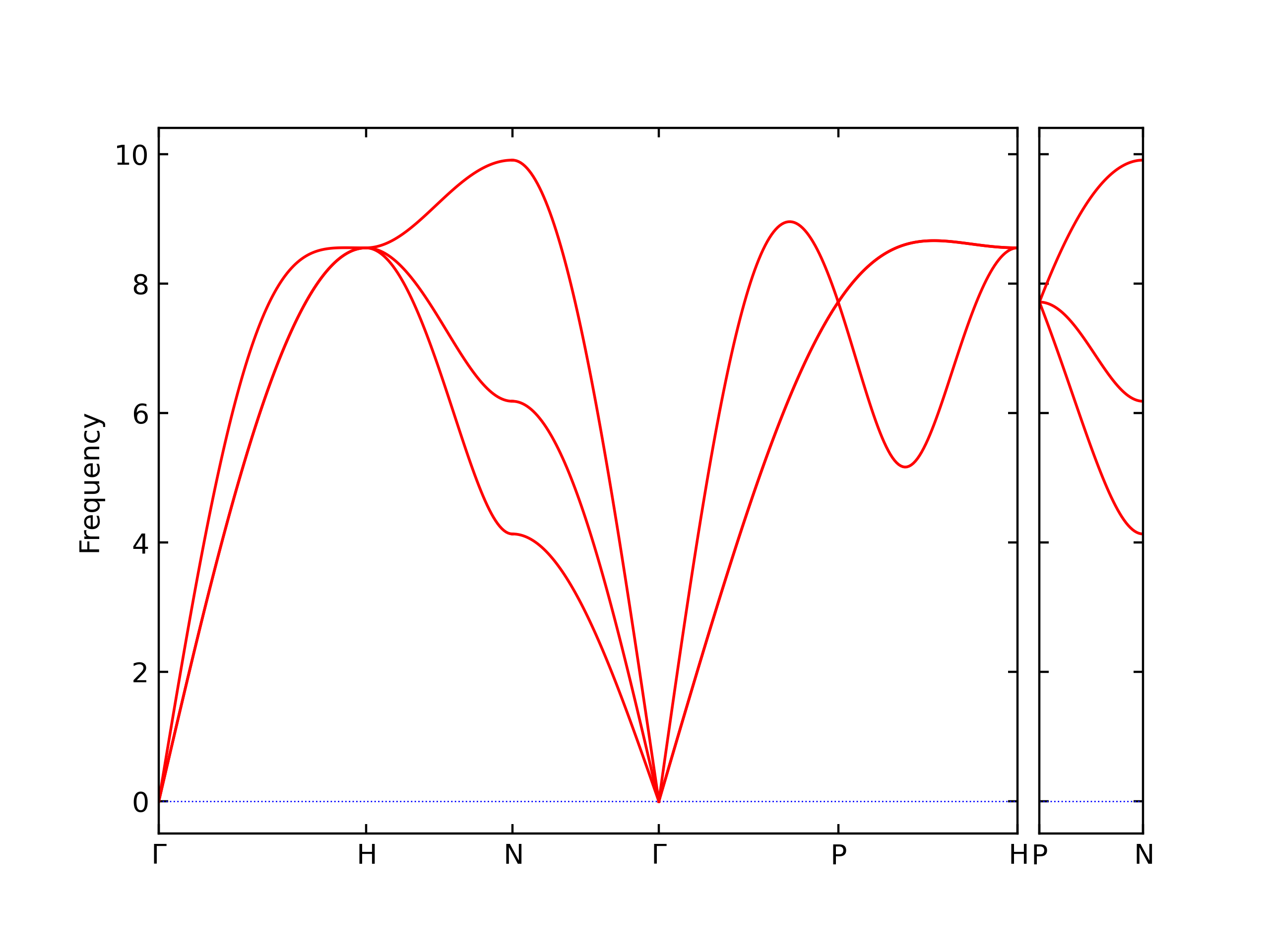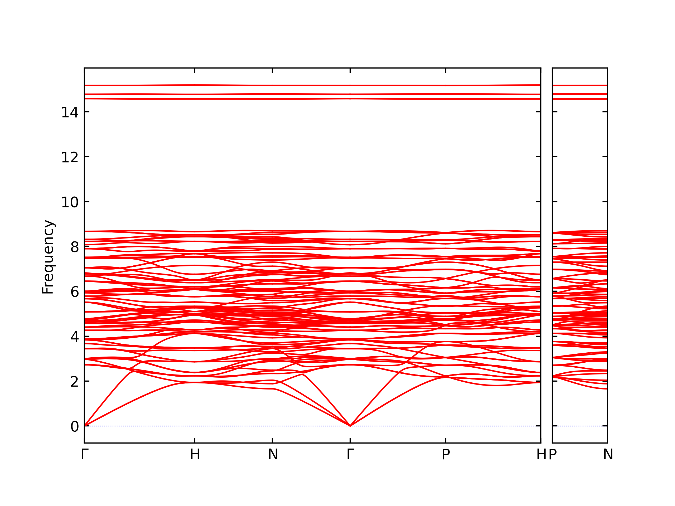 Phonon band structures and crystal properties estimated from quasi-harmonic approximation (QHA) calculations are displayed for select crystals. The calculations were performed using phonopy and LAMMPS. For the phonon calculations, 3x3 supercells of the potential-specific relaxed crystals were used. The QHA calculations were based on 11 strain states ranging from -0.05 to 0.05.