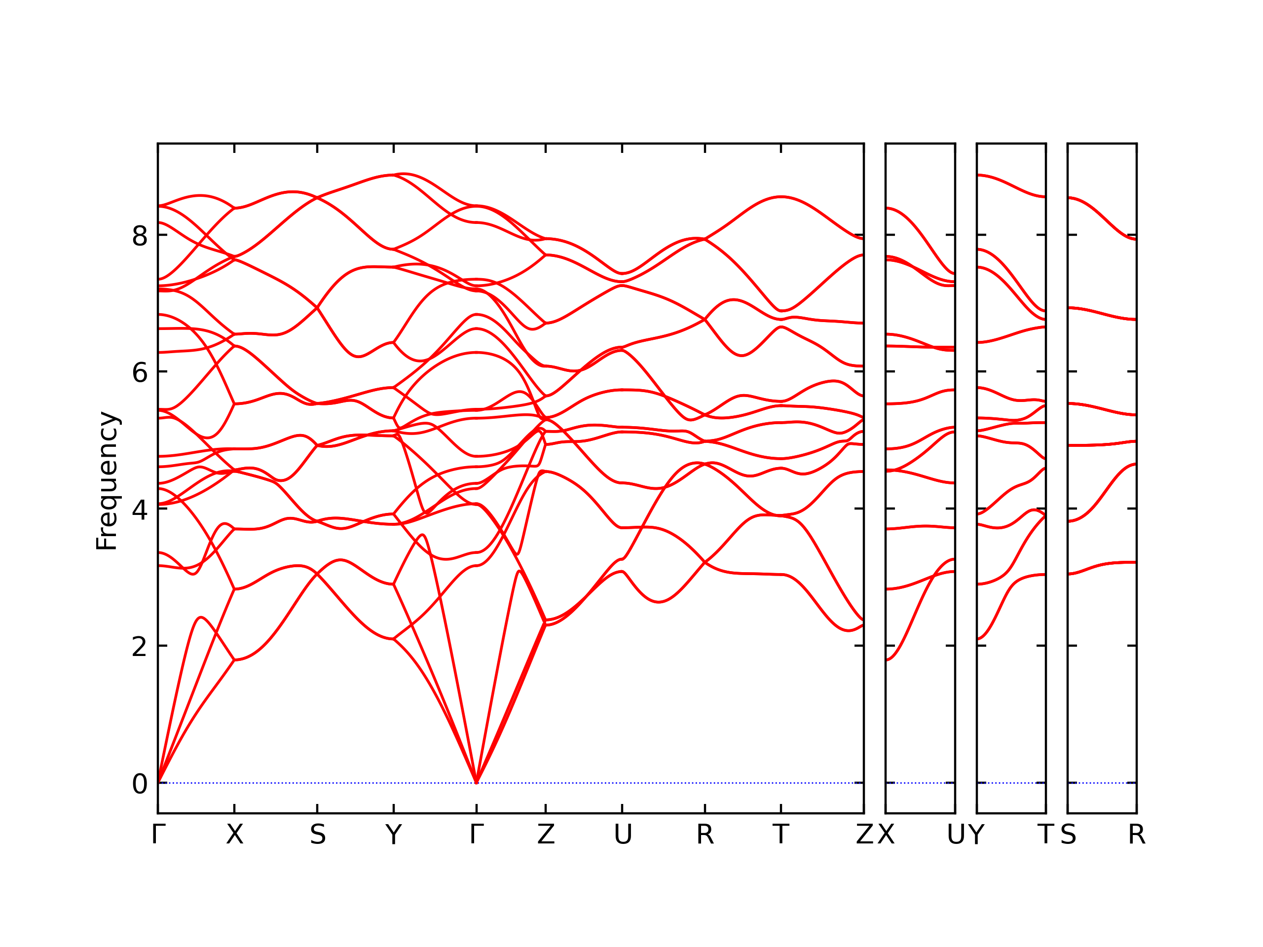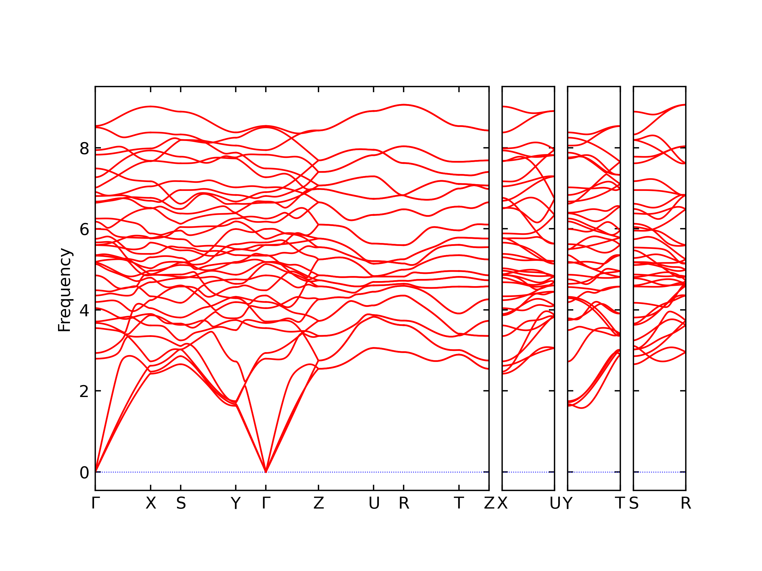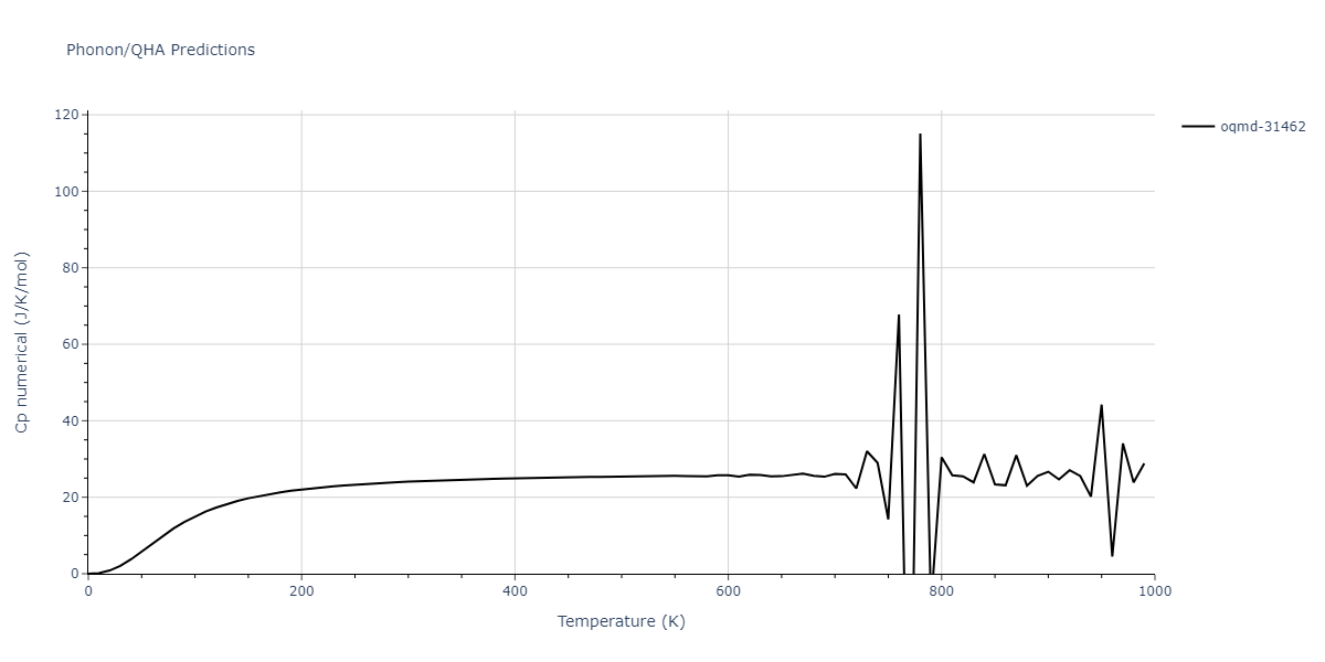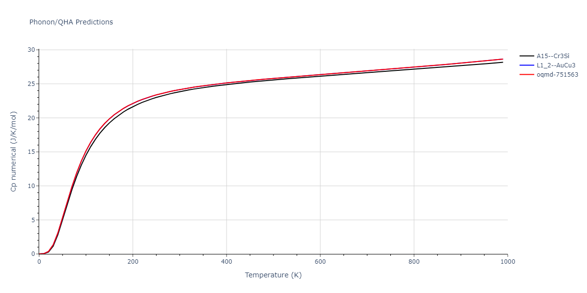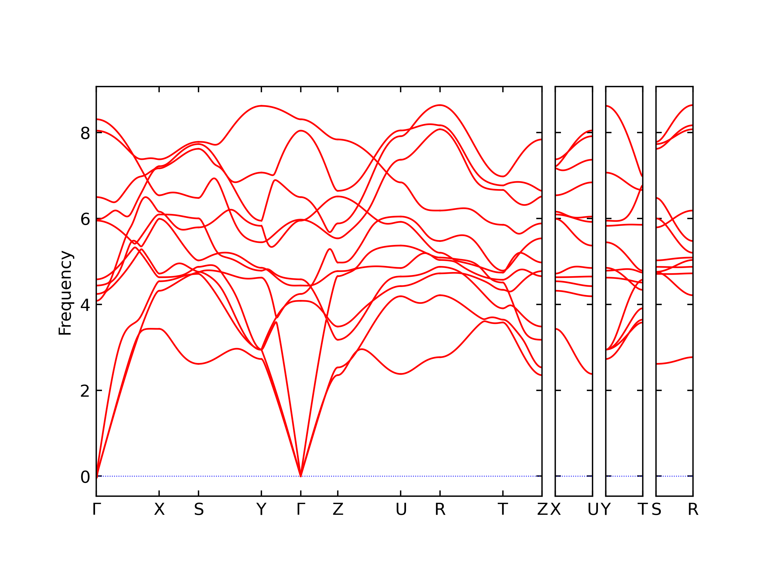 Phonon band structures and crystal properties estimated from quasi-harmonic approximation (QHA) calculations are displayed for select crystals. The calculations were performed using phonopy and LAMMPS. For the phonon calculations, 3x3 supercells of the potential-specific relaxed crystals were used. The QHA calculations were based on 11 strain states ranging from -0.05 to 0.05.