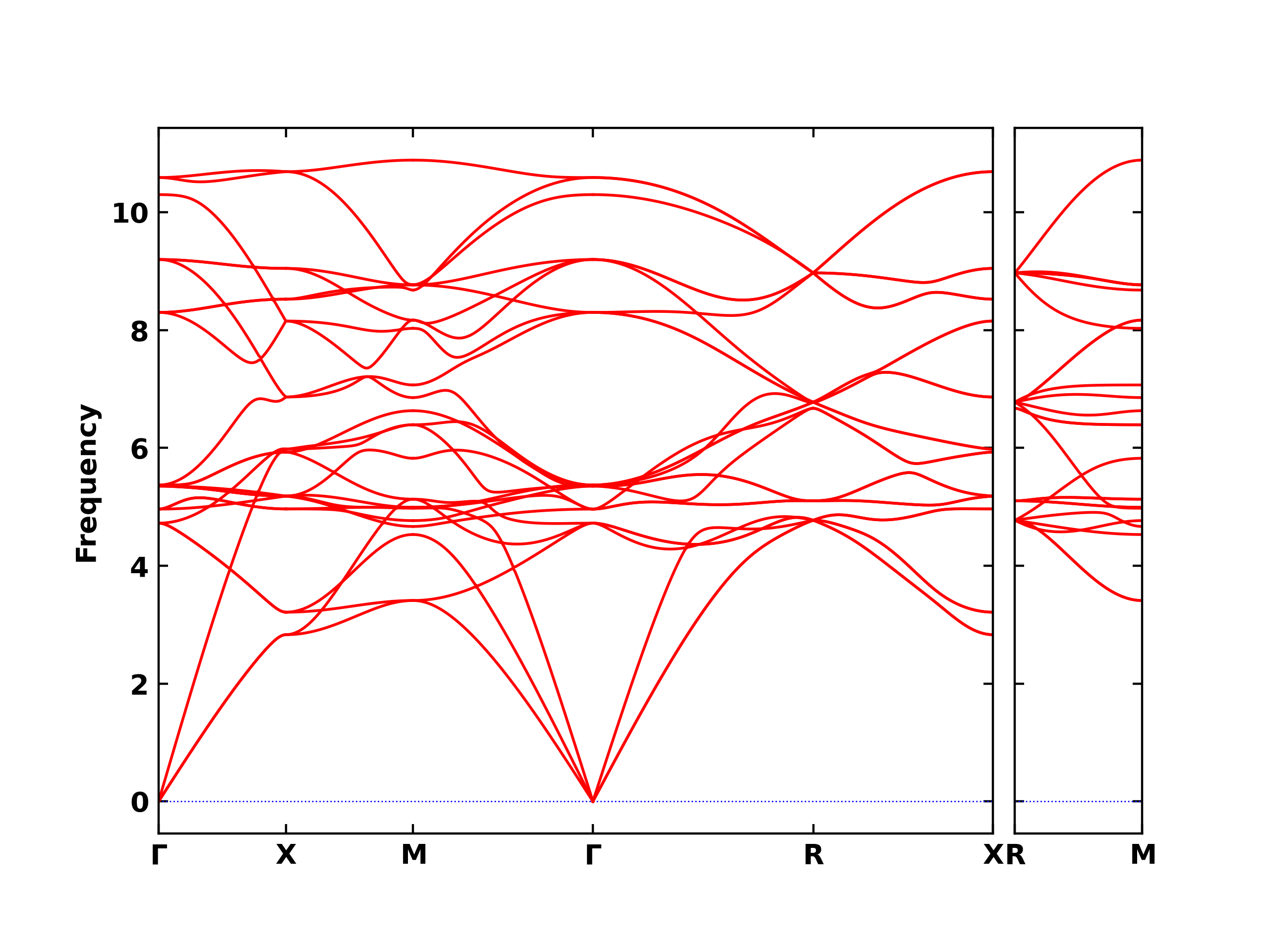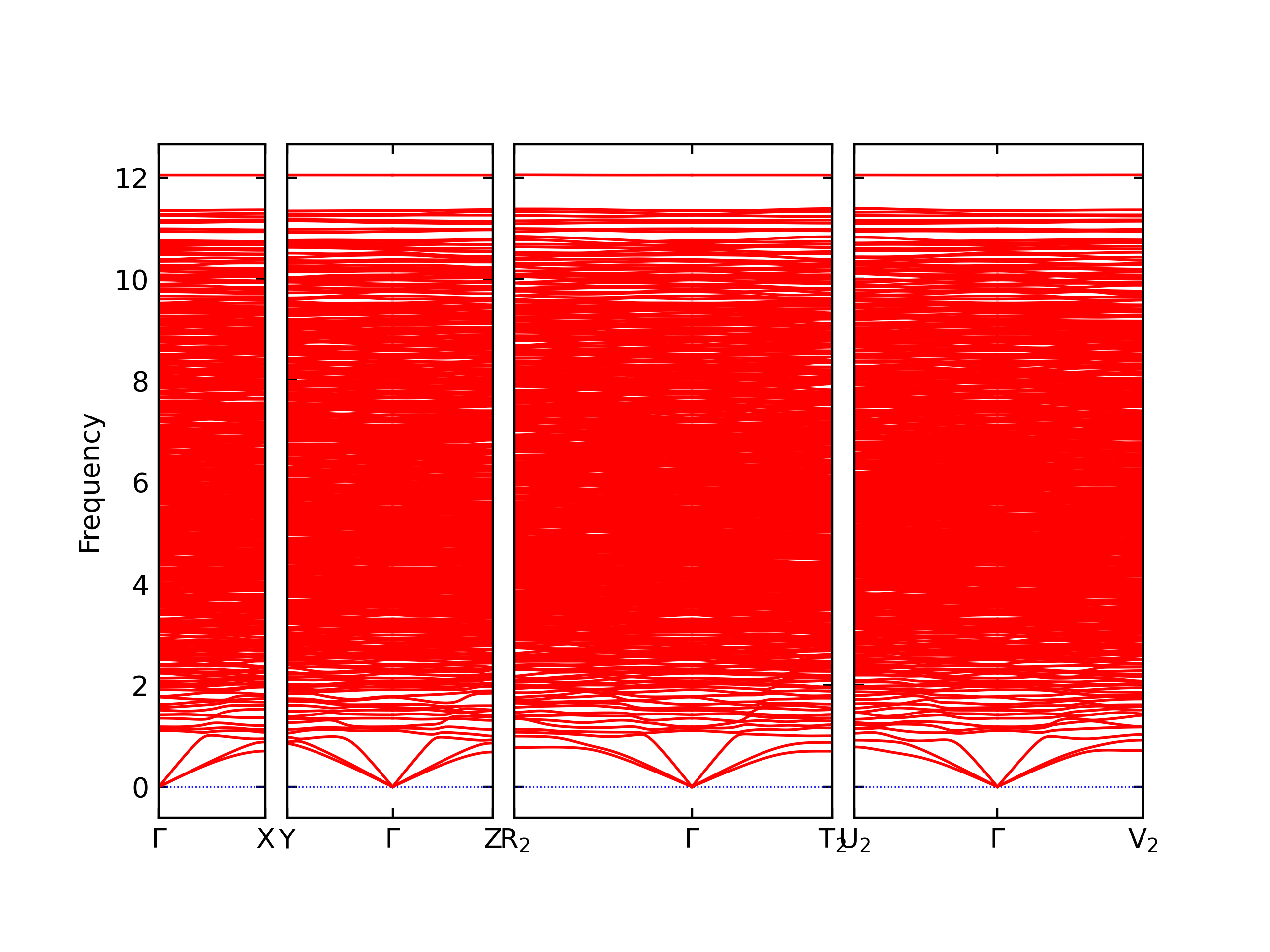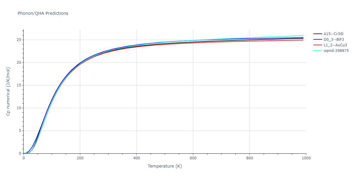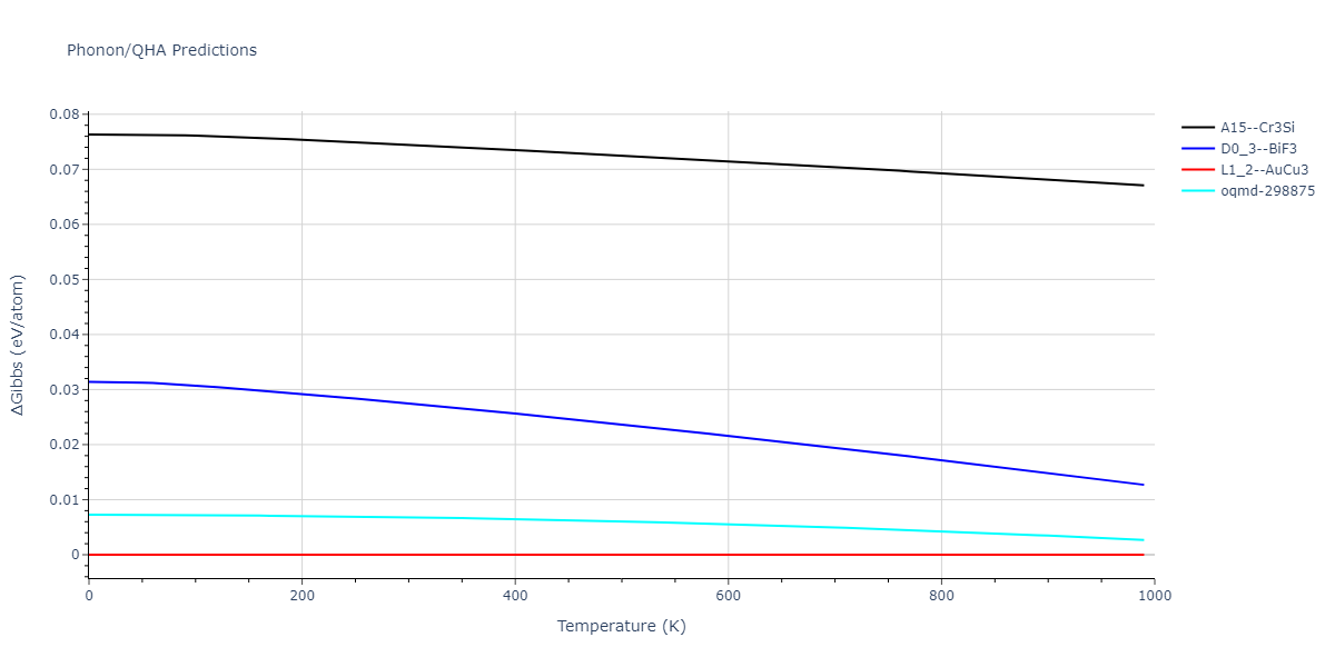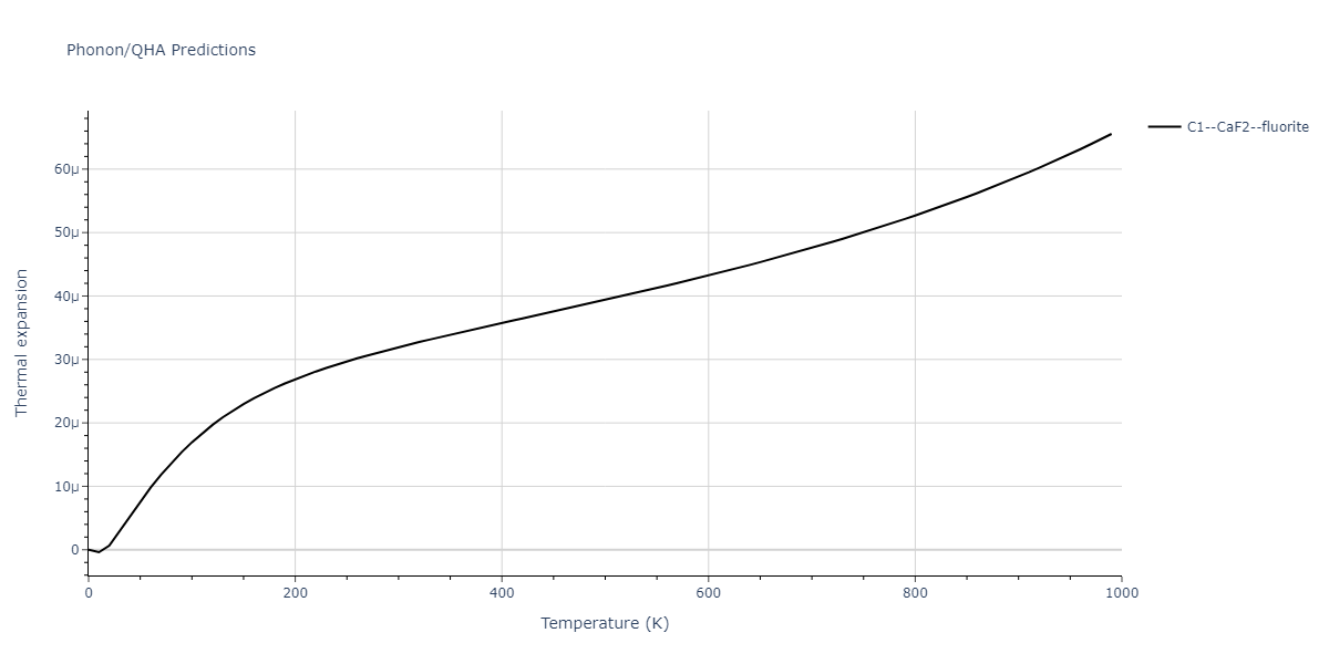 Phonon band structures and crystal properties estimated from quasi-harmonic approximation (QHA) calculations are displayed for select crystals. The calculations were performed using phonopy and LAMMPS. For the phonon calculations, 3x3 supercells of the potential-specific relaxed crystals were used. The QHA calculations were based on 11 strain states ranging from -0.05 to 0.05.