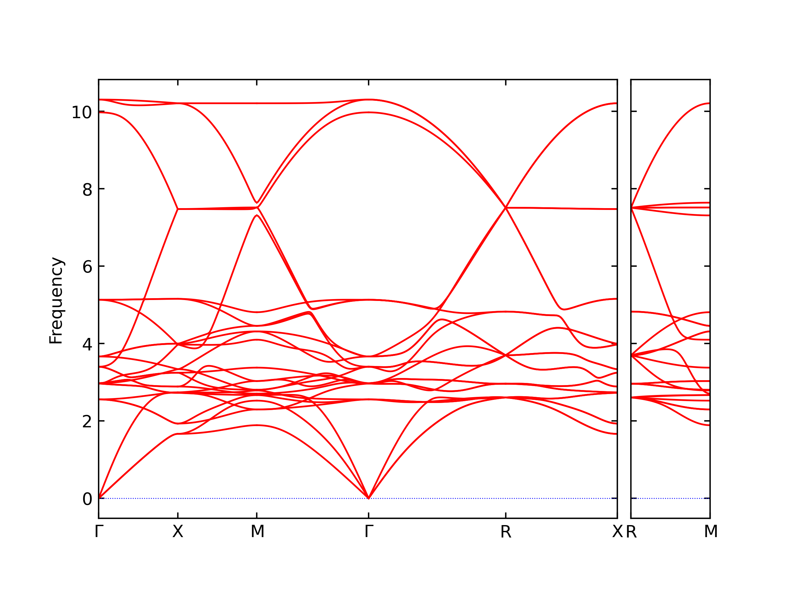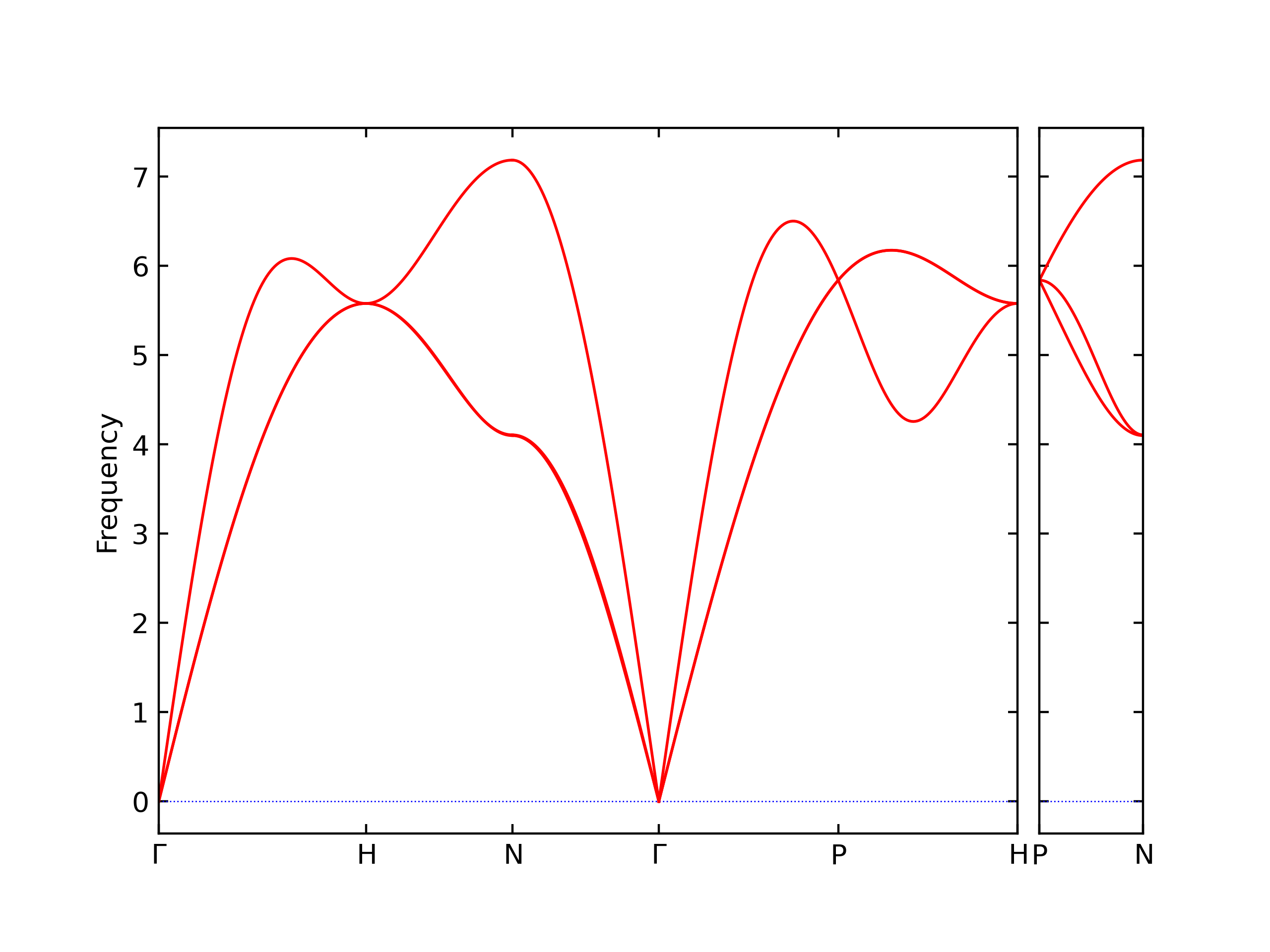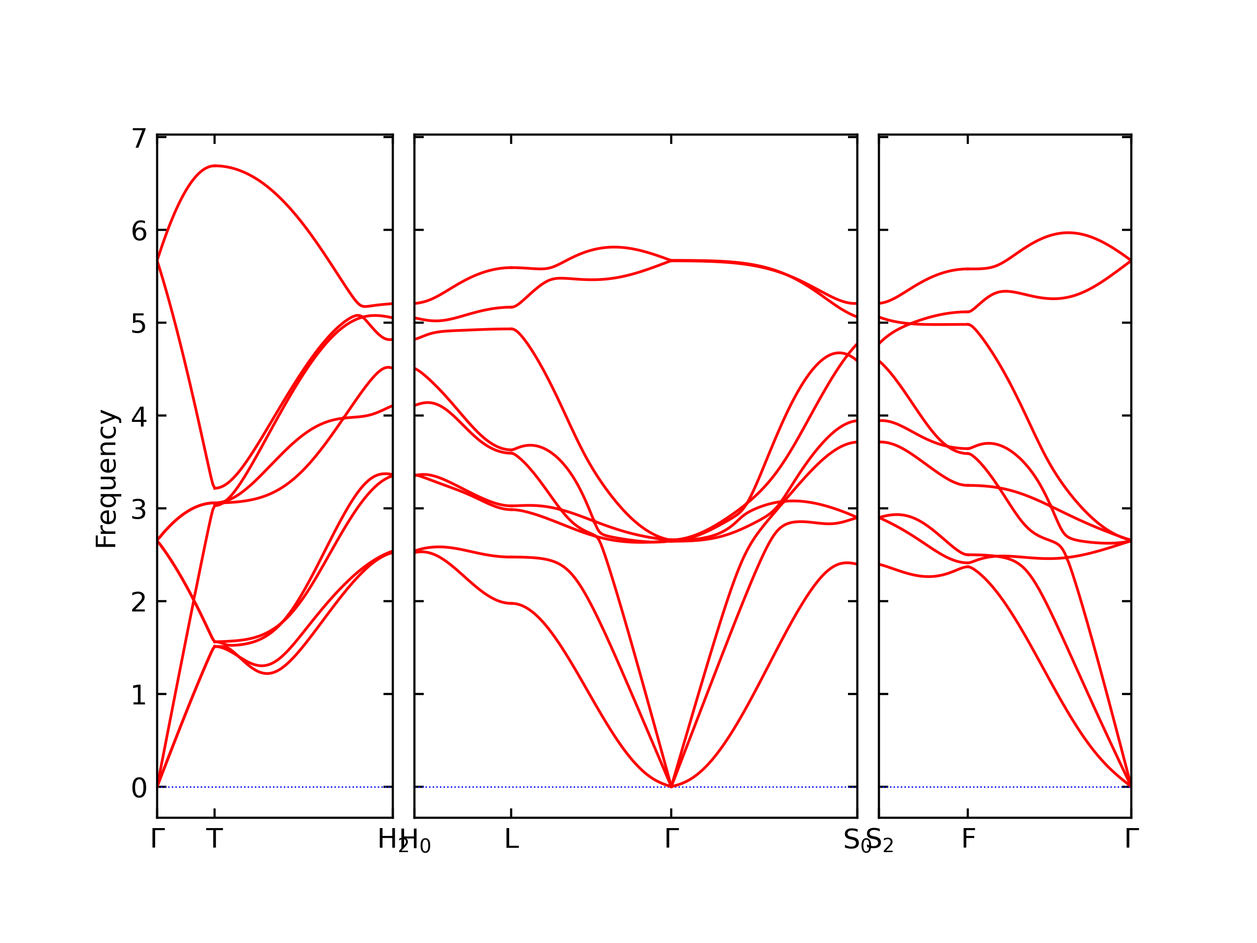 Phonon band structures and crystal properties estimated from quasi-harmonic approximation (QHA) calculations are displayed for select crystals. The calculations were performed using phonopy and LAMMPS. For the phonon calculations, 3x3 supercells of the potential-specific relaxed crystals were used. The QHA calculations were based on 11 strain states ranging from -0.05 to 0.05.