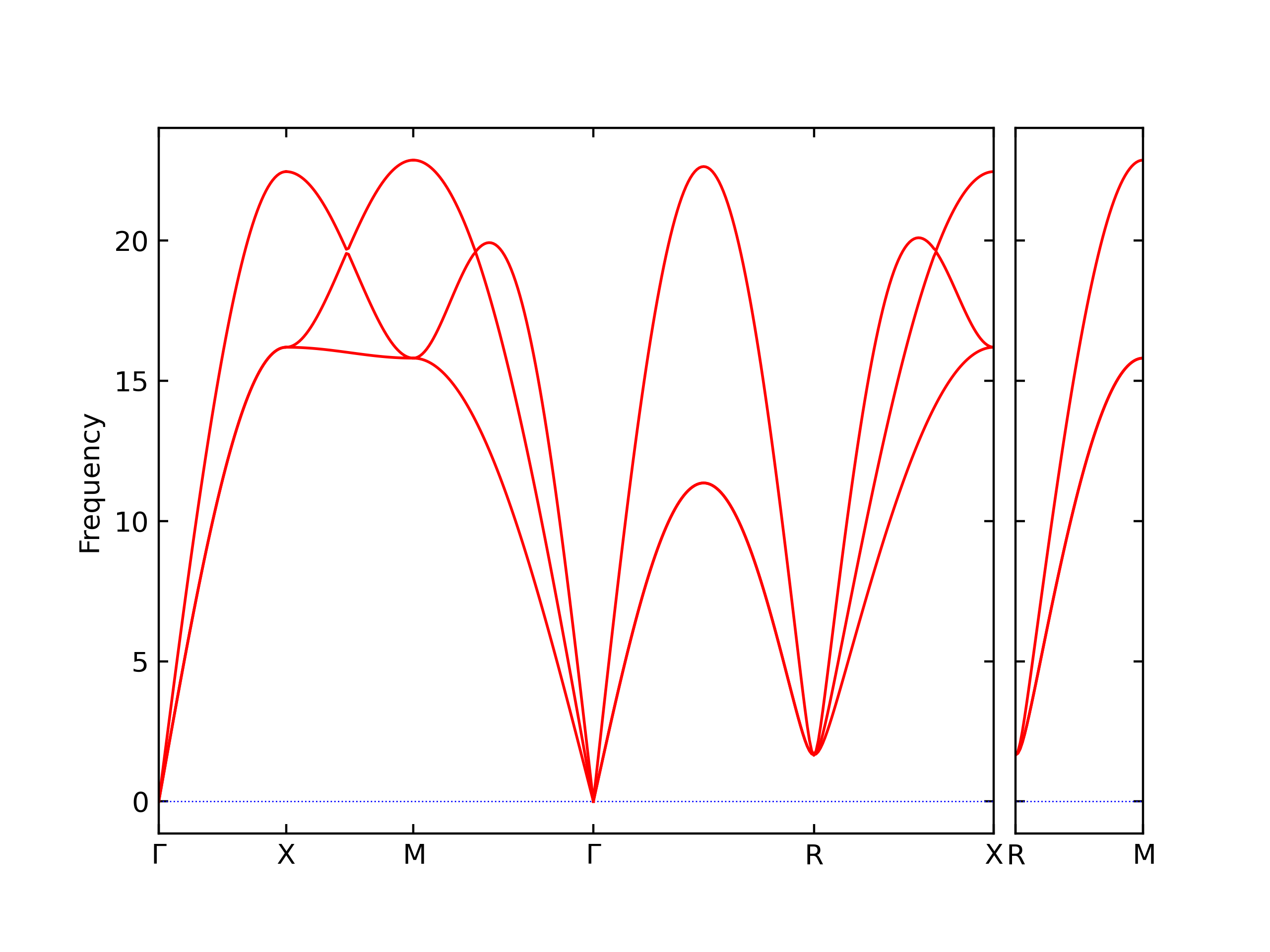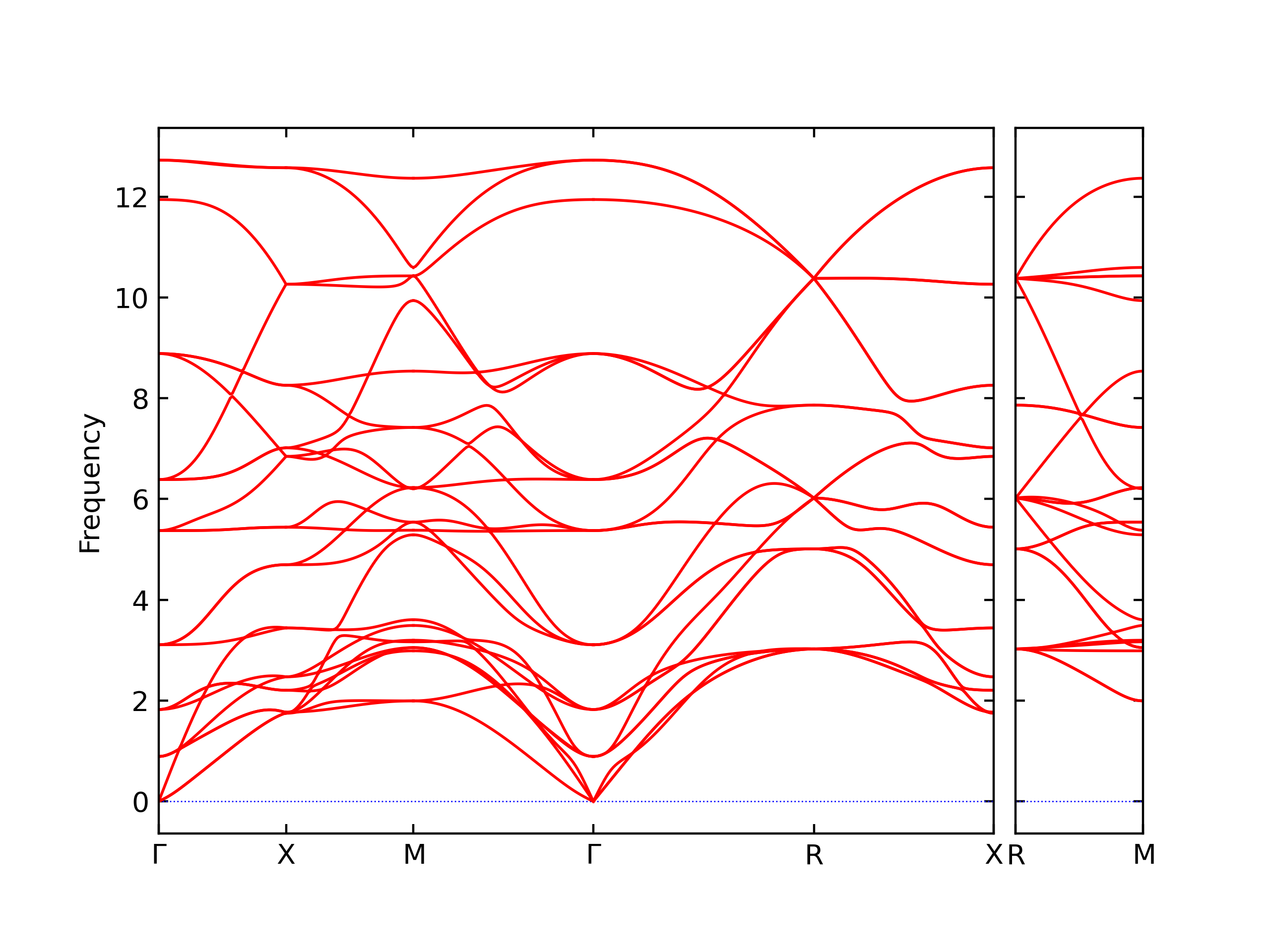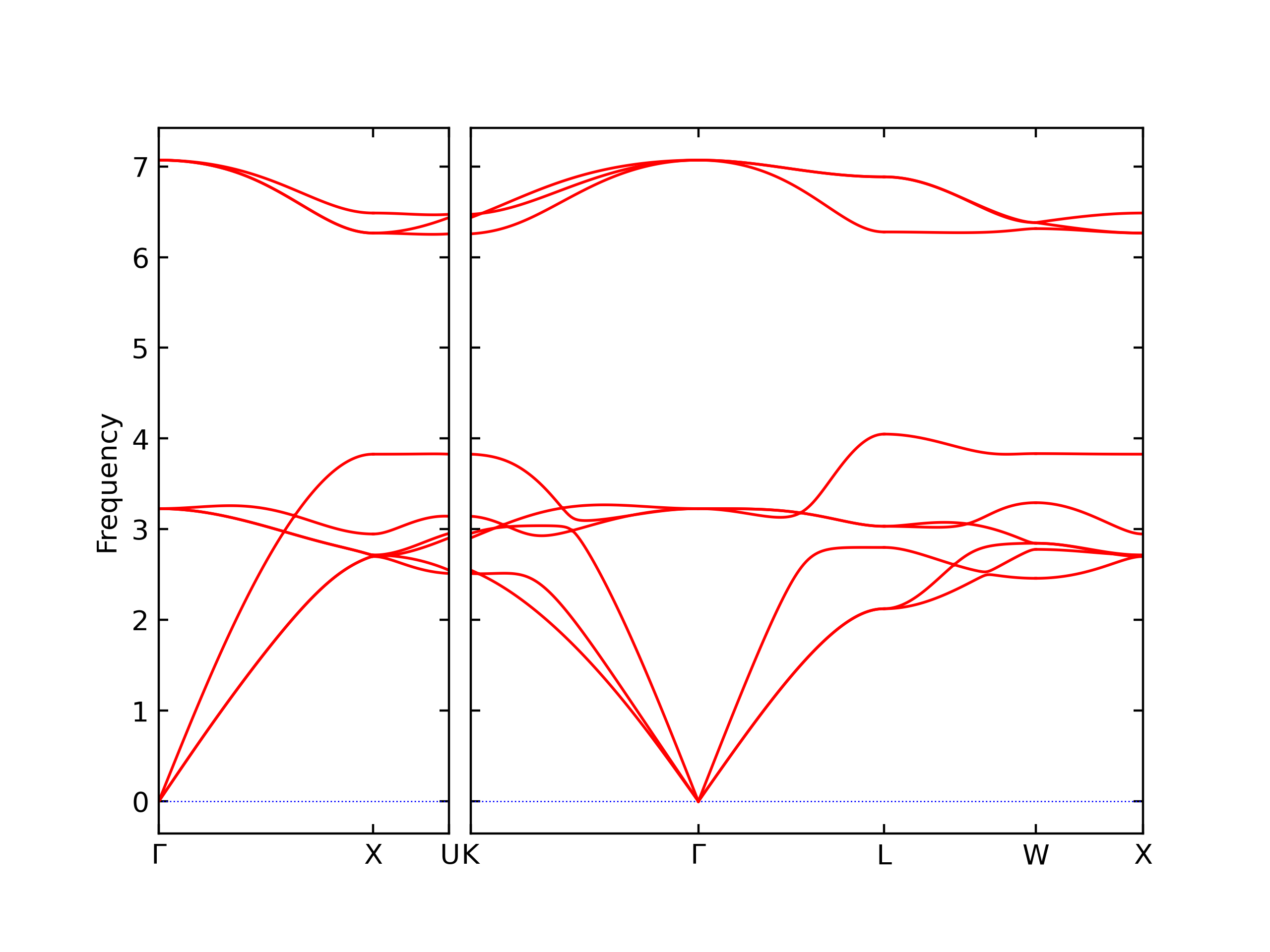 Phonon band structures and crystal properties estimated from quasi-harmonic approximation (QHA) calculations are displayed for select crystals. The calculations were performed using phonopy and LAMMPS. For the phonon calculations, 3x3 supercells of the potential-specific relaxed crystals were used. The QHA calculations were based on 11 strain states ranging from -0.05 to 0.05.