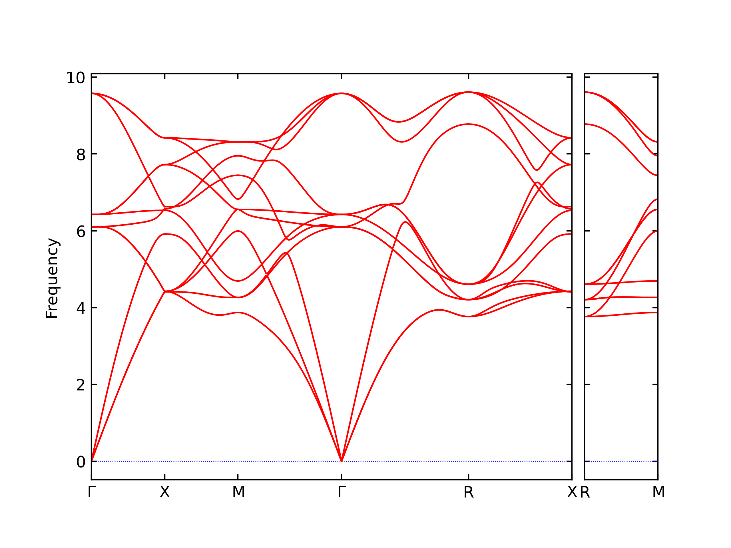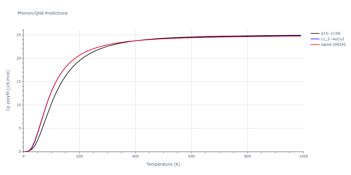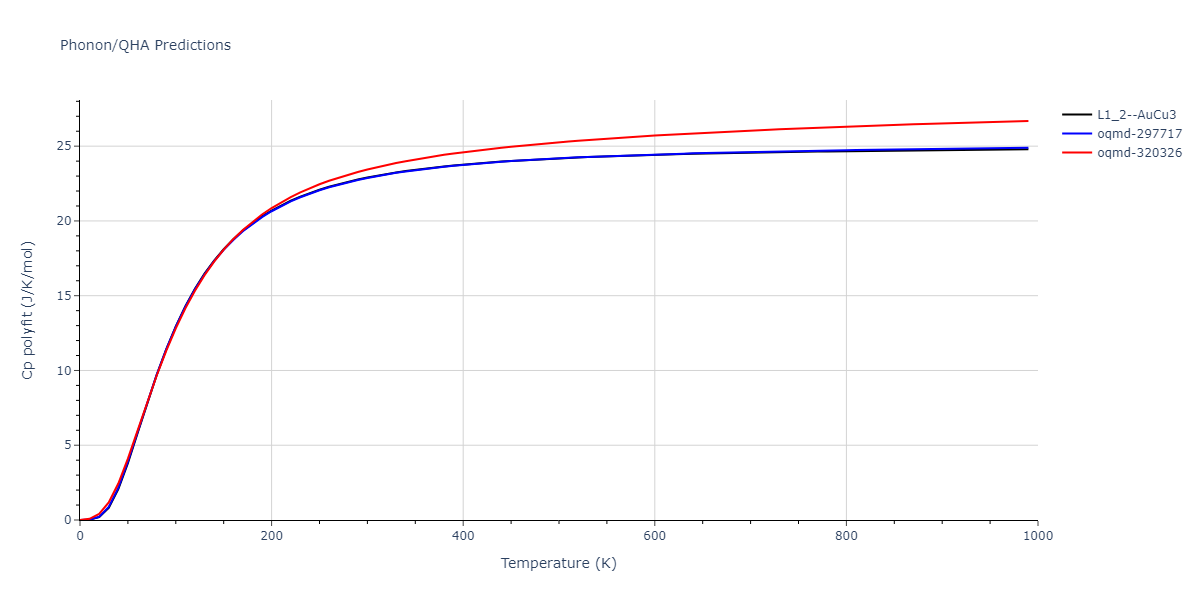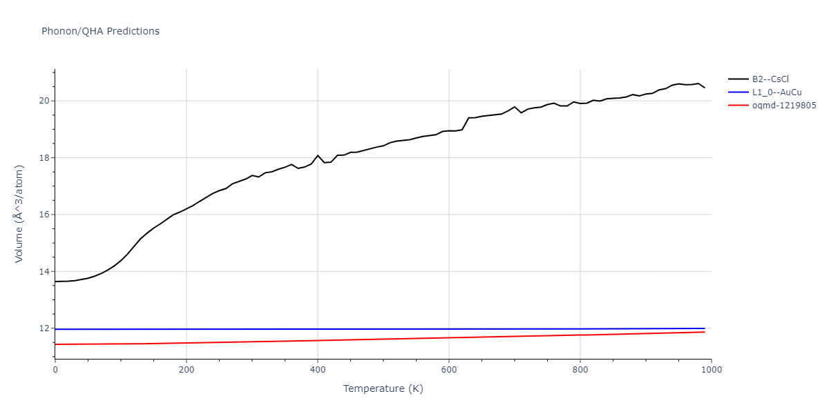 Phonon band structures and crystal properties estimated from quasi-harmonic approximation (QHA) calculations are displayed for select crystals. The calculations were performed using phonopy and LAMMPS. For the phonon calculations, 3x3 supercells of the potential-specific relaxed crystals were used. The QHA calculations were based on 11 strain states ranging from -0.05 to 0.05.