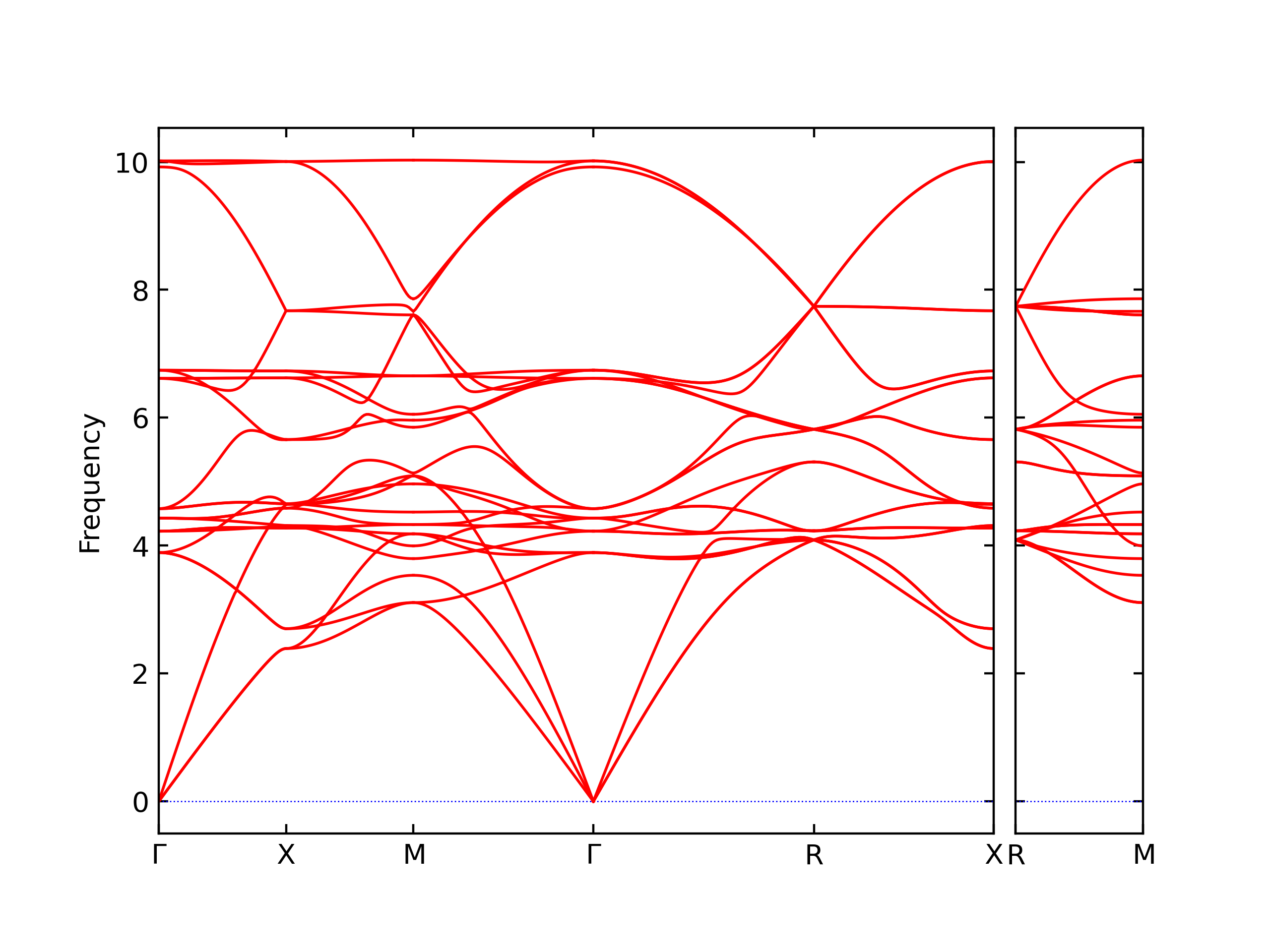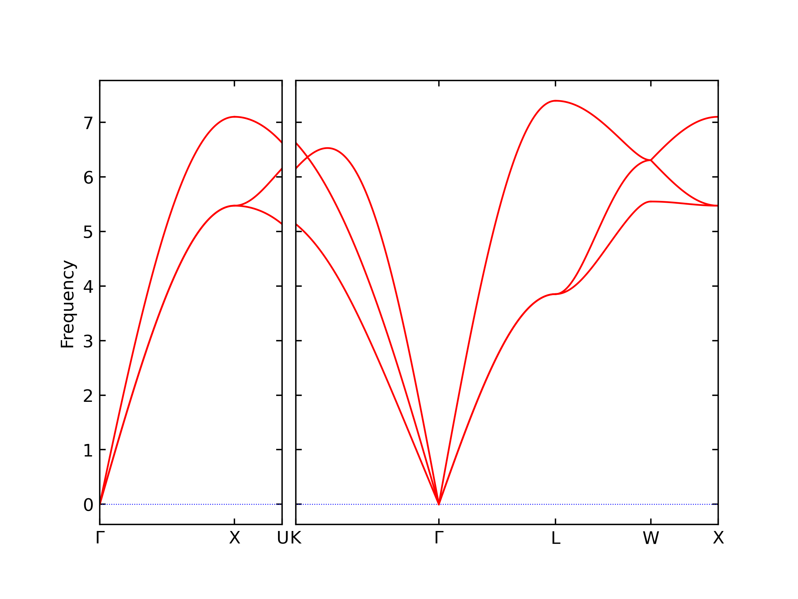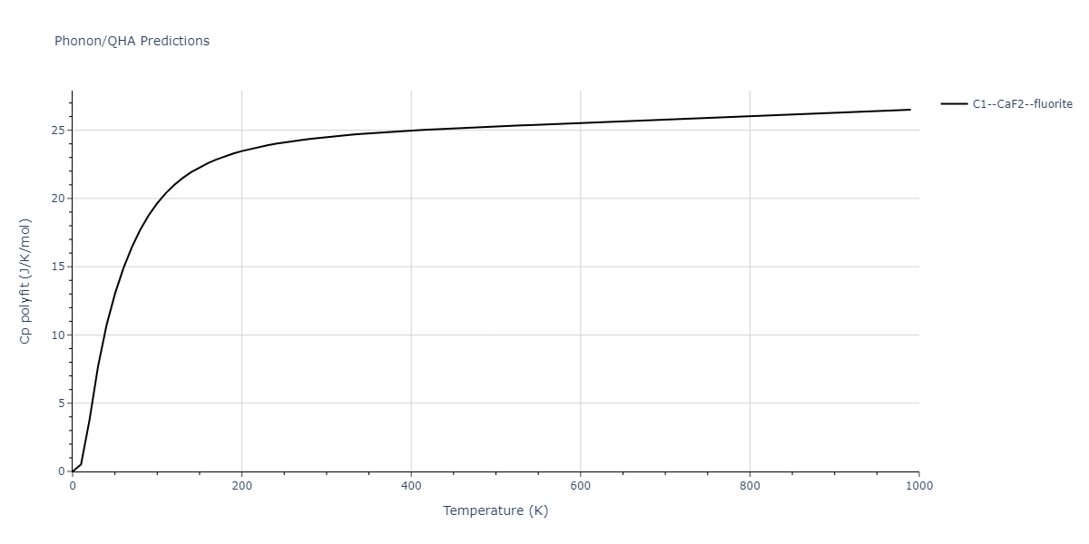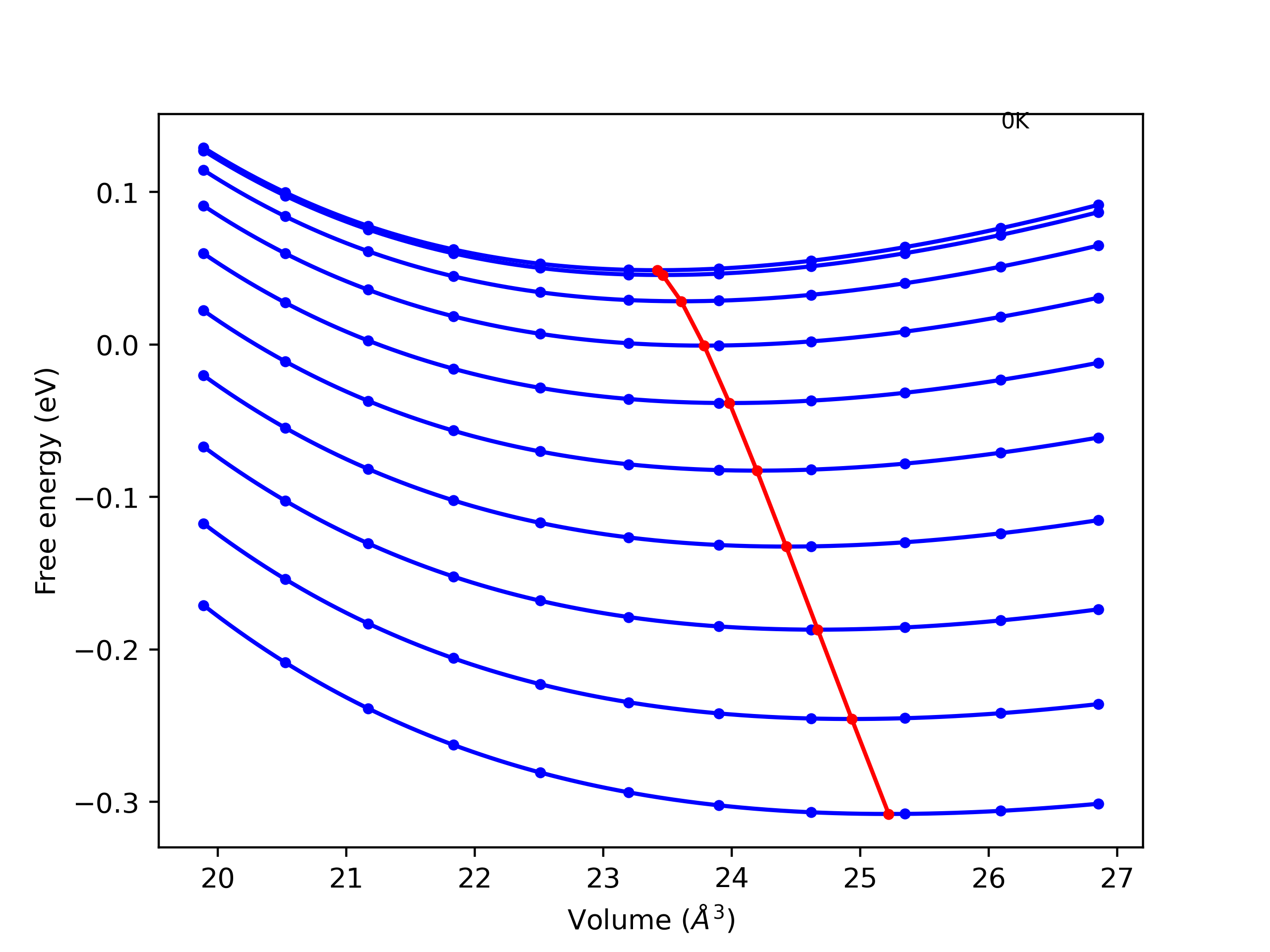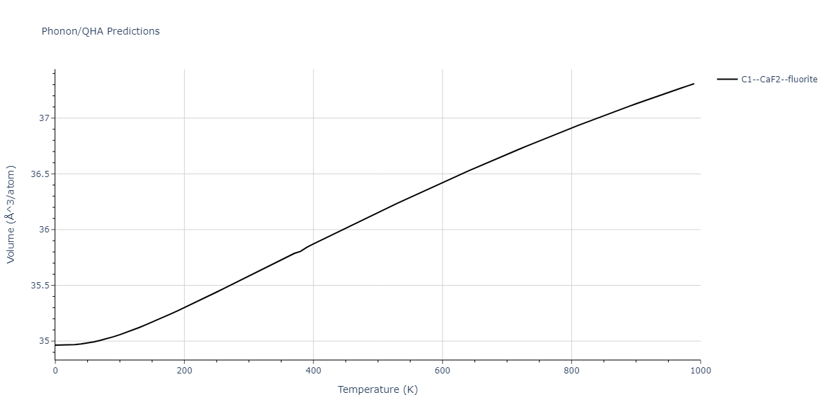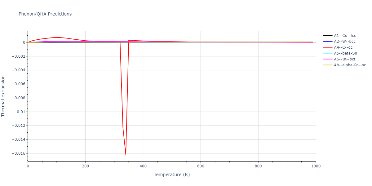 Phonon band structures and crystal properties estimated from quasi-harmonic approximation (QHA) calculations are displayed for select crystals. The calculations were performed using phonopy and LAMMPS. For the phonon calculations, 3x3 supercells of the potential-specific relaxed crystals were used. The QHA calculations were based on 11 strain states ranging from -0.05 to 0.05.