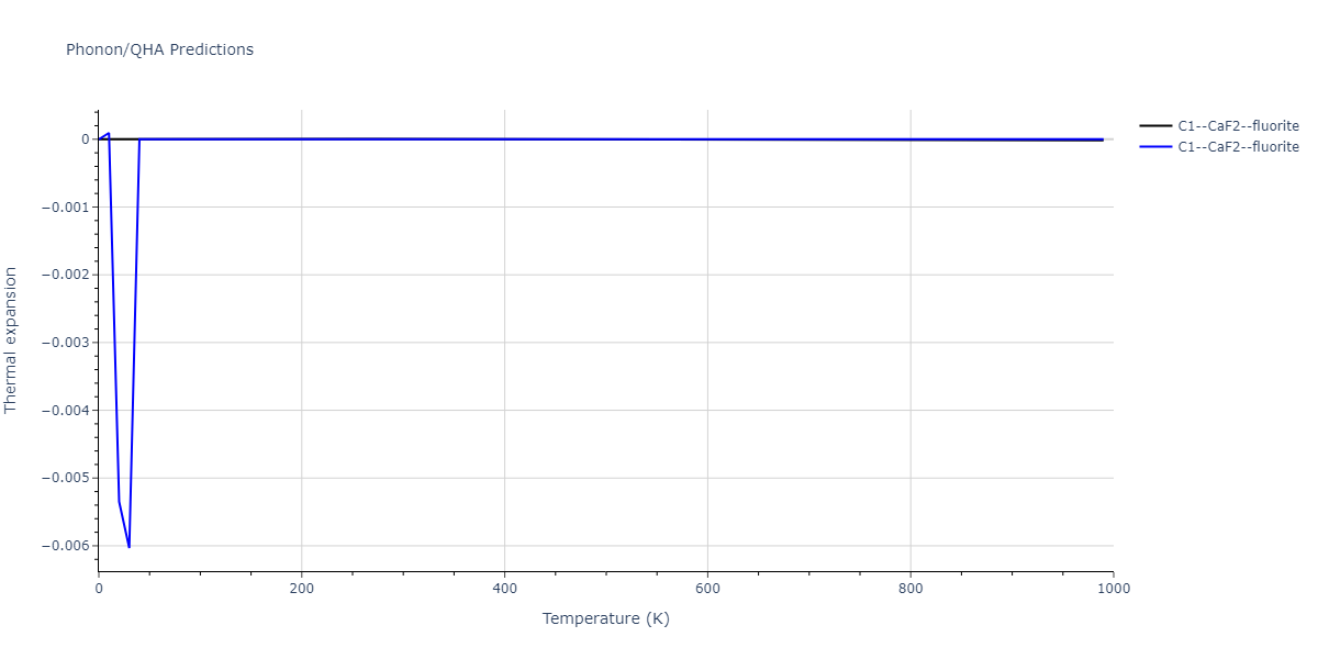 Phonon band structures and crystal properties estimated from quasi-harmonic approximation (QHA) calculations are displayed for select crystals. The calculations were performed using phonopy and LAMMPS. For the phonon calculations, 3x3 supercells of the potential-specific relaxed crystals were used. The QHA calculations were based on 11 strain states ranging from -0.05 to 0.05.