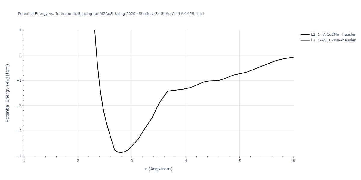 Plots of potential energy vs interatomic spacing, r, are shown below for a number of crystal structures. The structures are generated based on the ideal atomic positions and b/a and c/a lattice parameter ratios for a given crystal prototype. The size of the system is then uniformly scaled, and the energy calculated without relaxing the system. To obtain these plots, values of r are evaluated every 0.02 Å up to 6 Å.