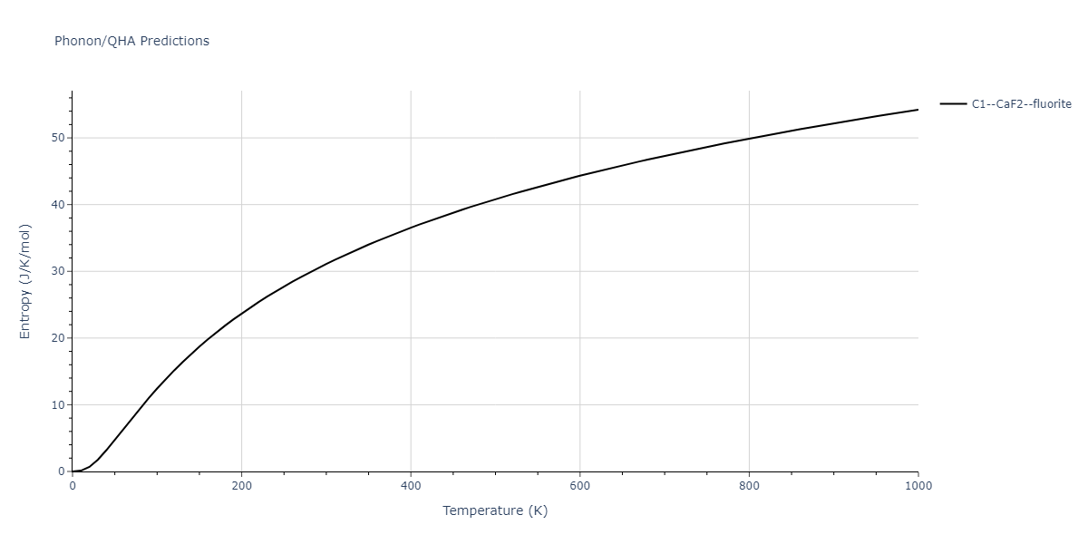 The Gibbs energies of the phases are estimated using thermodynamic integration between the interatomic potential in question and a simpler model with known Gibbs free energy values. For solids, the reference model is an Einstein solid, while for liquids it is the Uhlenbeck-Ford potential. Besides a short run at the start of the solid calculations to estimate Einstein model spring constants, the two calculations proceed similarly. Starting with the final relaxation configurations, the systems are stabilized for 25,000 steps. Then, over the next 50,000 steps the potential is swapped out for the reference potential. The system is then stabilized for another 25,000 steps with the reference model before a reverse swap of 50,000 steps is performed. The simulation ends with one final 25,000 step stabilization period. From the simulation, the irreversible work of transformation is estimated and used to compute the absolute Gibbs free energy of the target phase and potential relative to the reference potential. Entropy is estimated as the difference in enthalpy and Gibbs free energy and divided by temperature.
