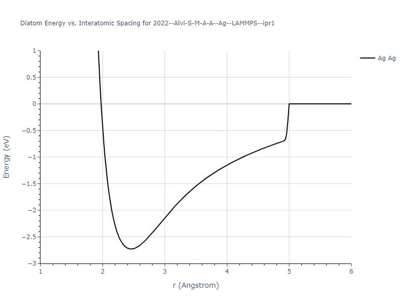 Plots of potential energy vs interatomic spacing, r, are shown below for a number of crystal structures. The structures are generated based on the ideal atomic positions and b/a and c/a lattice parameter ratios for a given crystal prototype. The size of the system is then uniformly scaled, and the energy calculated without relaxing the system. To obtain these plots, values of r are evaluated every 0.02 Å up to 6 Å.