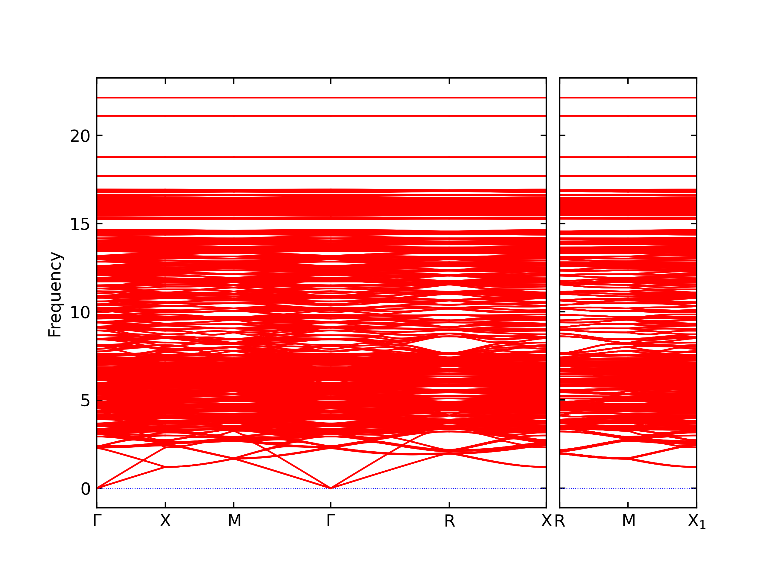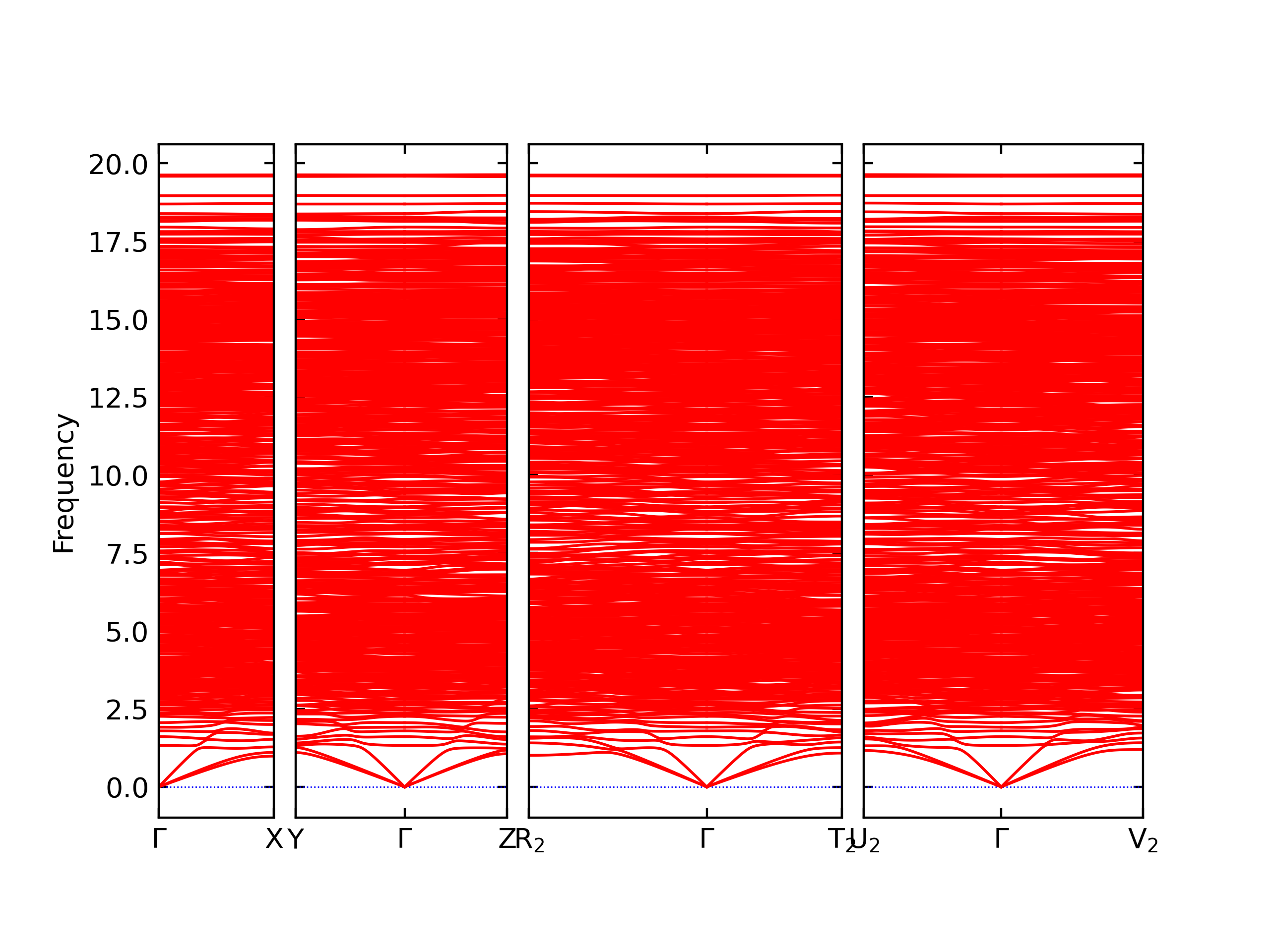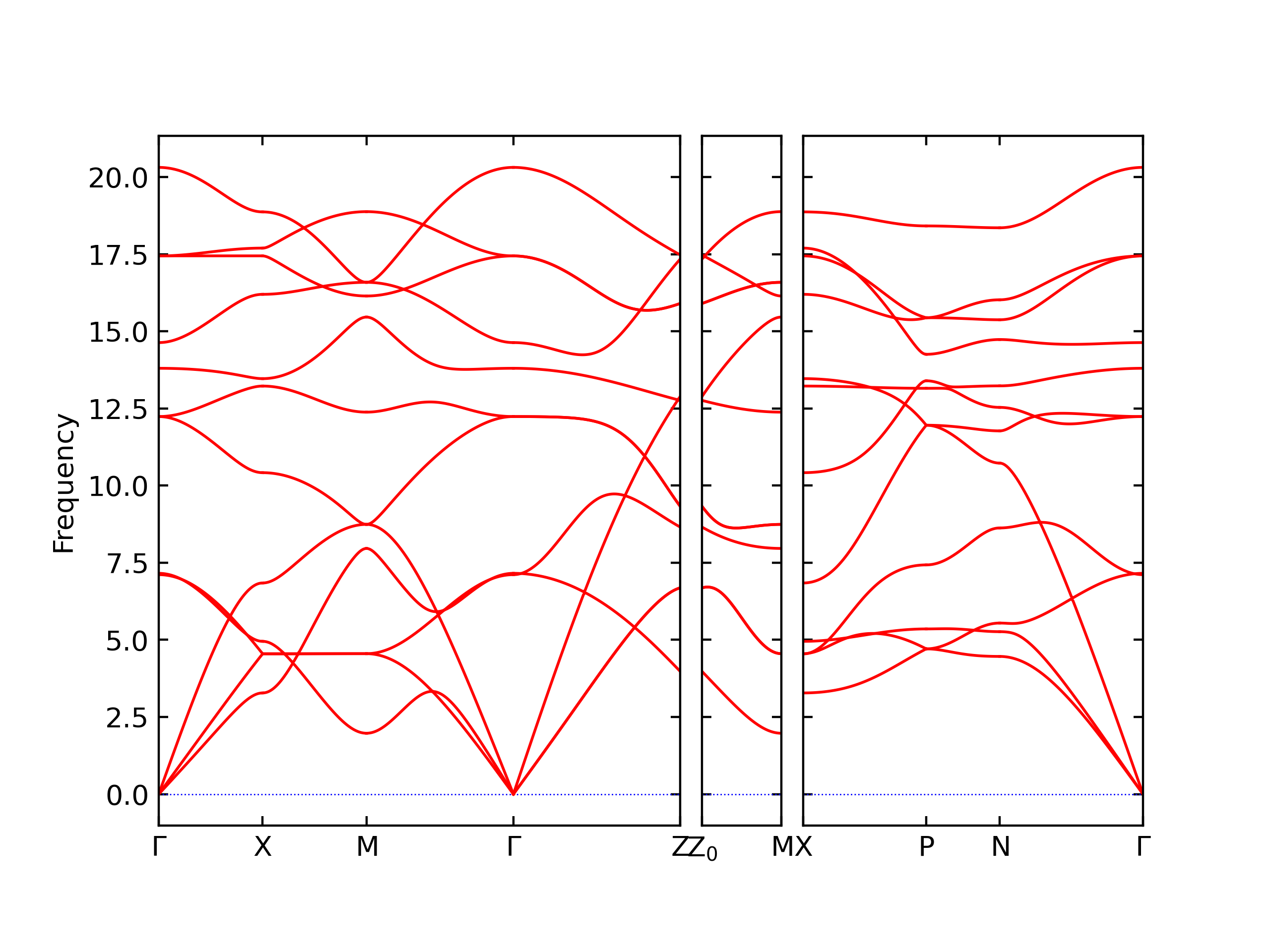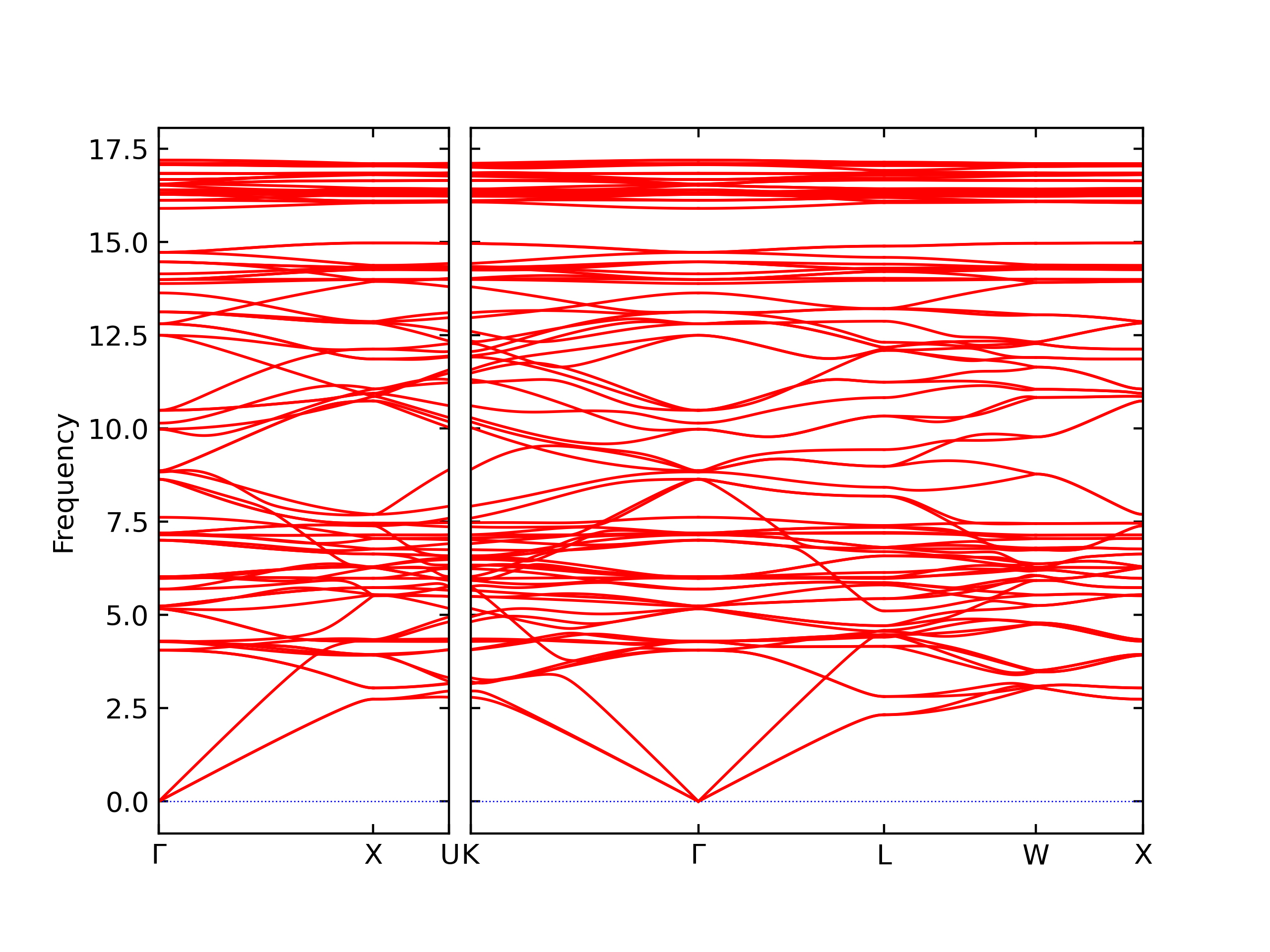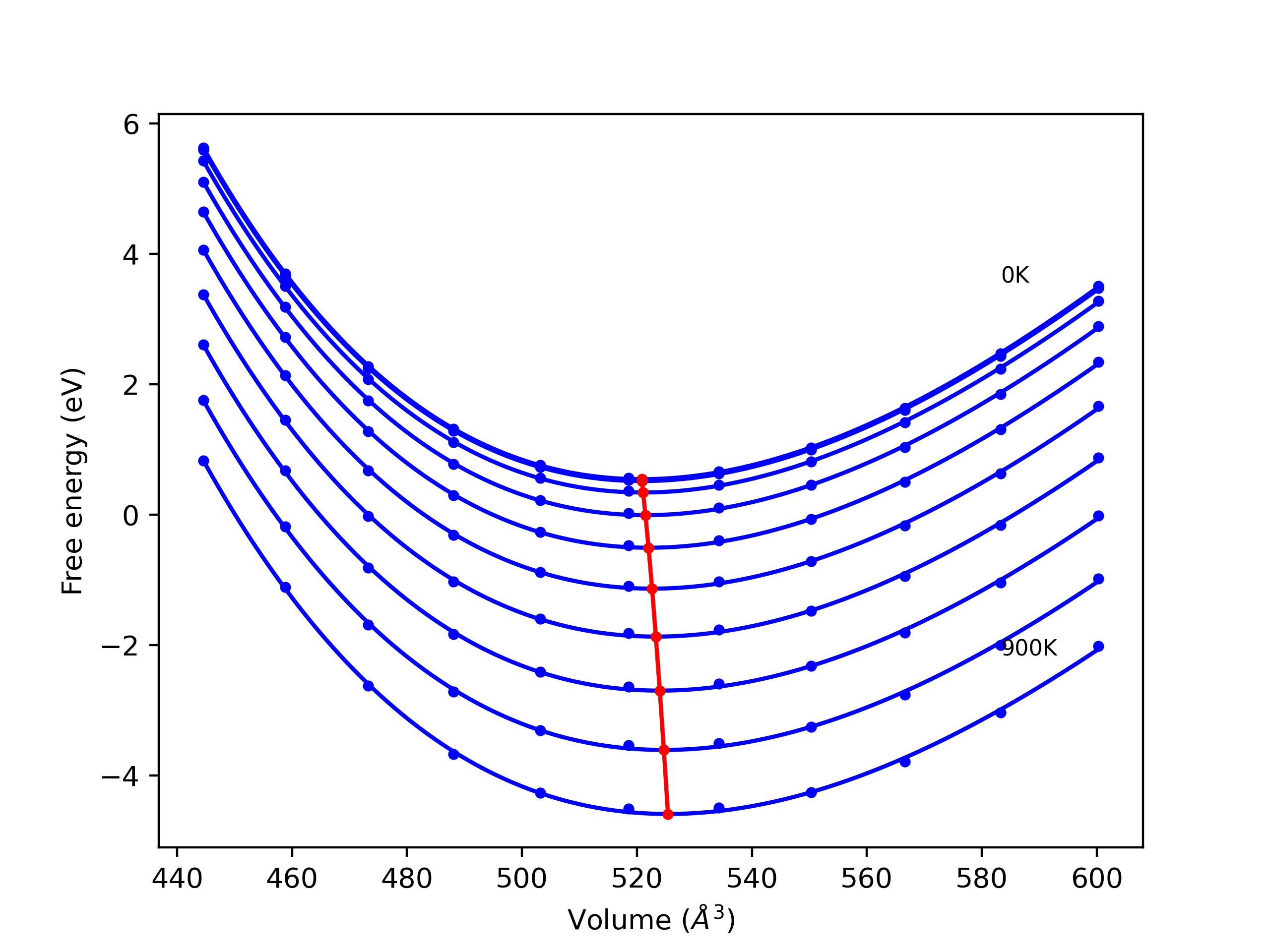 Phonon band structures and crystal properties estimated from quasi-harmonic approximation (QHA) calculations are displayed for select crystals. The calculations were performed using phonopy and LAMMPS. For the phonon calculations, 3x3 supercells of the potential-specific relaxed crystals were used. The QHA calculations were based on 11 strain states ranging from -0.05 to 0.05.