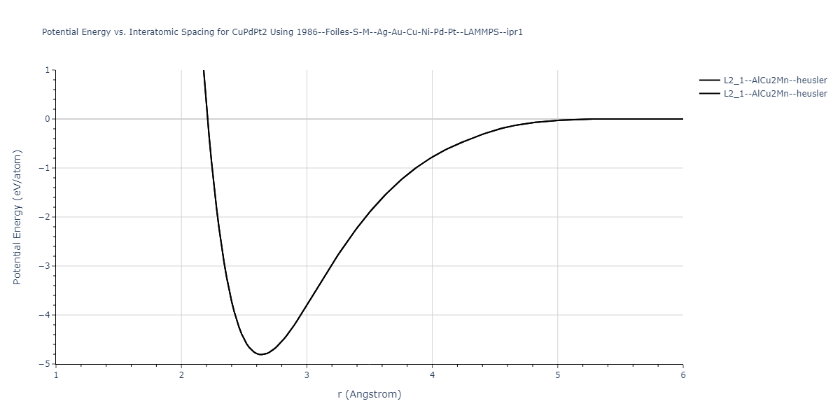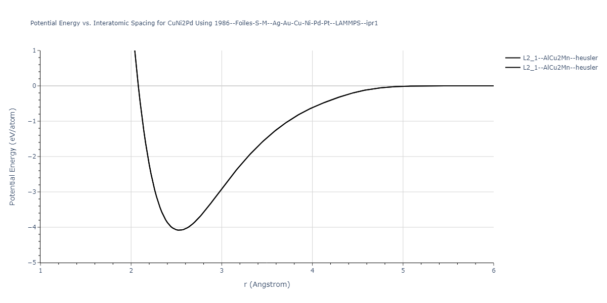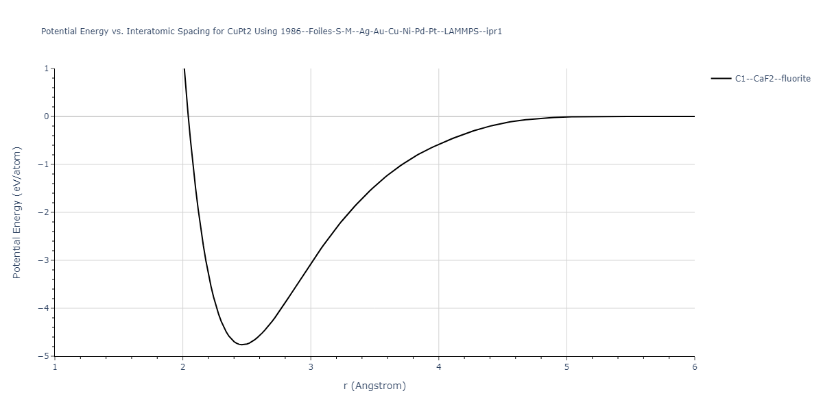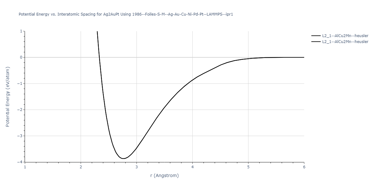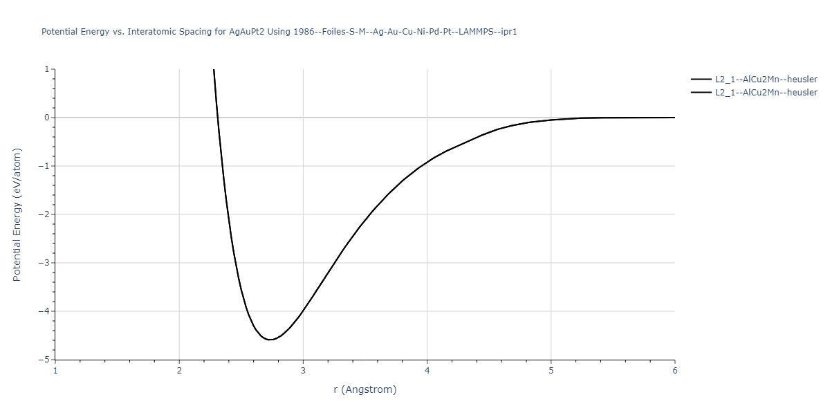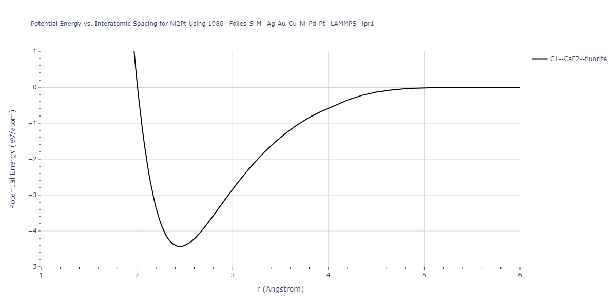 Plots of potential energy vs interatomic spacing, r, are shown below for a number of crystal structures. The structures are generated based on the ideal atomic positions and b/a and c/a lattice parameter ratios for a given crystal prototype. The size of the system is then uniformly scaled, and the energy calculated without relaxing the system. To obtain these plots, values of r are evaluated every 0.02 Å up to 6 Å.
