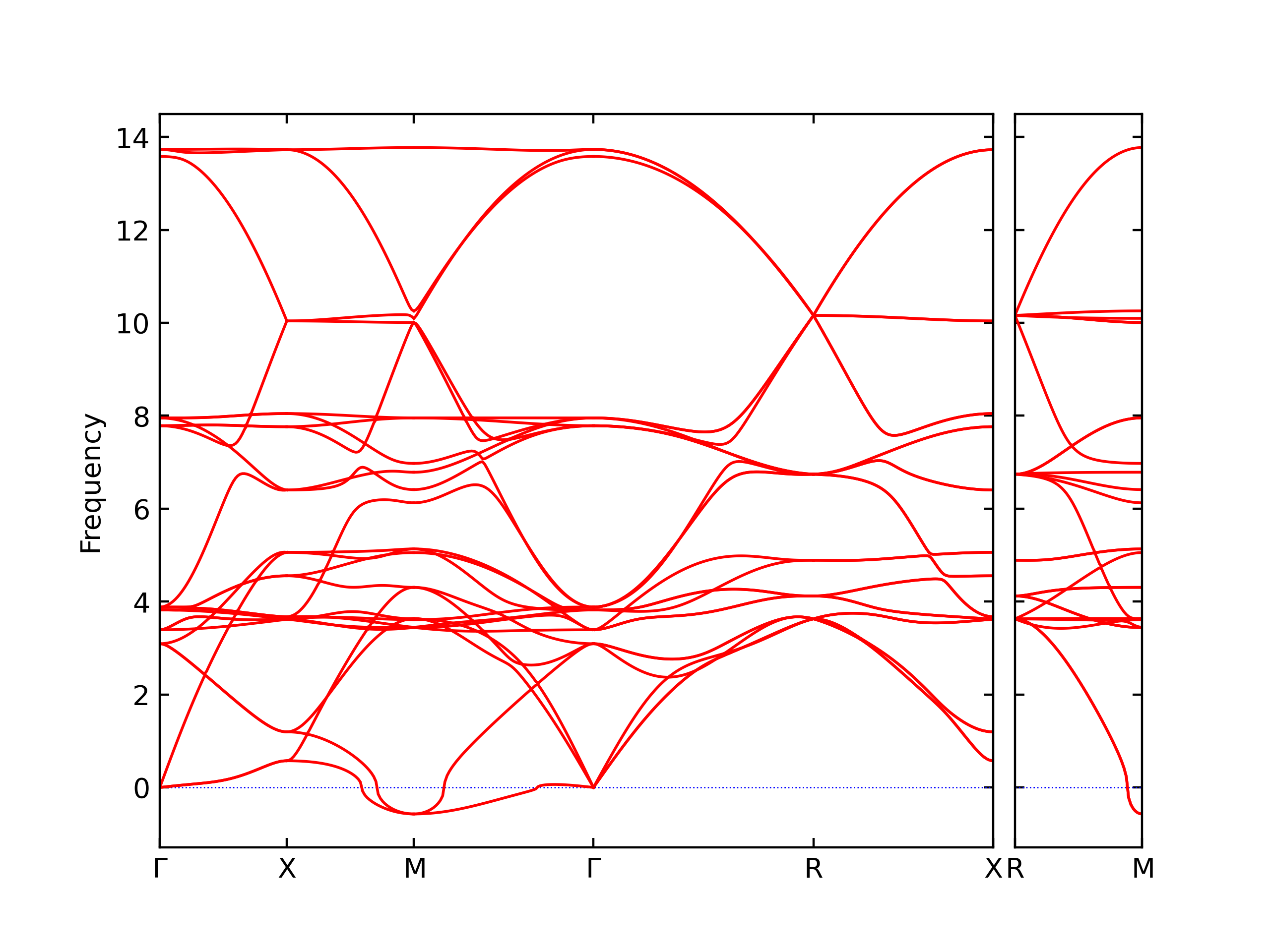 Phonon band structures and crystal properties estimated from quasi-harmonic approximation (QHA) calculations are displayed for select crystals. The calculations were performed using phonopy and LAMMPS. For the phonon calculations, 3x3 supercells of the potential-specific relaxed crystals were used. The QHA calculations were based on 11 strain states ranging from -0.05 to 0.05.