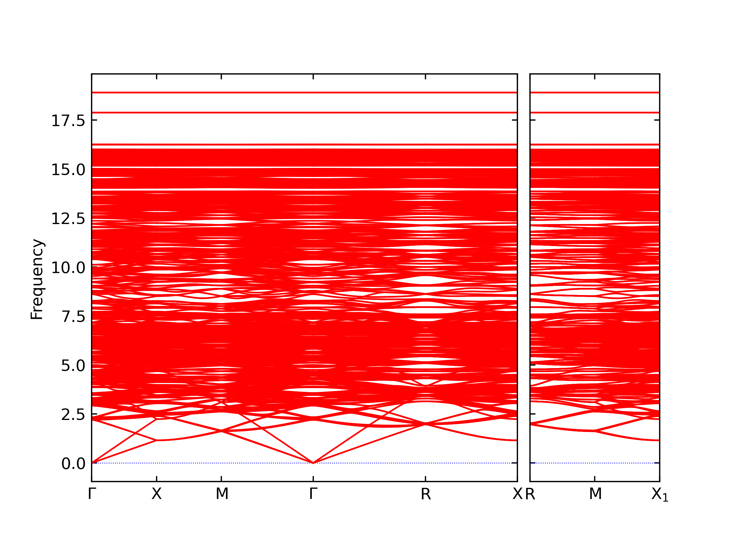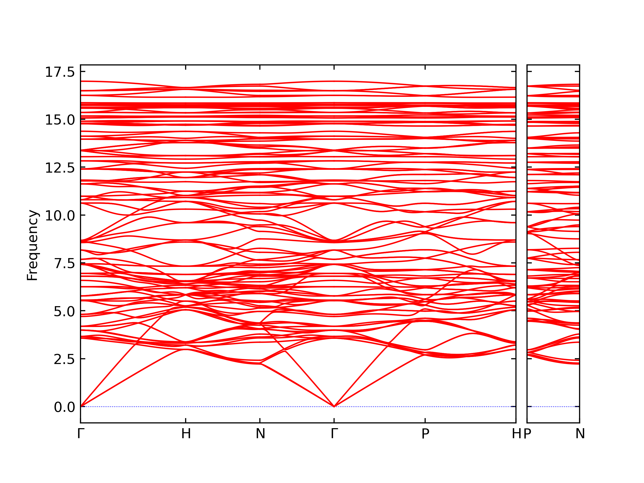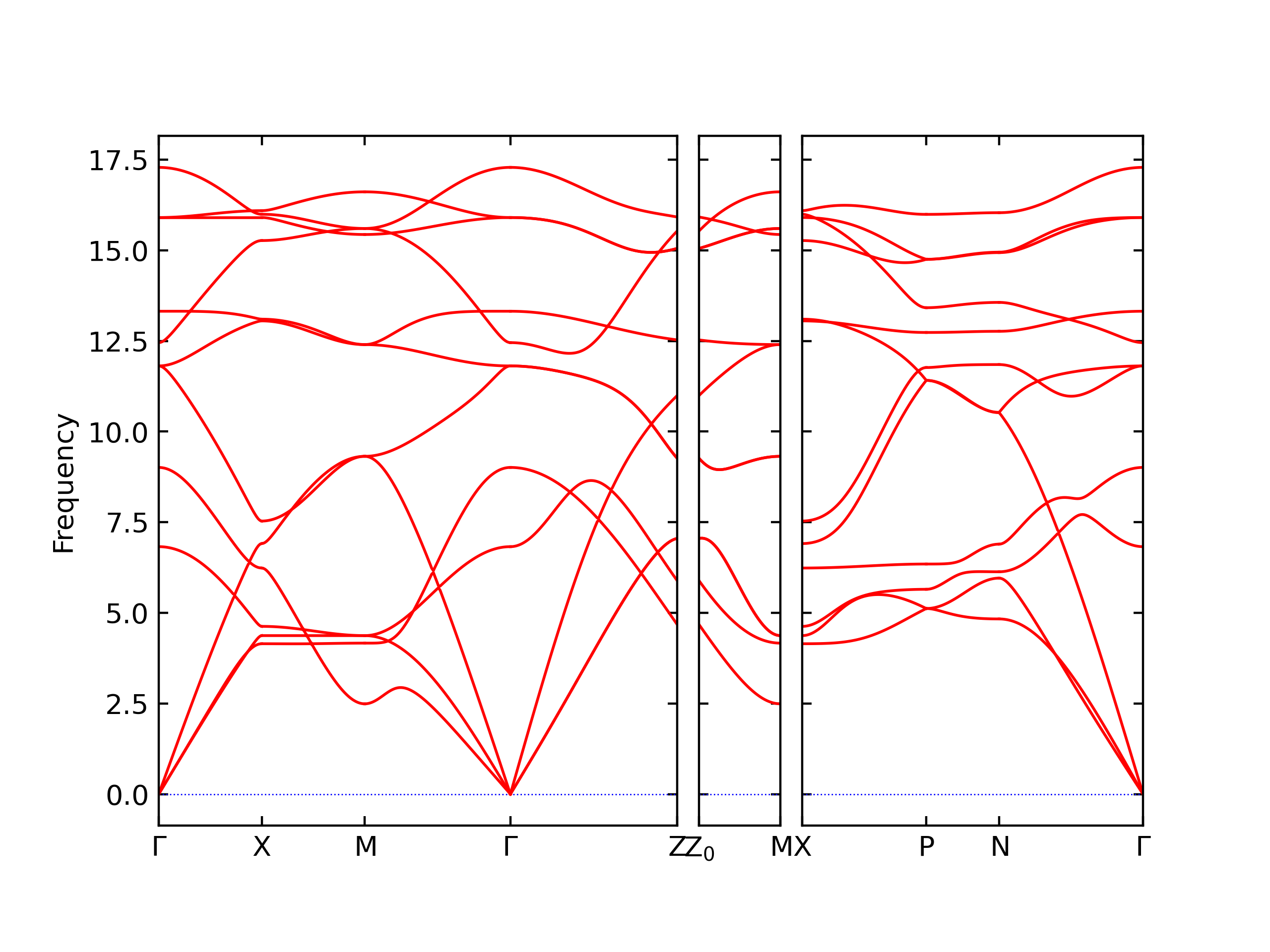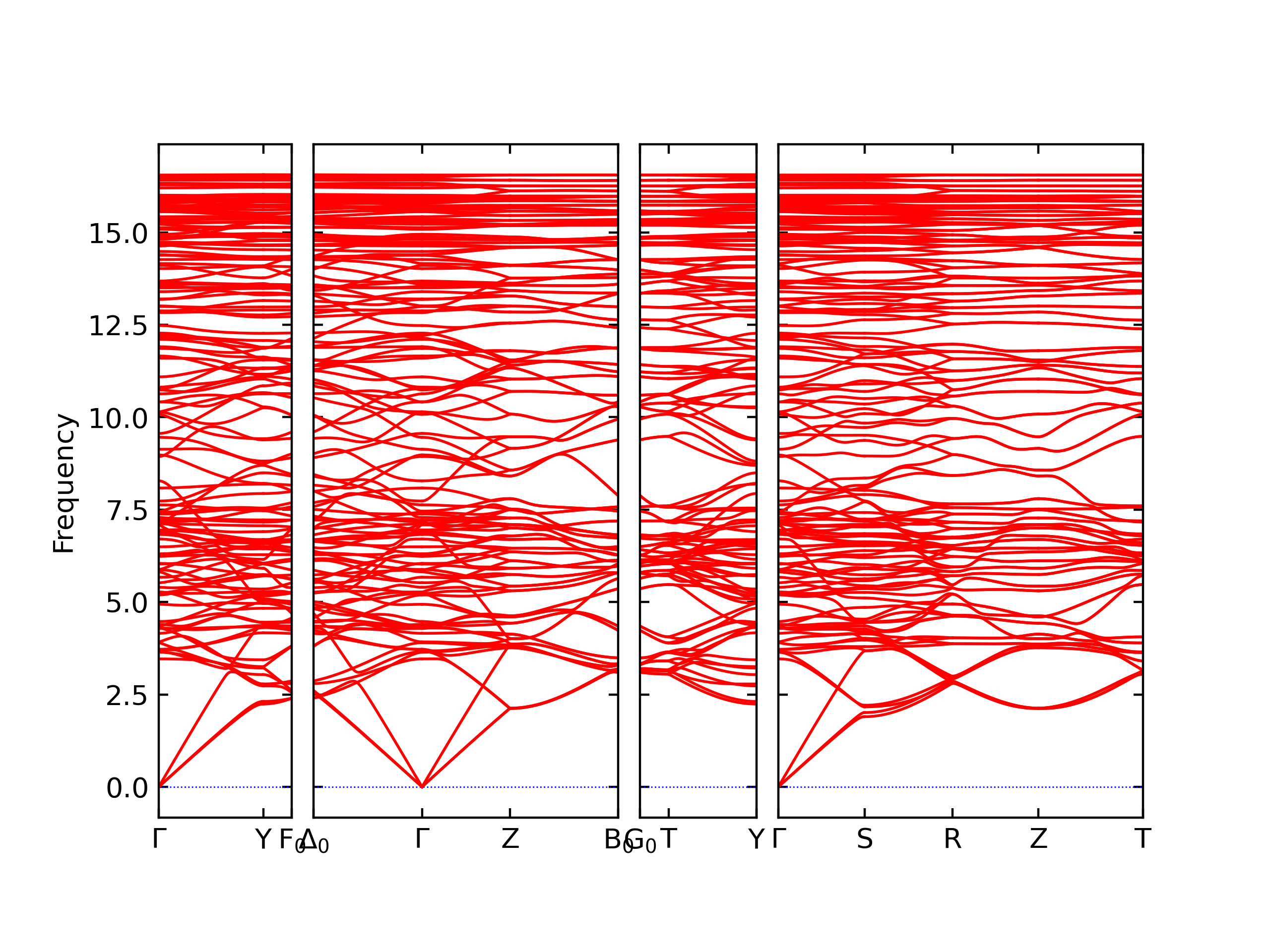 Phonon band structures and crystal properties estimated from quasi-harmonic approximation (QHA) calculations are displayed for select crystals. The calculations were performed using phonopy and LAMMPS. For the phonon calculations, 3x3 supercells of the potential-specific relaxed crystals were used. The QHA calculations were based on 11 strain states ranging from -0.05 to 0.05.