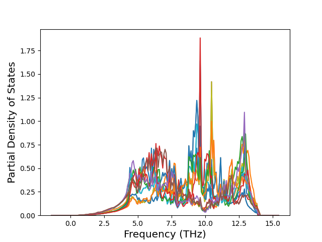 Estimated melting temperatures are tabulated below. The melting temperature is computed here using a two-phase solid-liquid atomic configuration. The two-phase configuration is created by starting with a crystalline system in which the c box vector is roughly twice the length of the other two box vectors. Based on some input temperature Tinit, an NPH plus a Berensen thermostat simulation is performed for 10,000 steps in which half the system is subjected to a temperature of 1.25*Tinit and the other half to a temperature of 0.5*Tinit. This is then followed by 10,000 steps during which the temperature of the two regions are both scaled to Tinit. The system is then ran for 200,000 NPH steps to equilibrate the system. For the second half of the final NPH run, the average temperature of the system is calculated and the polyhedral template matching algorithm is used to estimate the number of solid and liquid atoms for a number of configuration snapshots. If the averaged fraction of solid atoms is found to be between 0.25-0.75, then the averaged temperature provides an estimate of the melting temperature.