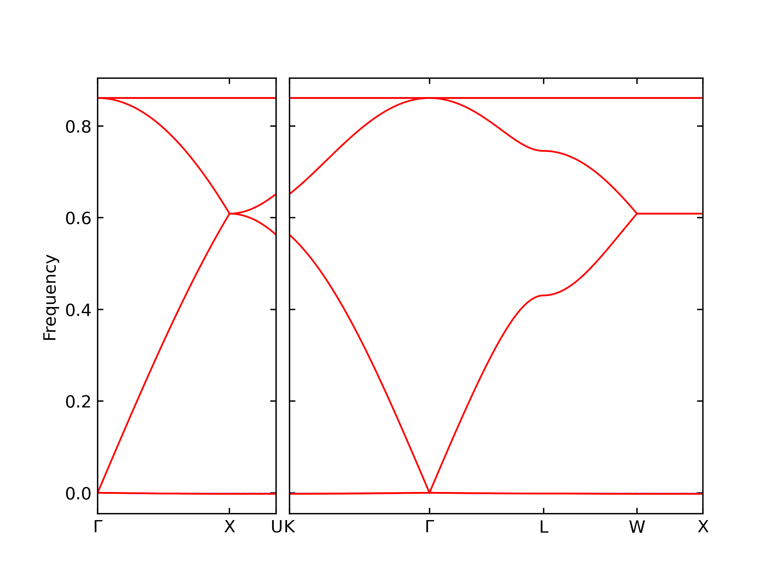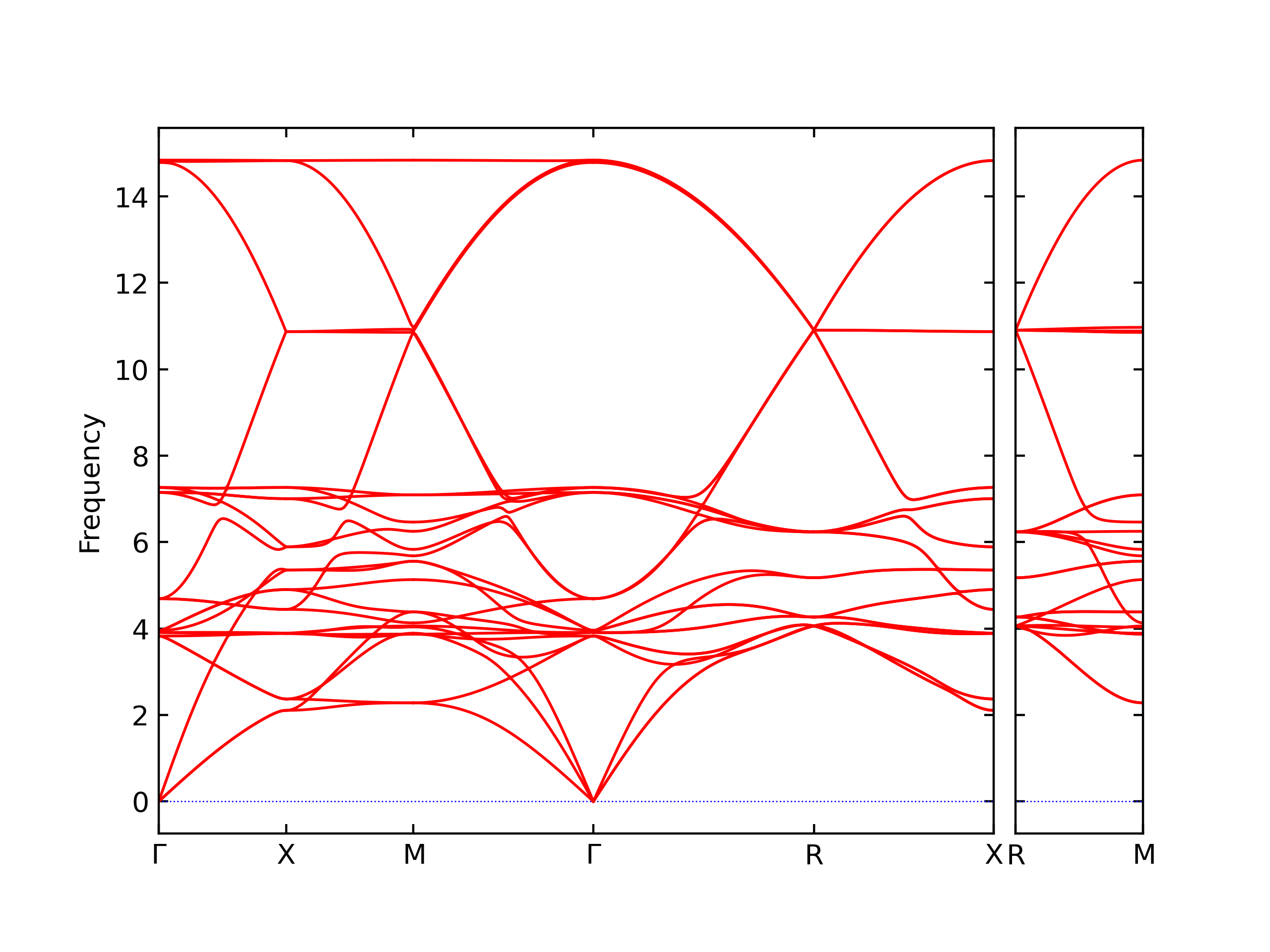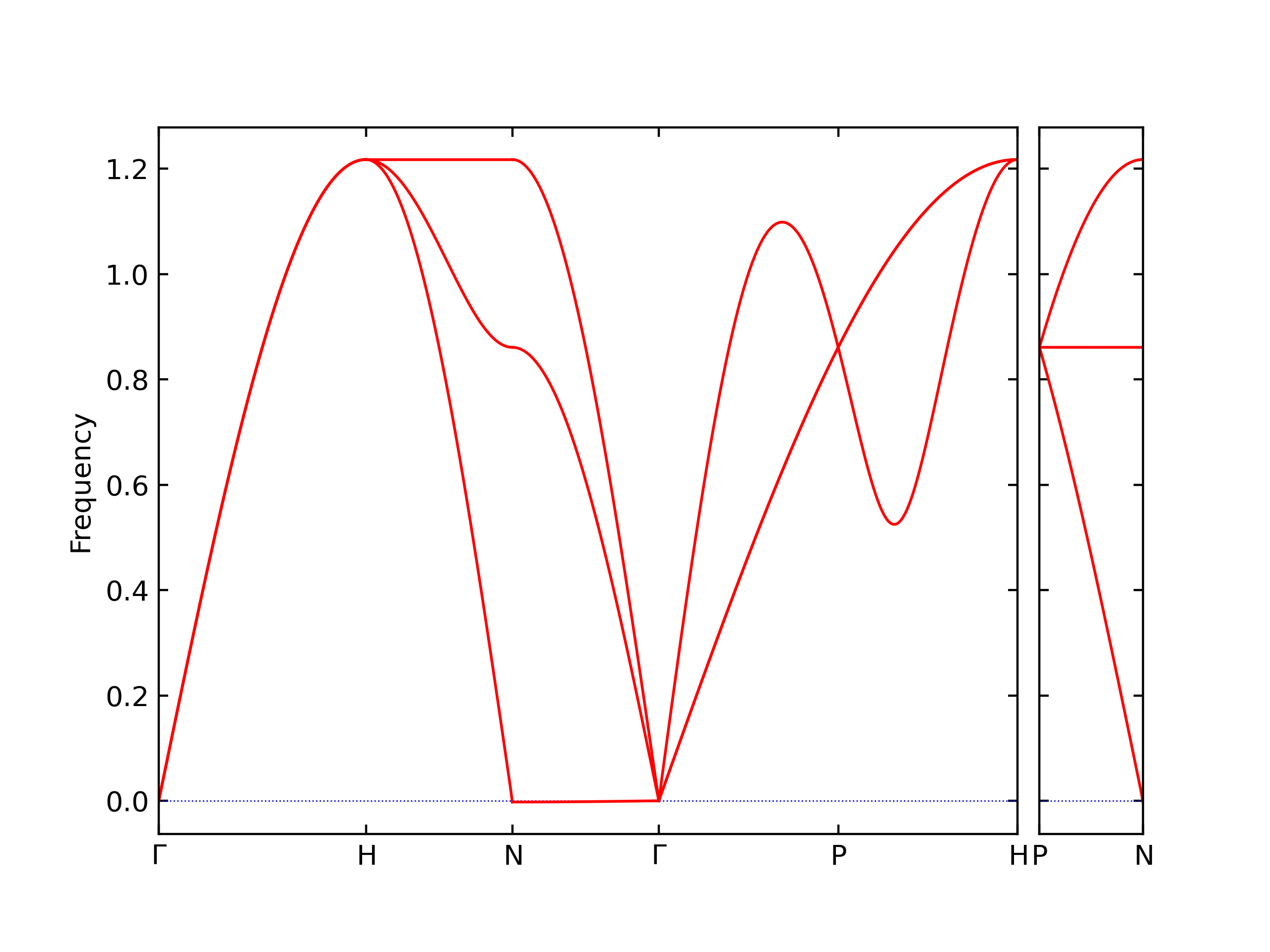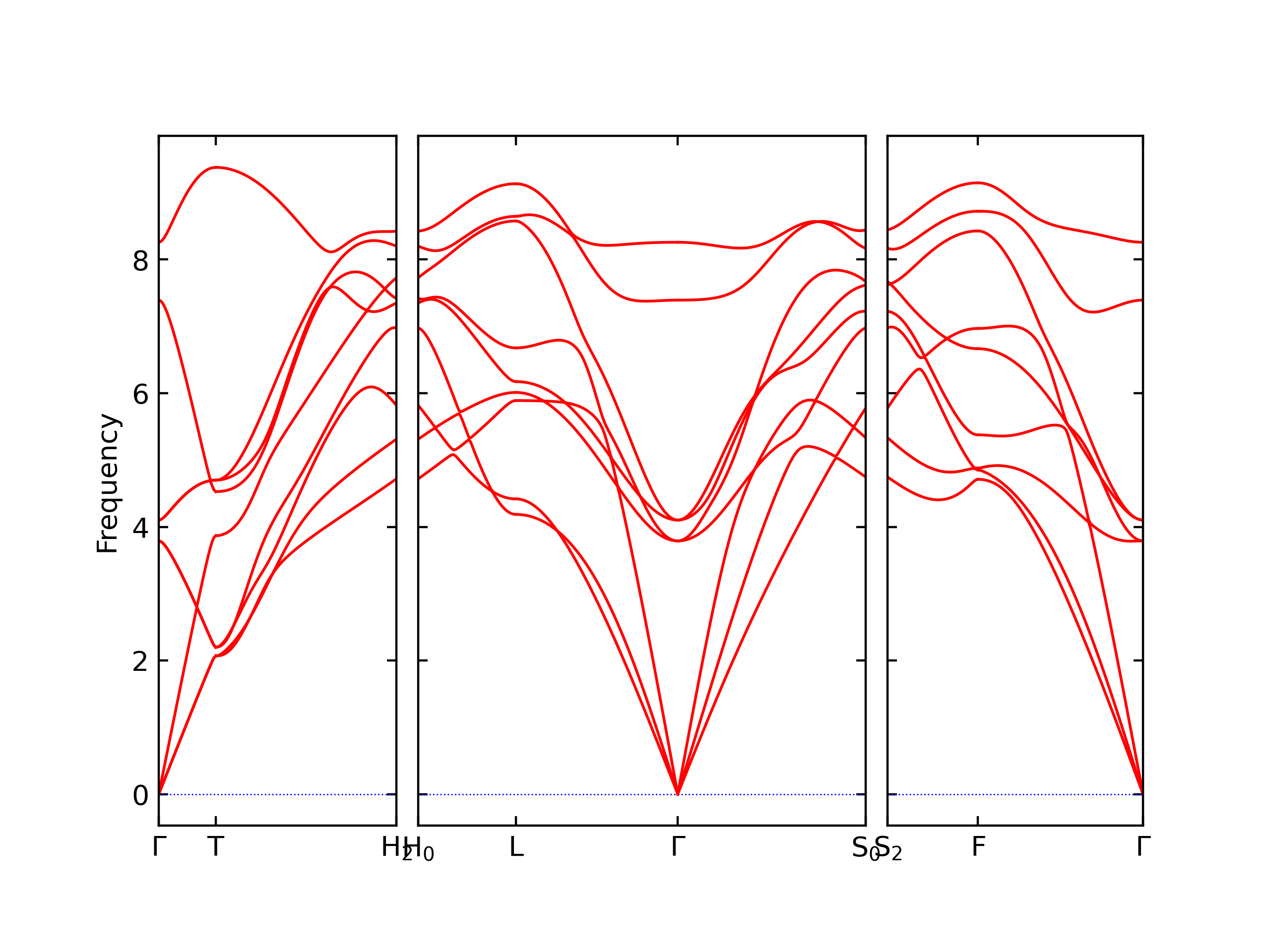 Phonon band structures and crystal properties estimated from quasi-harmonic approximation (QHA) calculations are displayed for select crystals. The calculations were performed using phonopy and LAMMPS. For the phonon calculations, 3x3 supercells of the potential-specific relaxed crystals were used. The QHA calculations were based on 11 strain states ranging from -0.05 to 0.05.