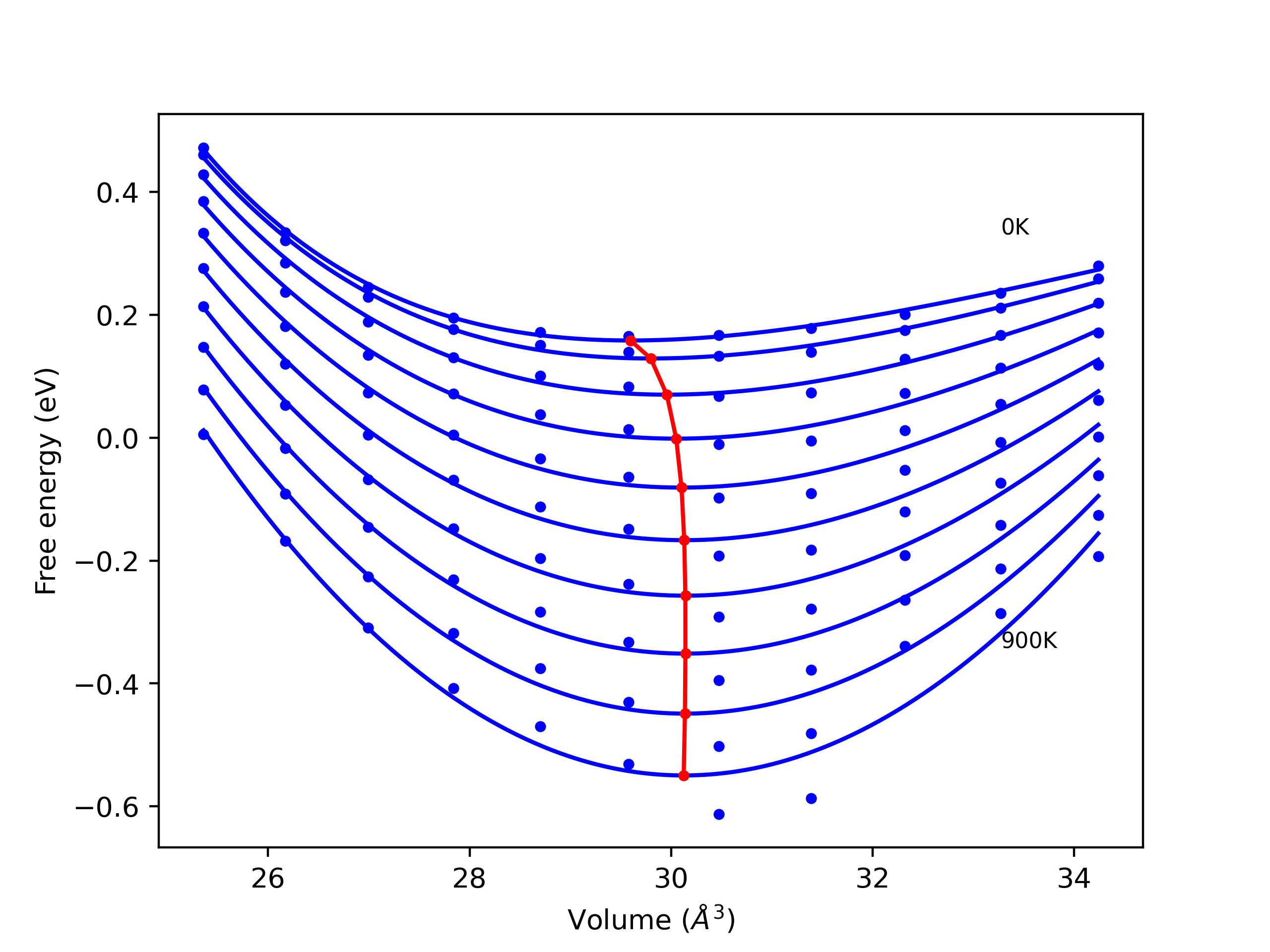 Phonon band structures and crystal properties estimated from quasi-harmonic approximation (QHA) calculations are displayed for select crystals. The calculations were performed using phonopy and LAMMPS. For the phonon calculations, 3x3 supercells of the potential-specific relaxed crystals were used. The QHA calculations were based on 11 strain states ranging from -0.05 to 0.05.