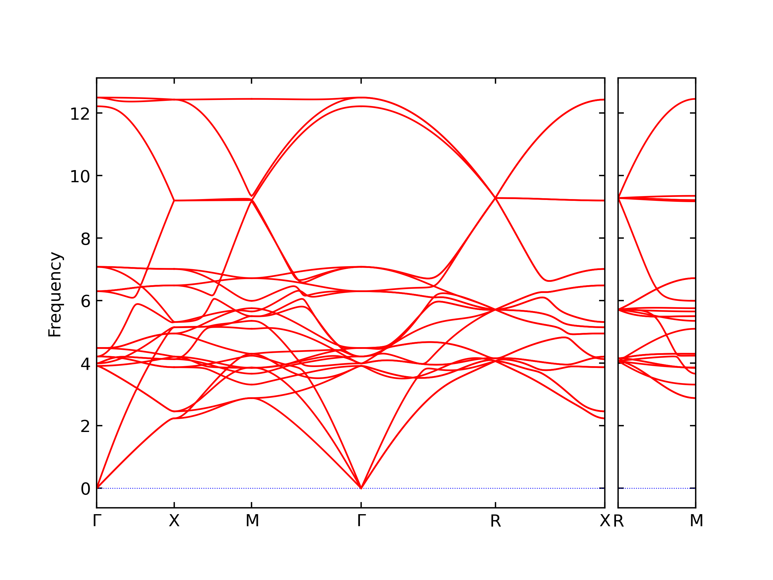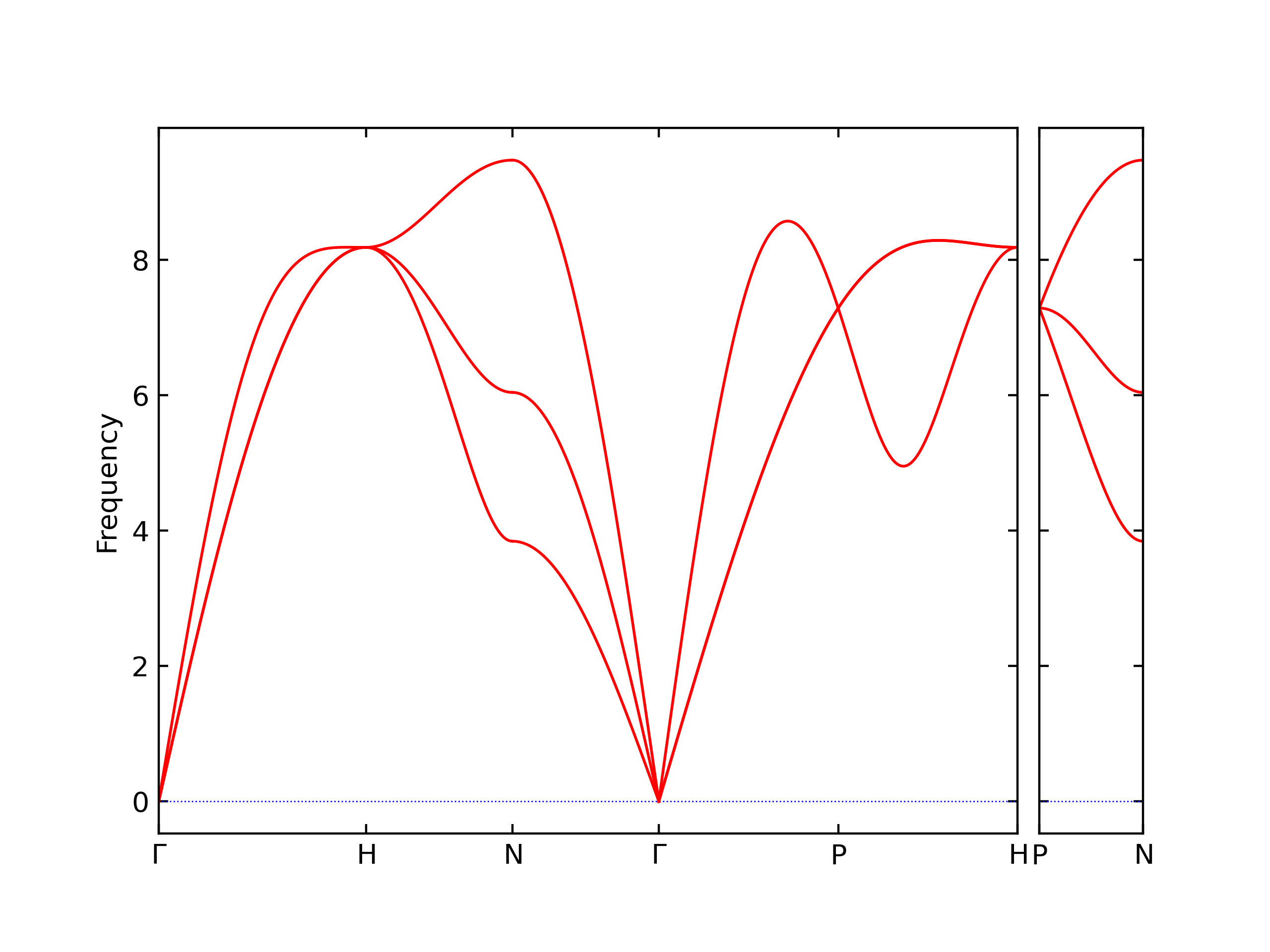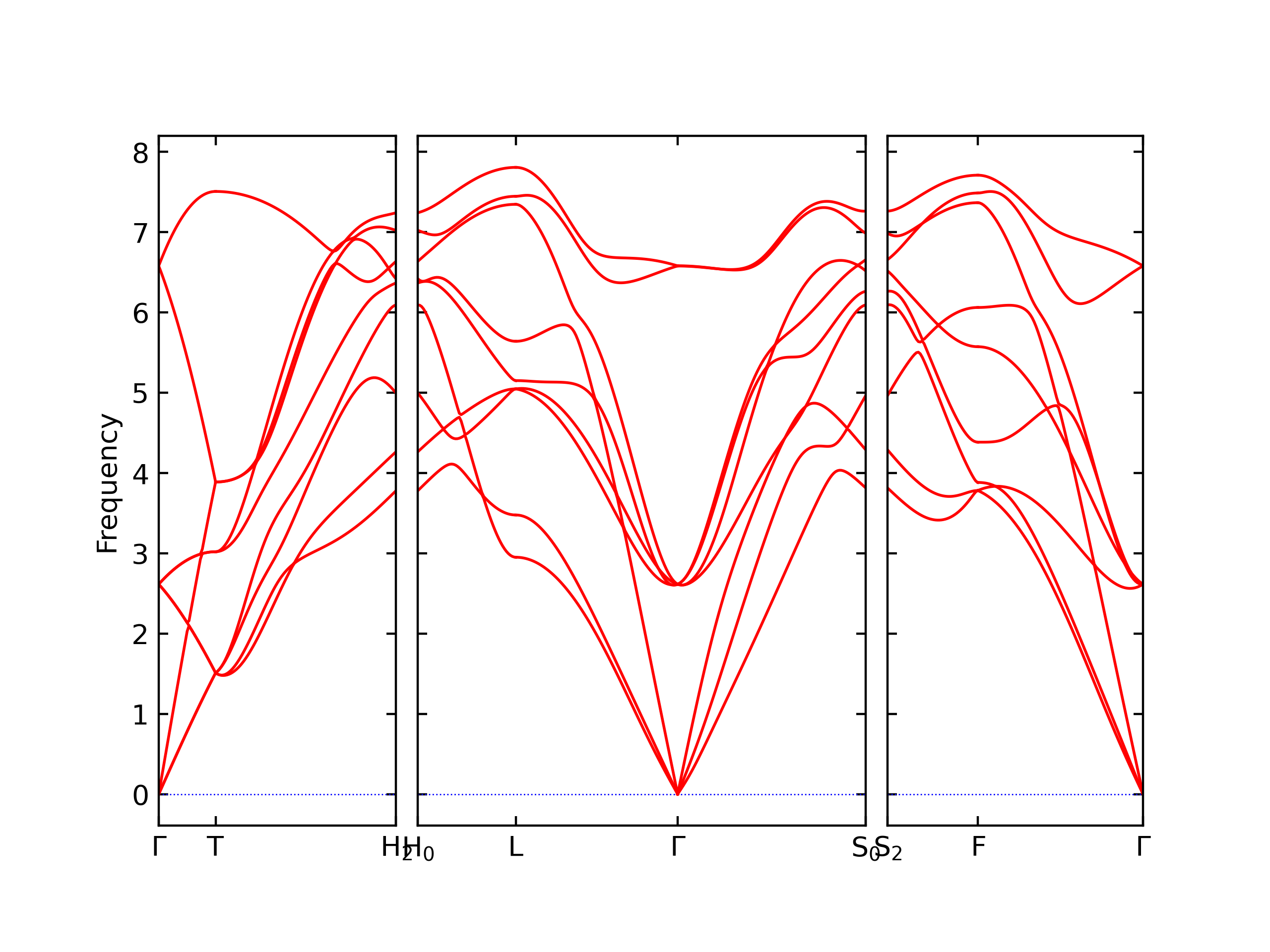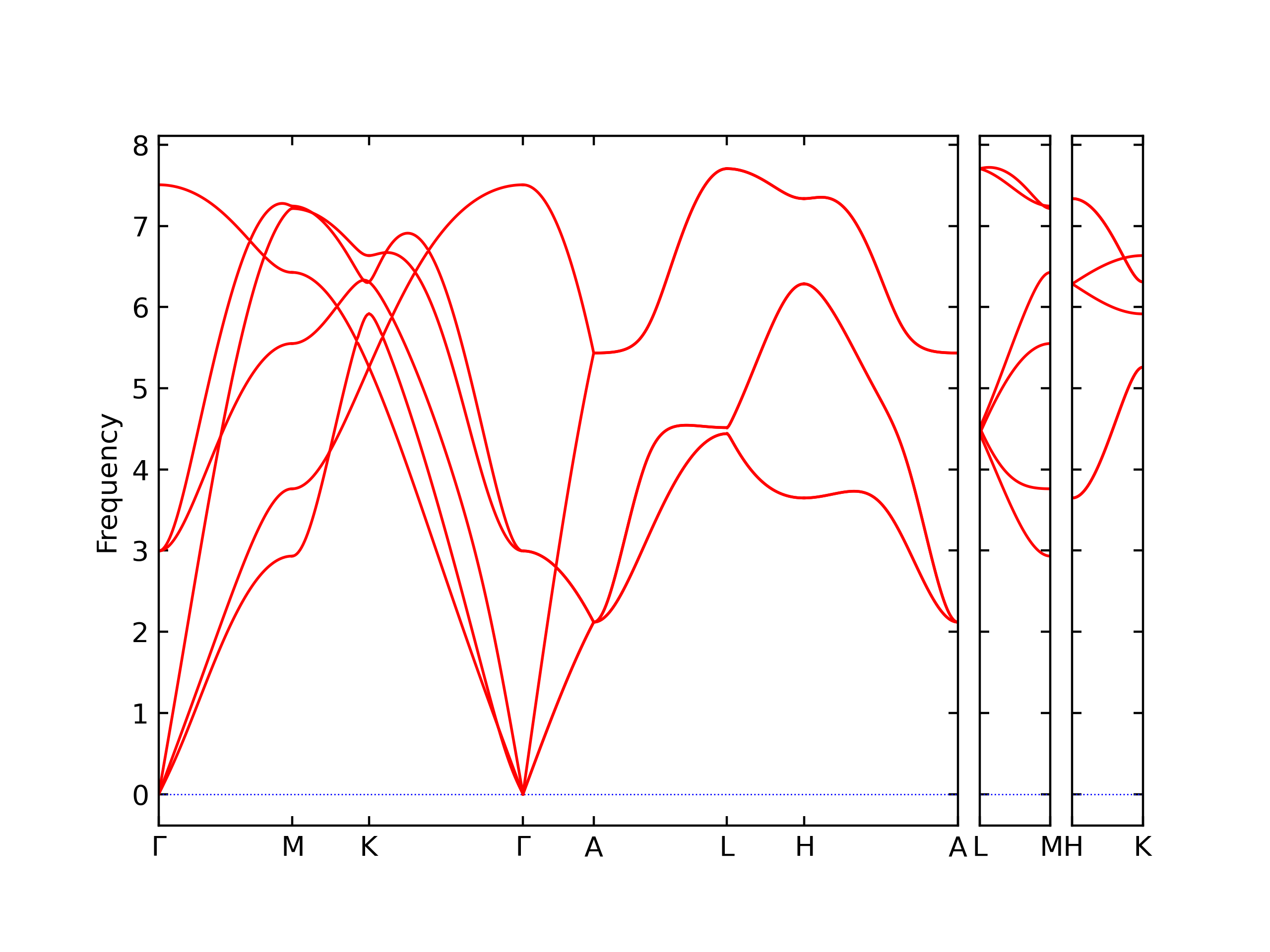 Phonon band structures and crystal properties estimated from quasi-harmonic approximation (QHA) calculations are displayed for select crystals. The calculations were performed using phonopy and LAMMPS. For the phonon calculations, 3x3 supercells of the potential-specific relaxed crystals were used. The QHA calculations were based on 11 strain states ranging from -0.05 to 0.05.