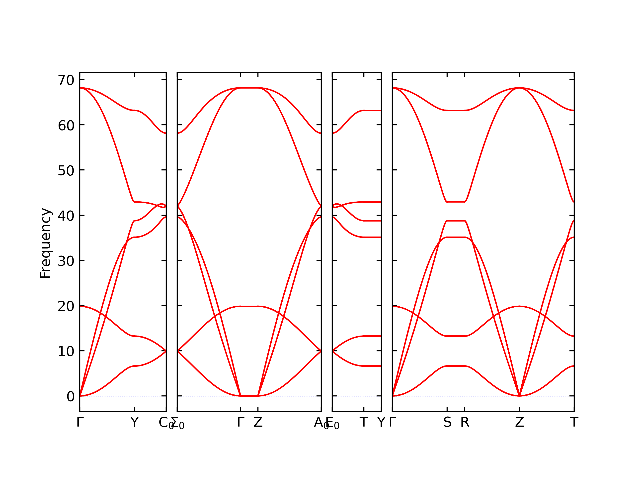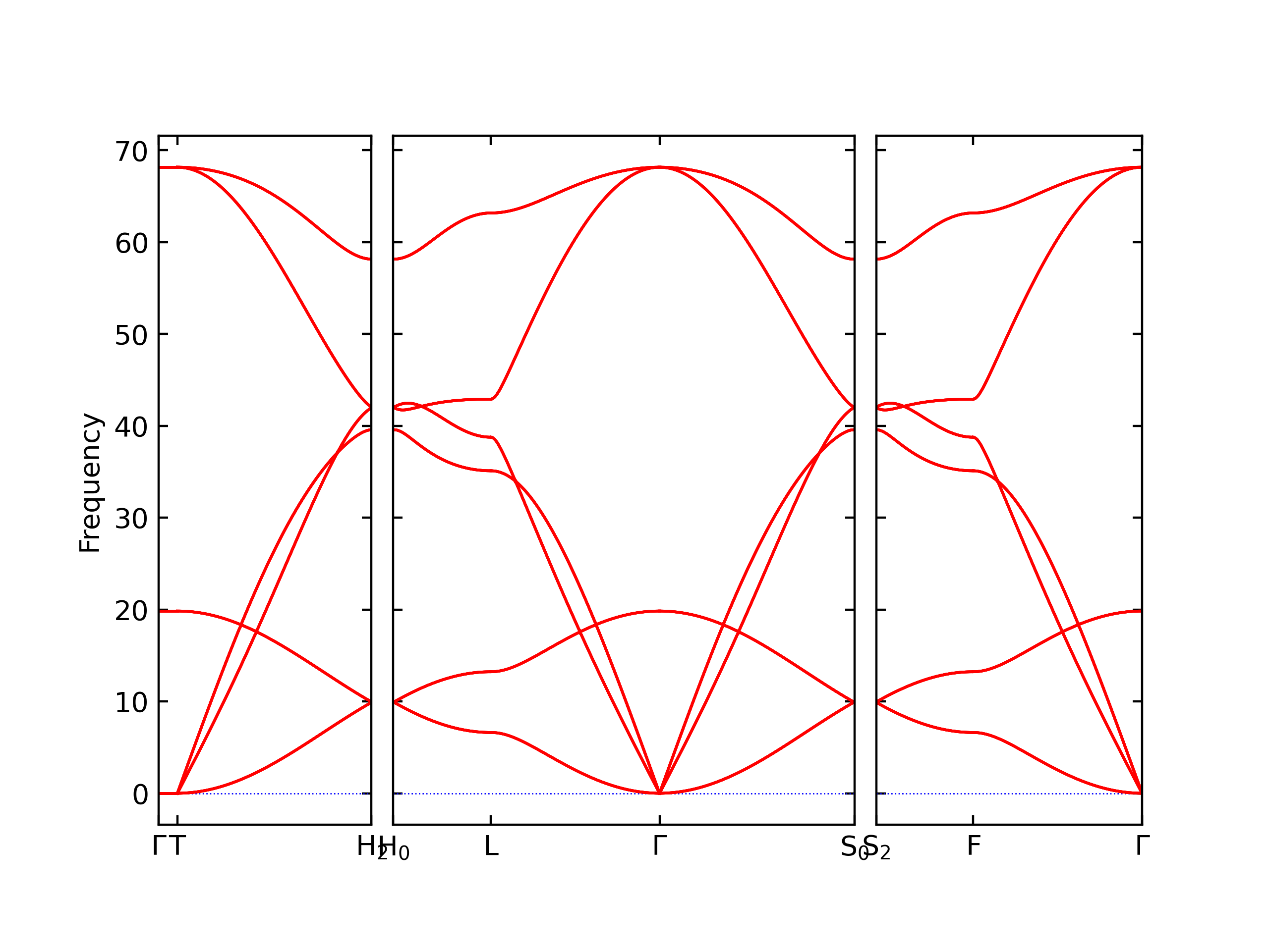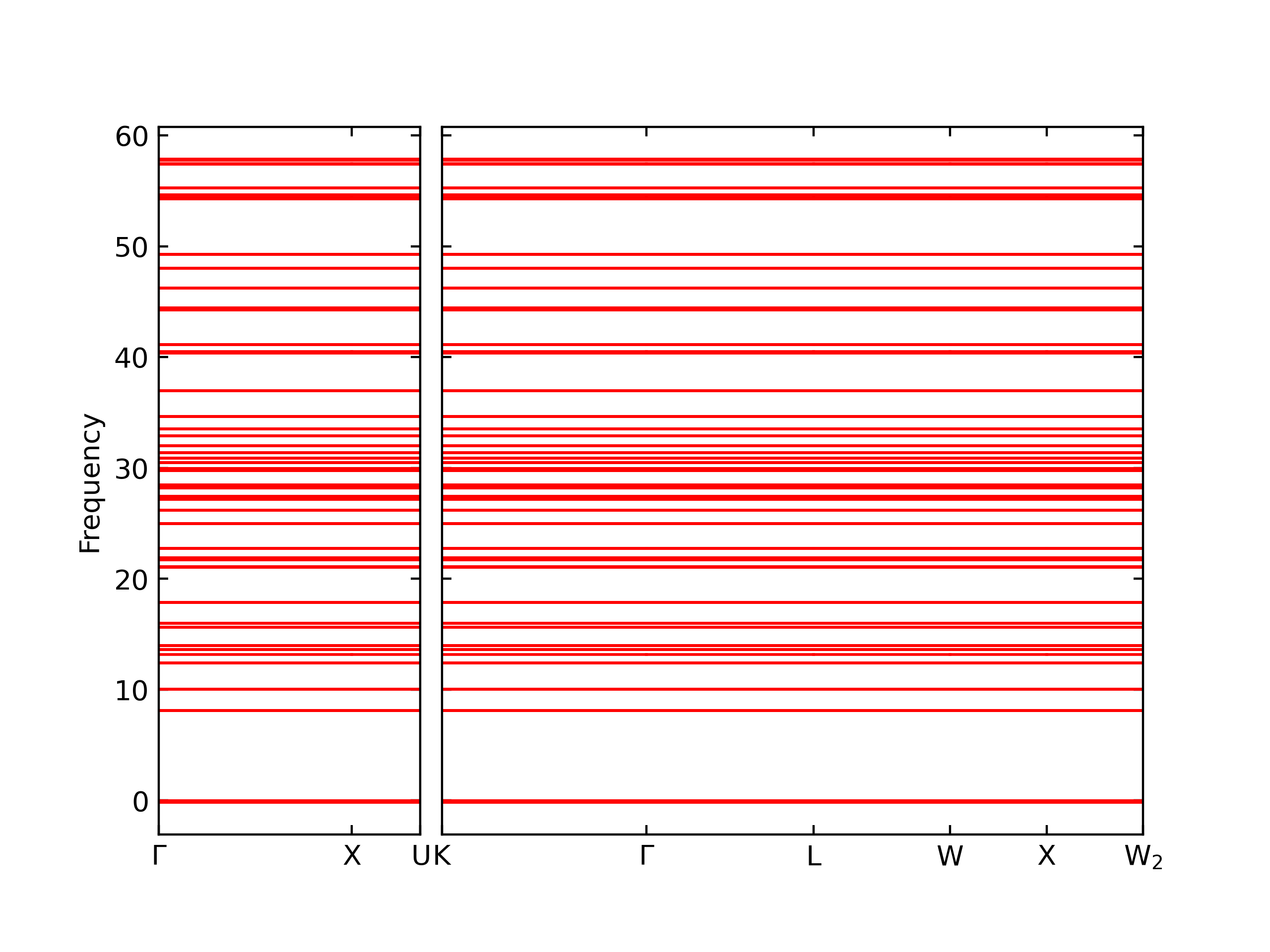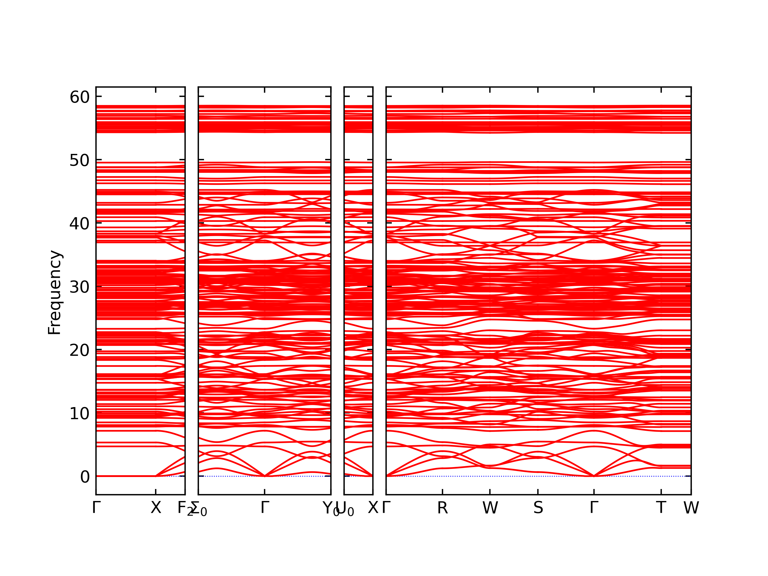 Phonon band structures and crystal properties estimated from quasi-harmonic approximation (QHA) calculations are displayed for select crystals. The calculations were performed using phonopy and LAMMPS. For the phonon calculations, 3x3 supercells of the potential-specific relaxed crystals were used. The QHA calculations were based on 11 strain states ranging from -0.05 to 0.05.