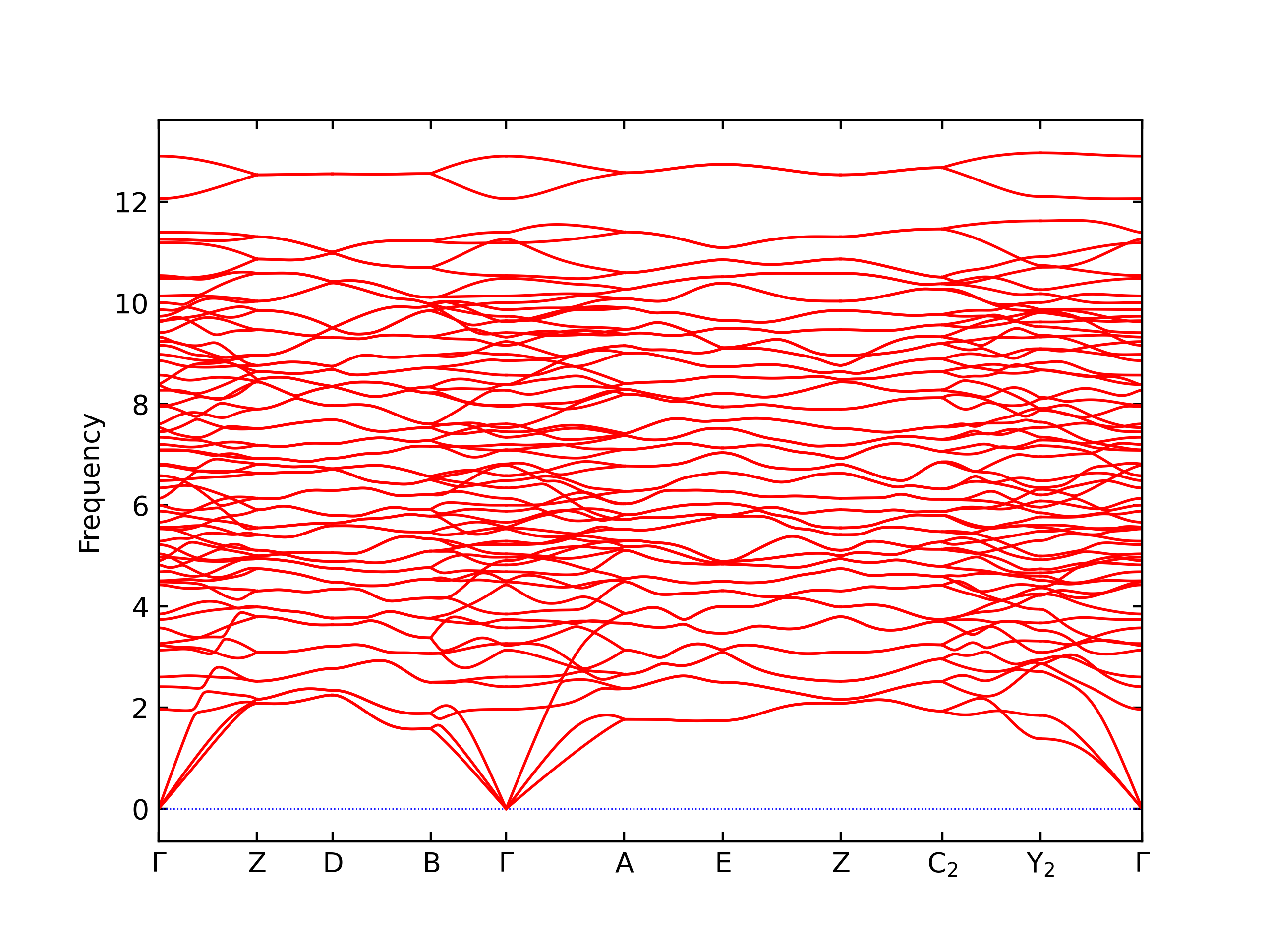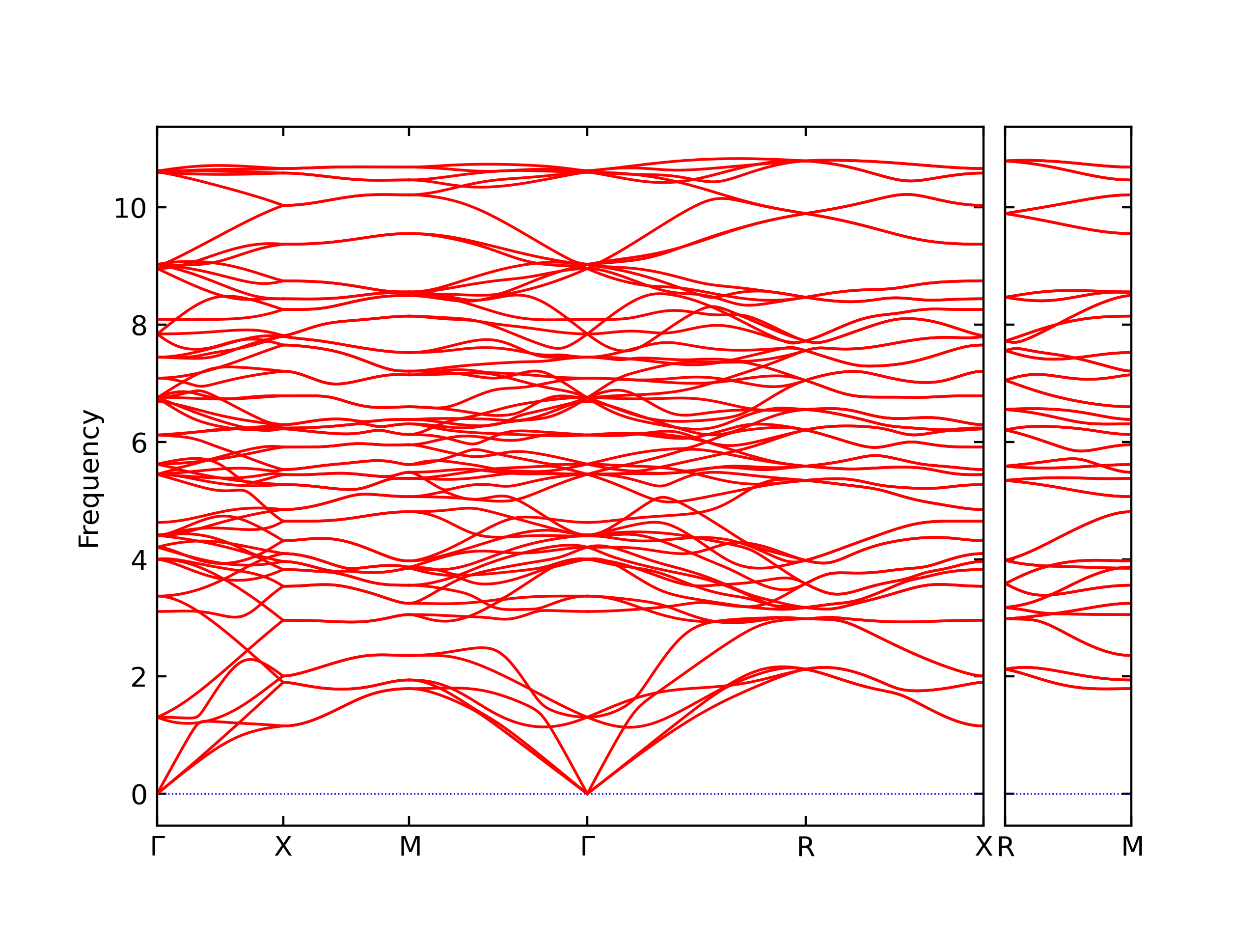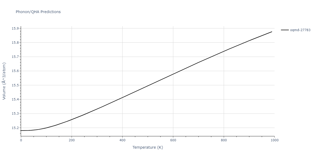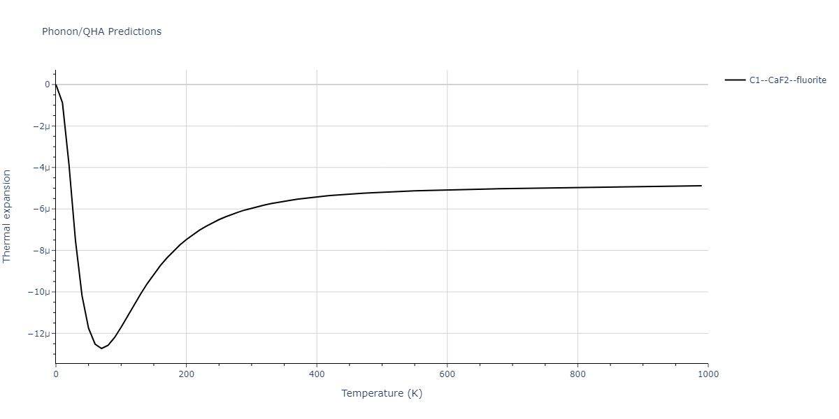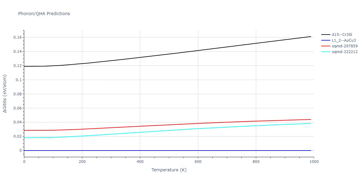 Phonon band structures and crystal properties estimated from quasi-harmonic approximation (QHA) calculations are displayed for select crystals. The calculations were performed using phonopy and LAMMPS. For the phonon calculations, 3x3 supercells of the potential-specific relaxed crystals were used. The QHA calculations were based on 11 strain states ranging from -0.05 to 0.05.
