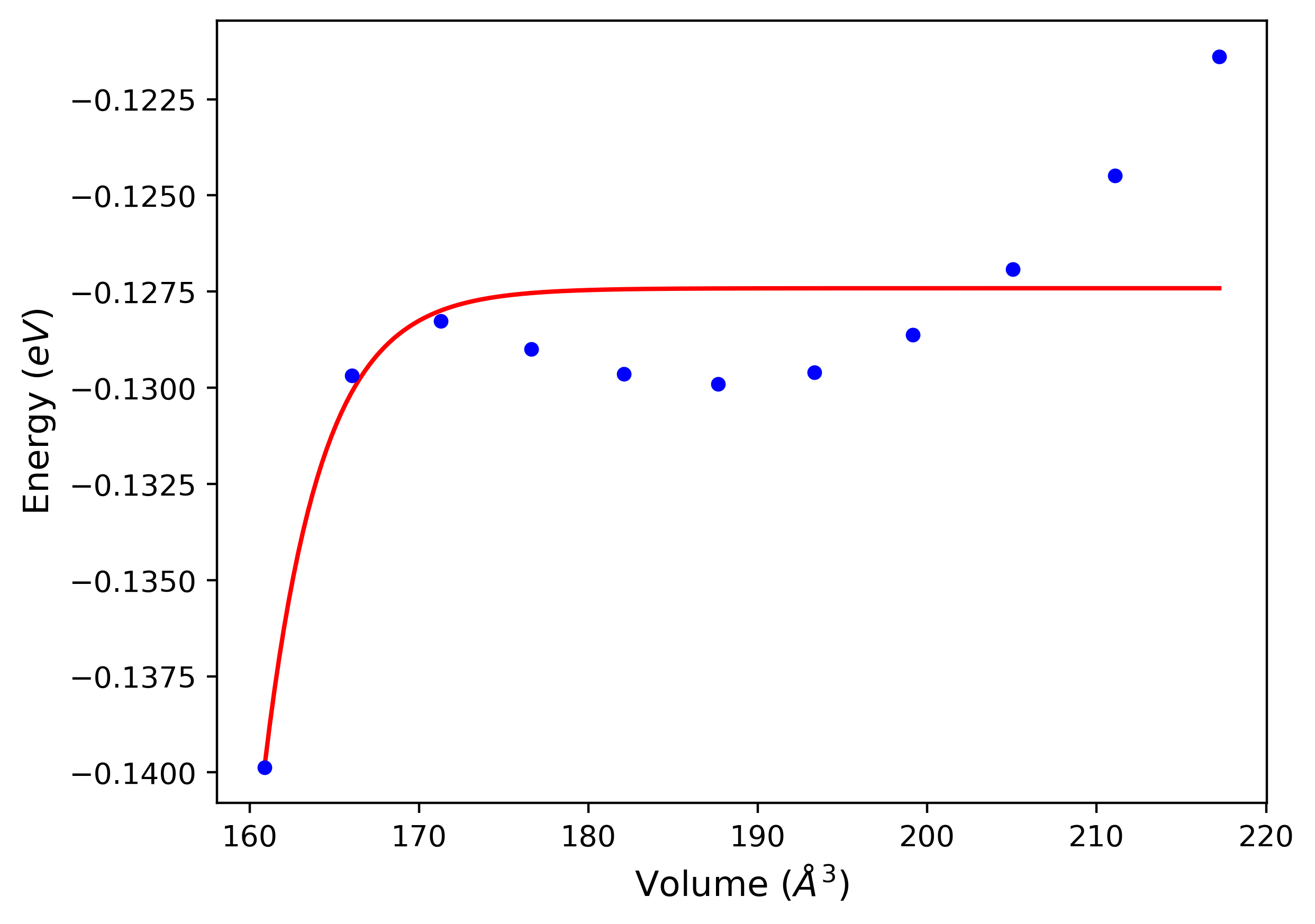 Plots of potential energy vs interatomic spacing, r, are shown below for a number of crystal structures. The structures are generated based on the ideal atomic positions and b/a and c/a lattice parameter ratios for a given crystal prototype. The size of the system is then uniformly scaled, and the energy calculated without relaxing the system. To obtain these plots, values of r are evaluated every 0.02 Å up to 6 Å.