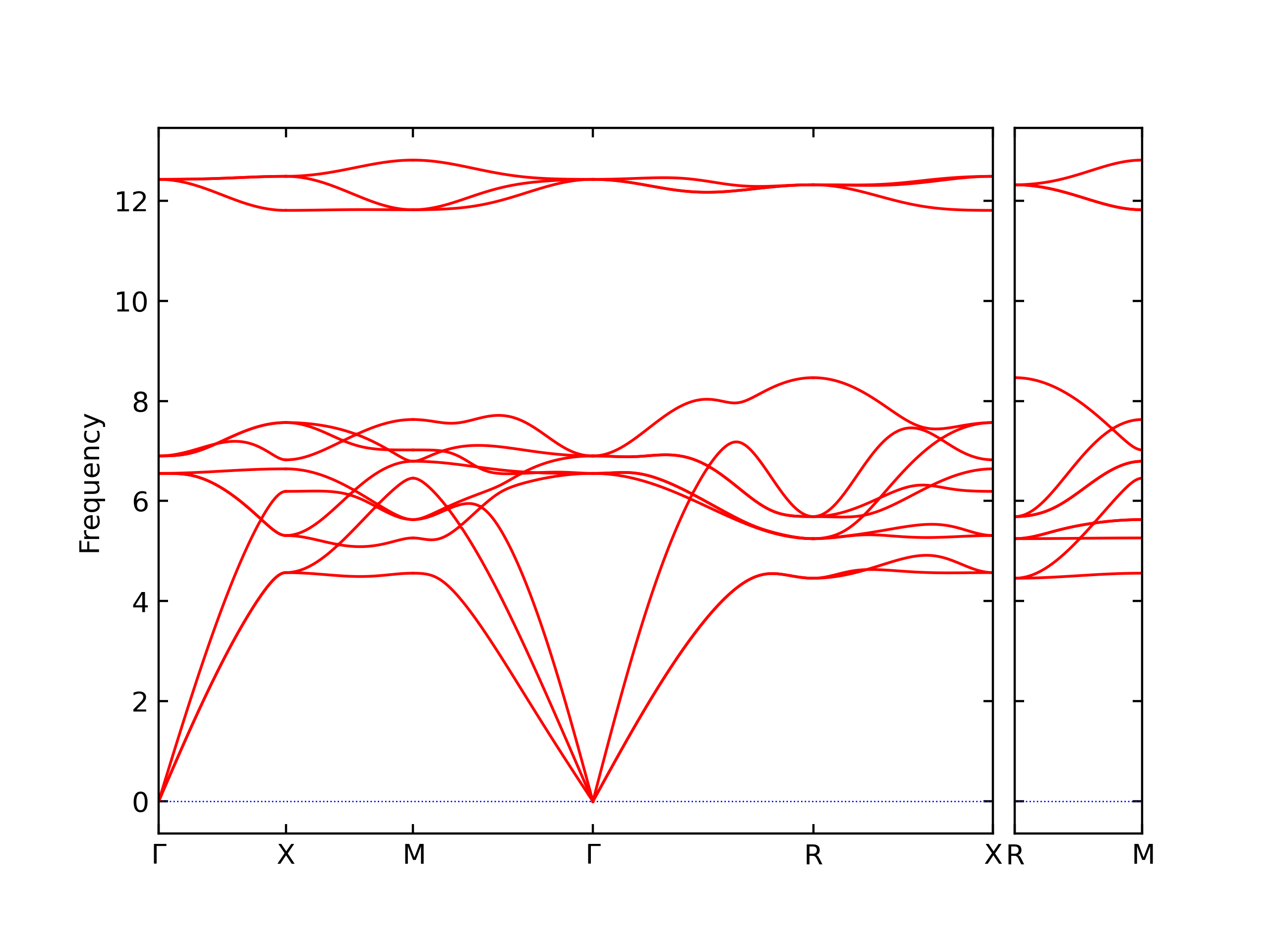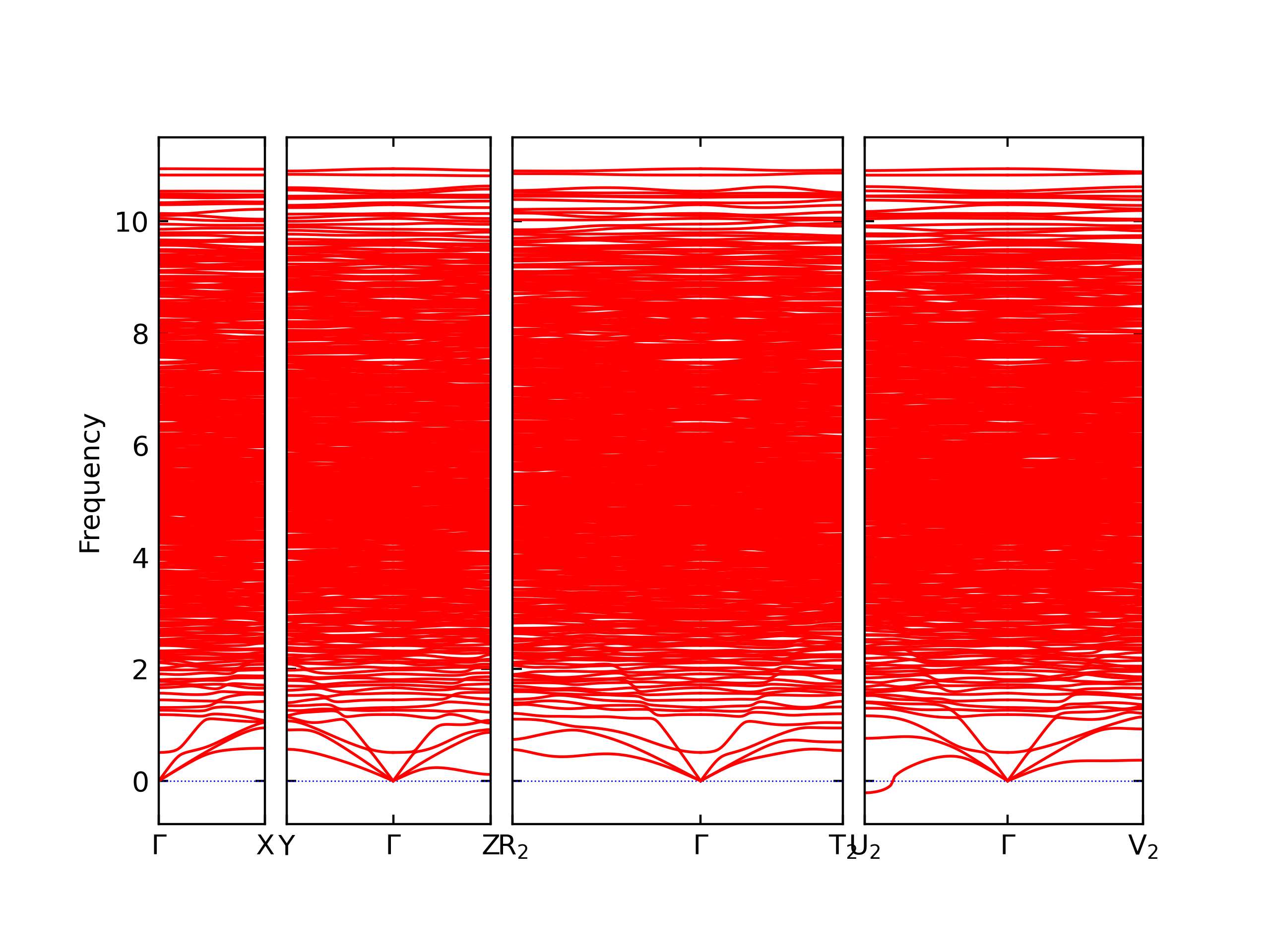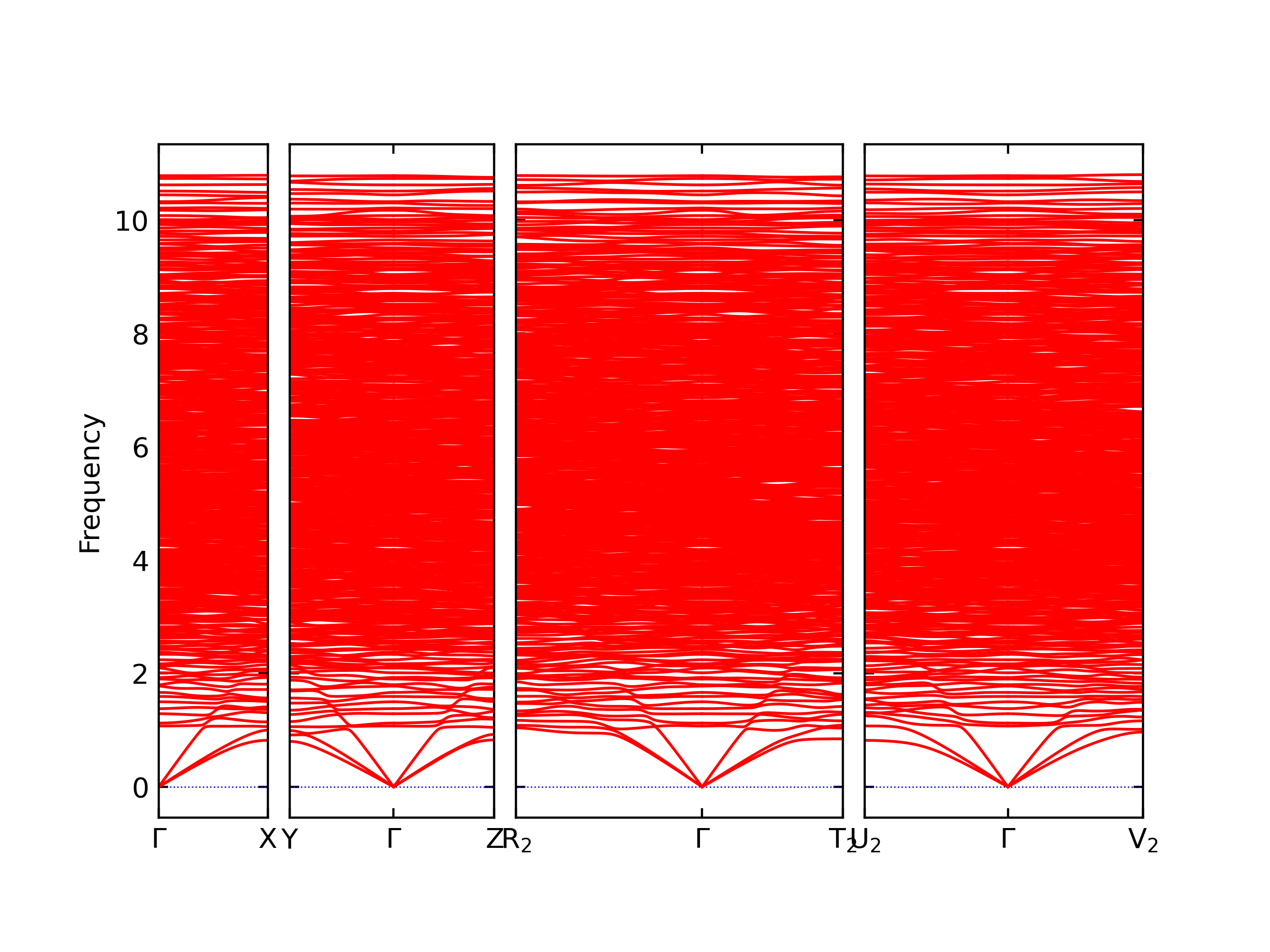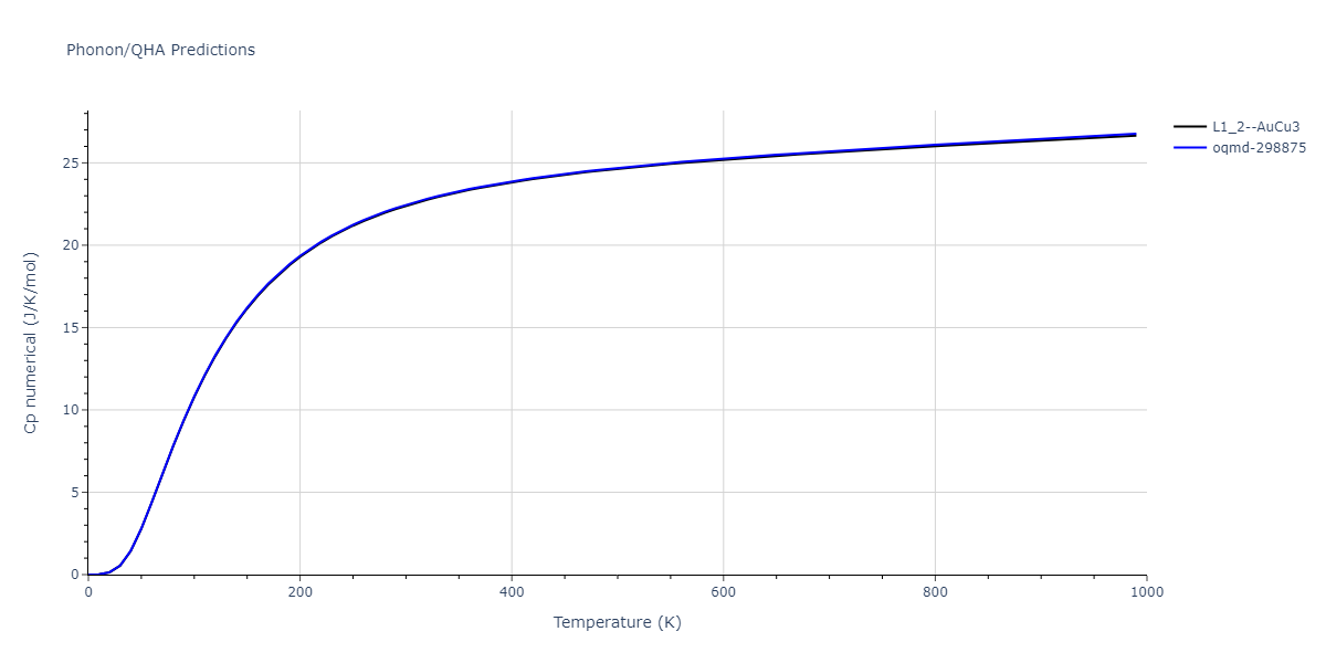 Phonon band structures and crystal properties estimated from quasi-harmonic approximation (QHA) calculations are displayed for select crystals. The calculations were performed using phonopy and LAMMPS. For the phonon calculations, 3x3 supercells of the potential-specific relaxed crystals were used. The QHA calculations were based on 11 strain states ranging from -0.05 to 0.05.