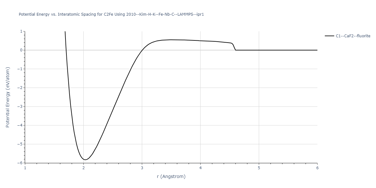 Plots of potential energy vs interatomic spacing, r, are shown below for a number of crystal structures. The structures are generated based on the ideal atomic positions and b/a and c/a lattice parameter ratios for a given crystal prototype. The size of the system is then uniformly scaled, and the energy calculated without relaxing the system. To obtain these plots, values of r are evaluated every 0.02 Å up to 6 Å.