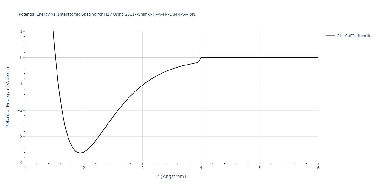Plots of potential energy vs interatomic spacing, r, are shown below for a number of crystal structures. The structures are generated based on the ideal atomic positions and b/a and c/a lattice parameter ratios for a given crystal prototype. The size of the system is then uniformly scaled, and the energy calculated without relaxing the system. To obtain these plots, values of r are evaluated every 0.02 Å up to 6 Å.