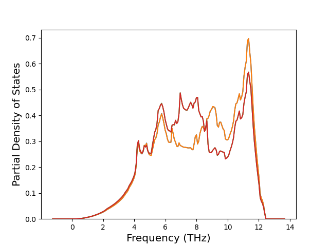 The elastic constants are calculated using the deformation–fluctuation hybrid method. Starting from the final atomic configurations of the dynamic relaxations, the system is allowed to evolve at constant volume with a Langevin thermostat. The Born matrix is computed during this run by evaluating how the atomic forces would vary due to applied linear strain fields. The elastic constants can then be estimated using the averaged Born matrix values and the averaged stresses on the system.
