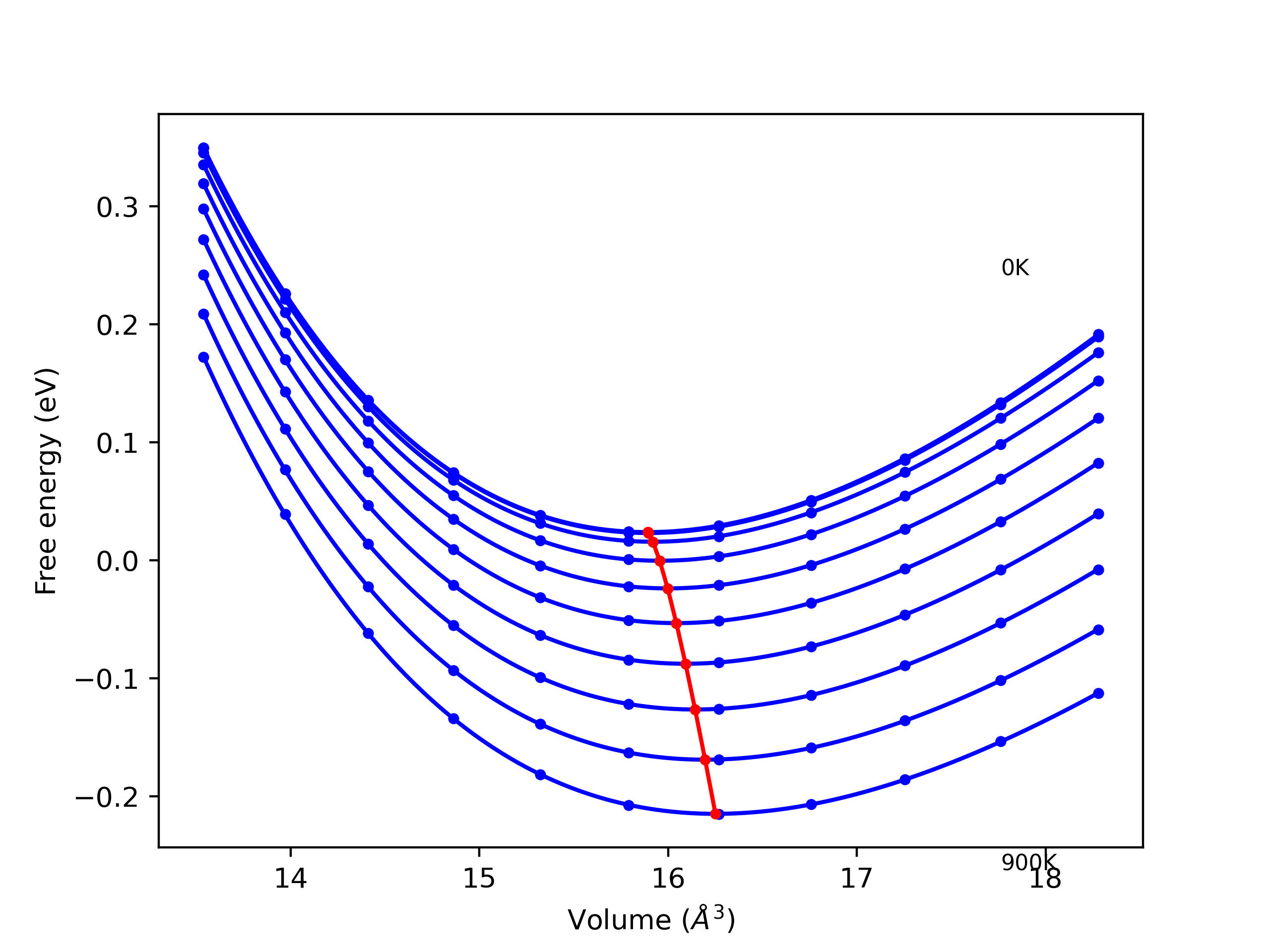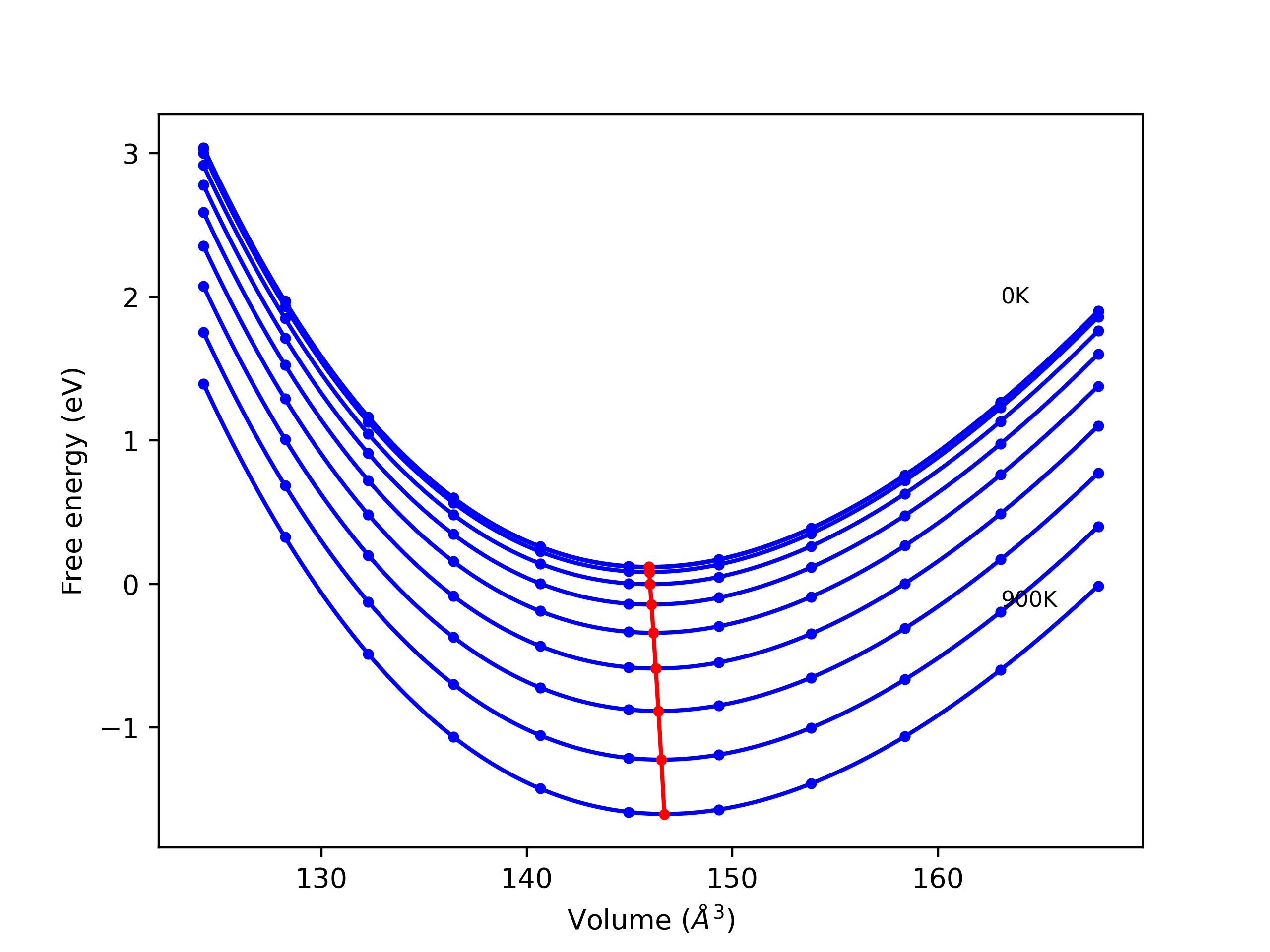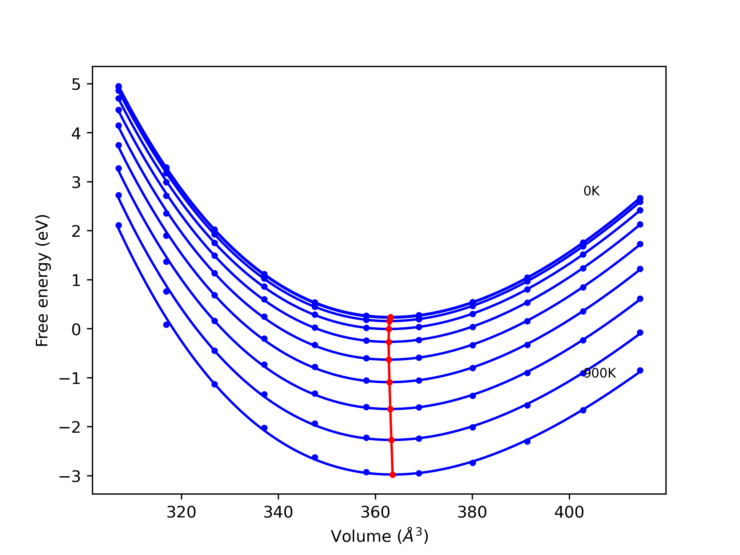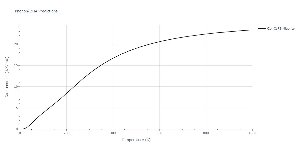 Phonon band structures and crystal properties estimated from quasi-harmonic approximation (QHA) calculations are displayed for select crystals. The calculations were performed using phonopy and LAMMPS. For the phonon calculations, 3x3 supercells of the potential-specific relaxed crystals were used. The QHA calculations were based on 11 strain states ranging from -0.05 to 0.05.