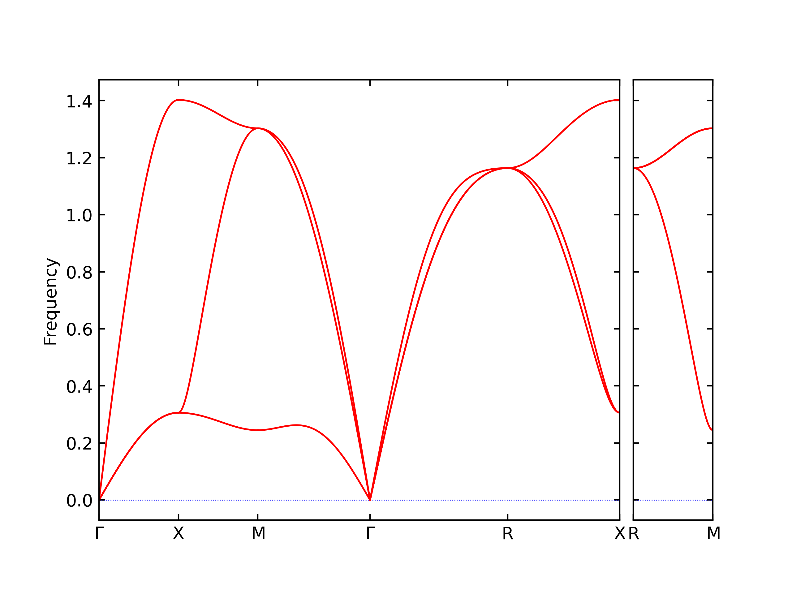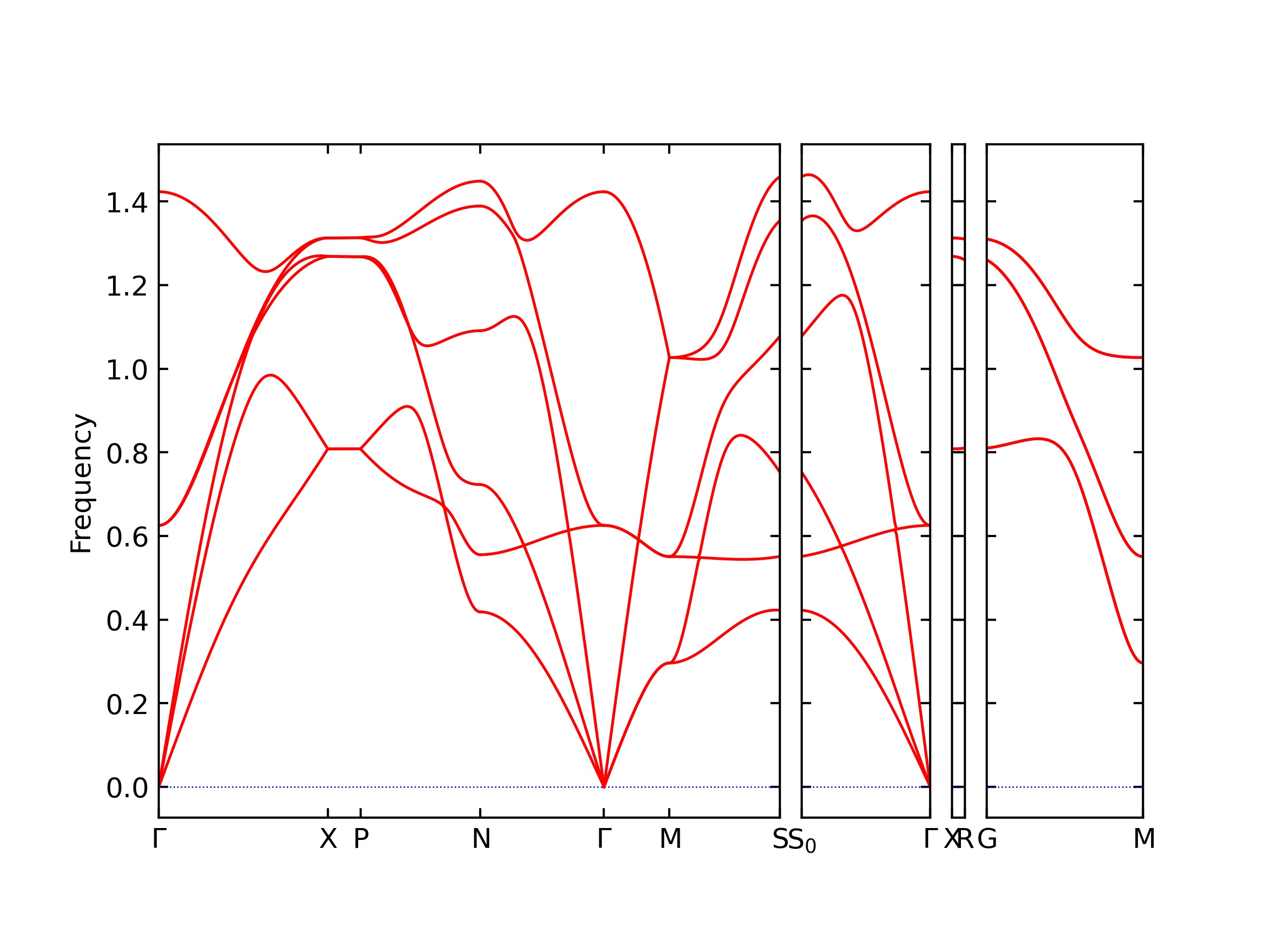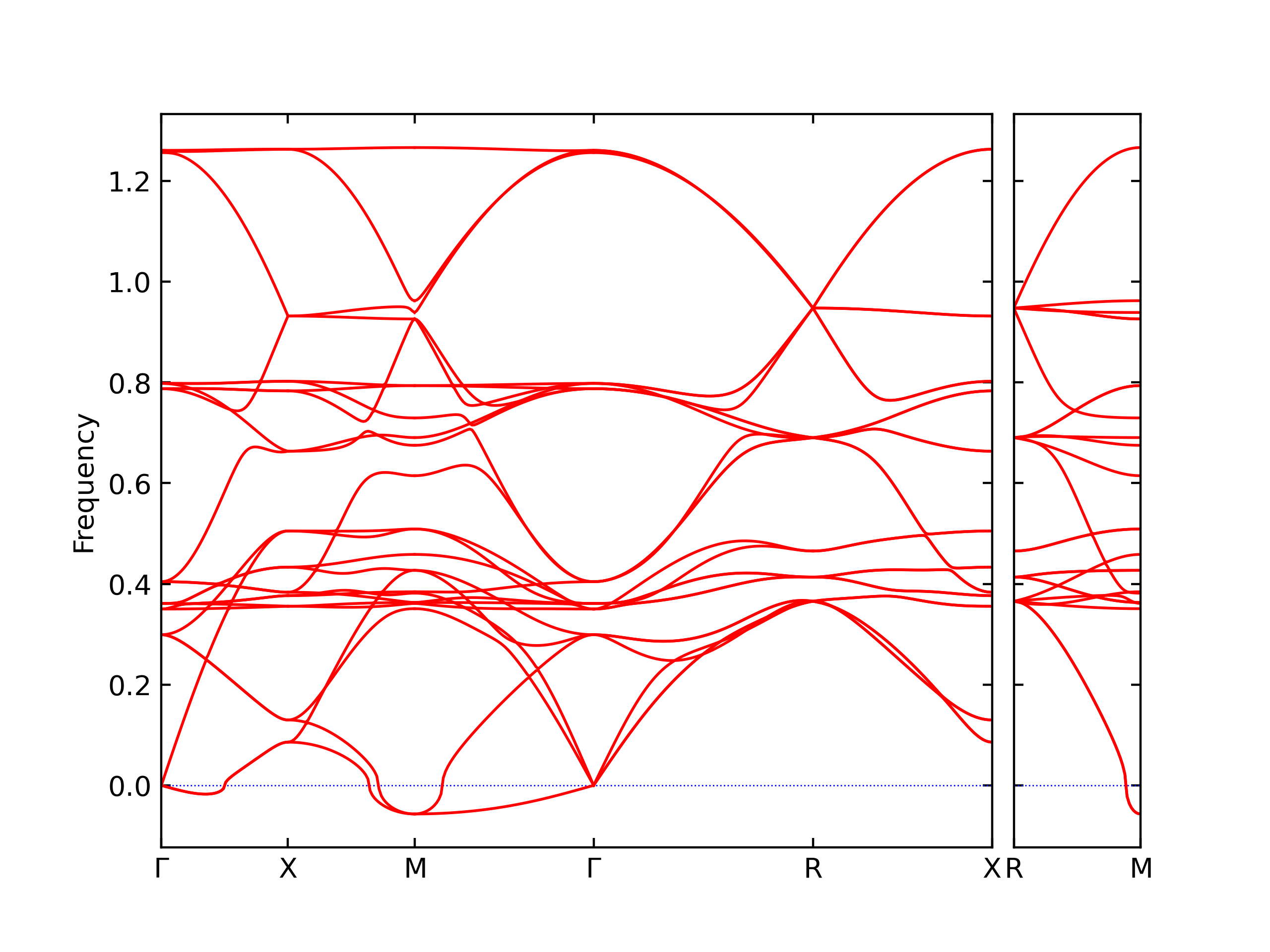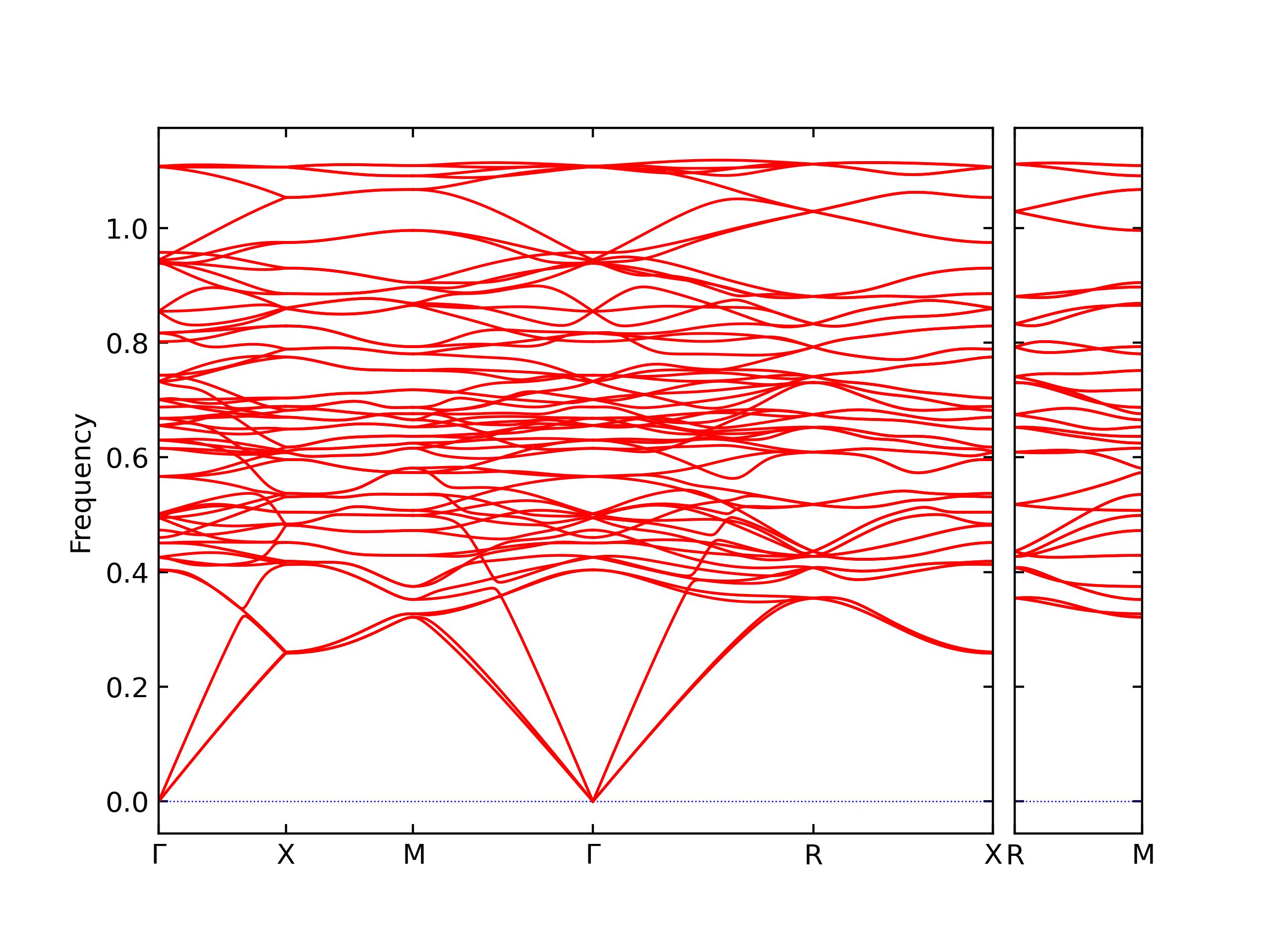 Phonon band structures and crystal properties estimated from quasi-harmonic approximation (QHA) calculations are displayed for select crystals. The calculations were performed using phonopy and LAMMPS. For the phonon calculations, 3x3 supercells of the potential-specific relaxed crystals were used. The QHA calculations were based on 11 strain states ranging from -0.05 to 0.05.