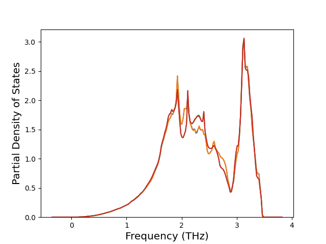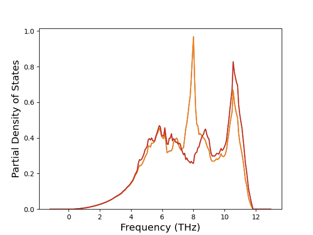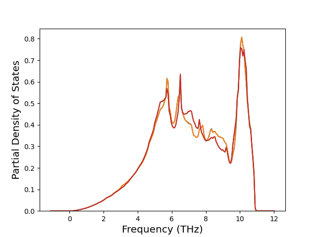The elastic constants are calculated using the deformation–fluctuation hybrid method. Starting from the final atomic configurations of the dynamic relaxations, the system is allowed to evolve at constant volume with a Langevin thermostat. The Born matrix is computed during this run by evaluating how the atomic forces would vary due to applied linear strain fields. The elastic constants can then be estimated using the averaged Born matrix values and the averaged stresses on the system.