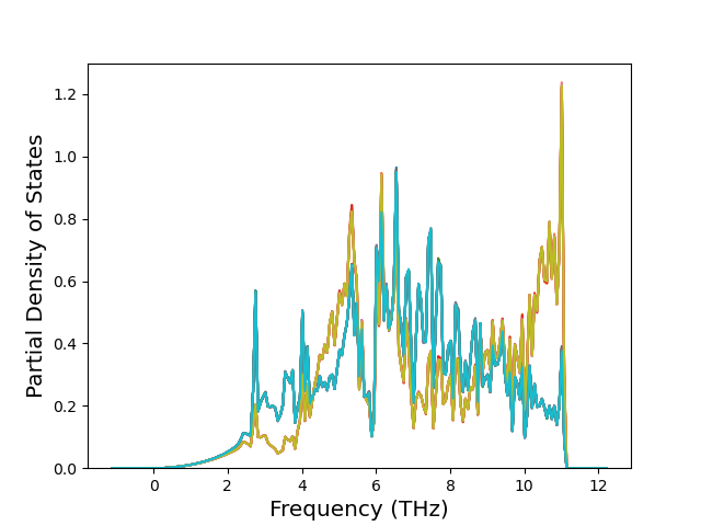 Estimated melting temperatures are tabulated below. The melting temperature is computed here using a two-phase solid-liquid atomic configuration. The two-phase configuration is created by starting with a crystalline system in which the c box vector is roughly twice the length of the other two box vectors. Based on some input temperature Tinit, an NPH plus a Berensen thermostat simulation is performed for 10,000 steps in which half the system is subjected to a temperature of 1.25*Tinit and the other half to a temperature of 0.5*Tinit. This is then followed by 10,000 steps during which the temperature of the two regions are both scaled to Tinit. The system is then ran for 200,000 NPH steps to equilibrate the system. For the second half of the final NPH run, the average temperature of the system is calculated and the polyhedral template matching algorithm is used to estimate the number of solid and liquid atoms for a number of configuration snapshots. If the averaged fraction of solid atoms is found to be between 0.25-0.75, then the averaged temperature provides an estimate of the melting temperature.