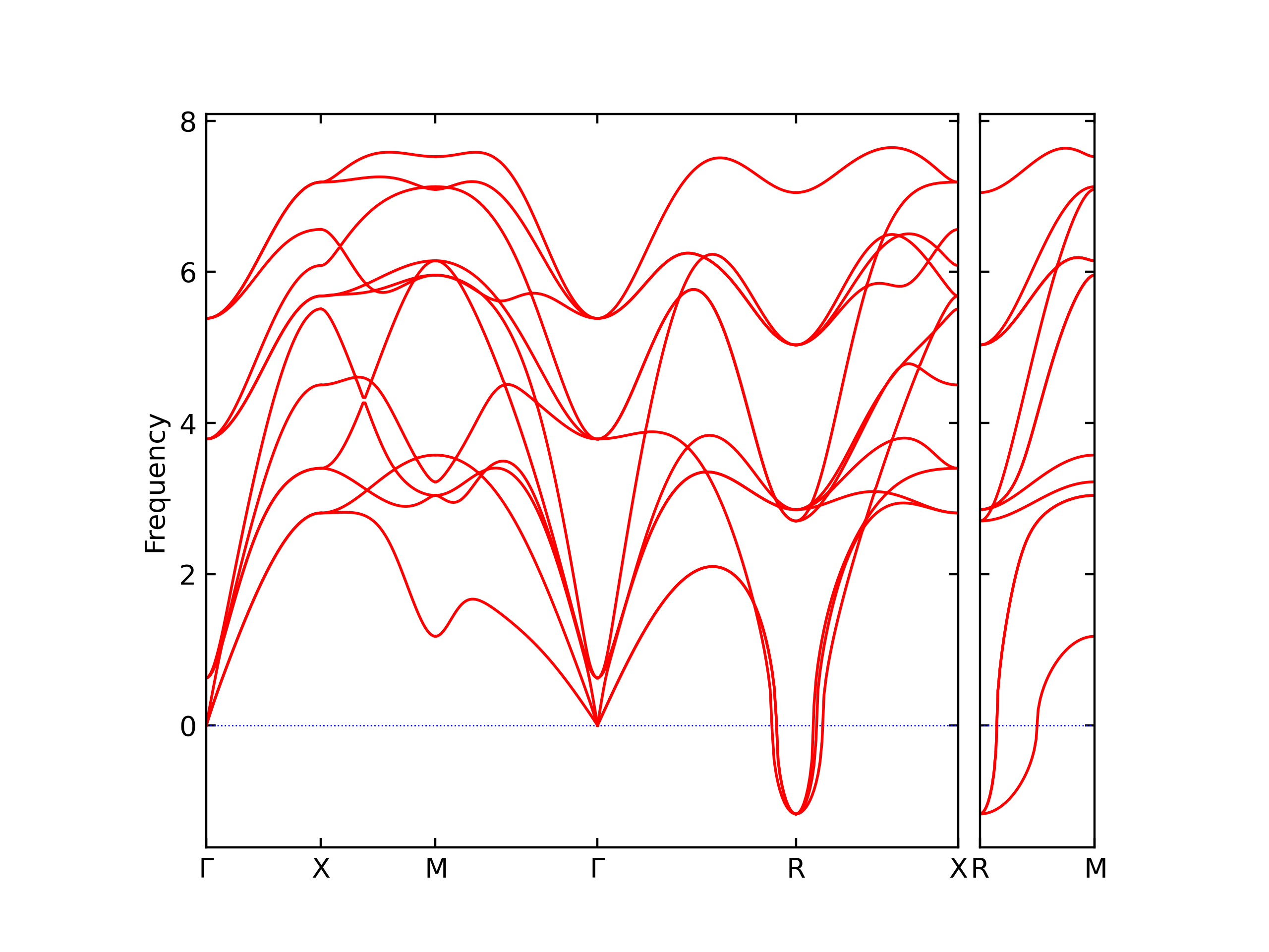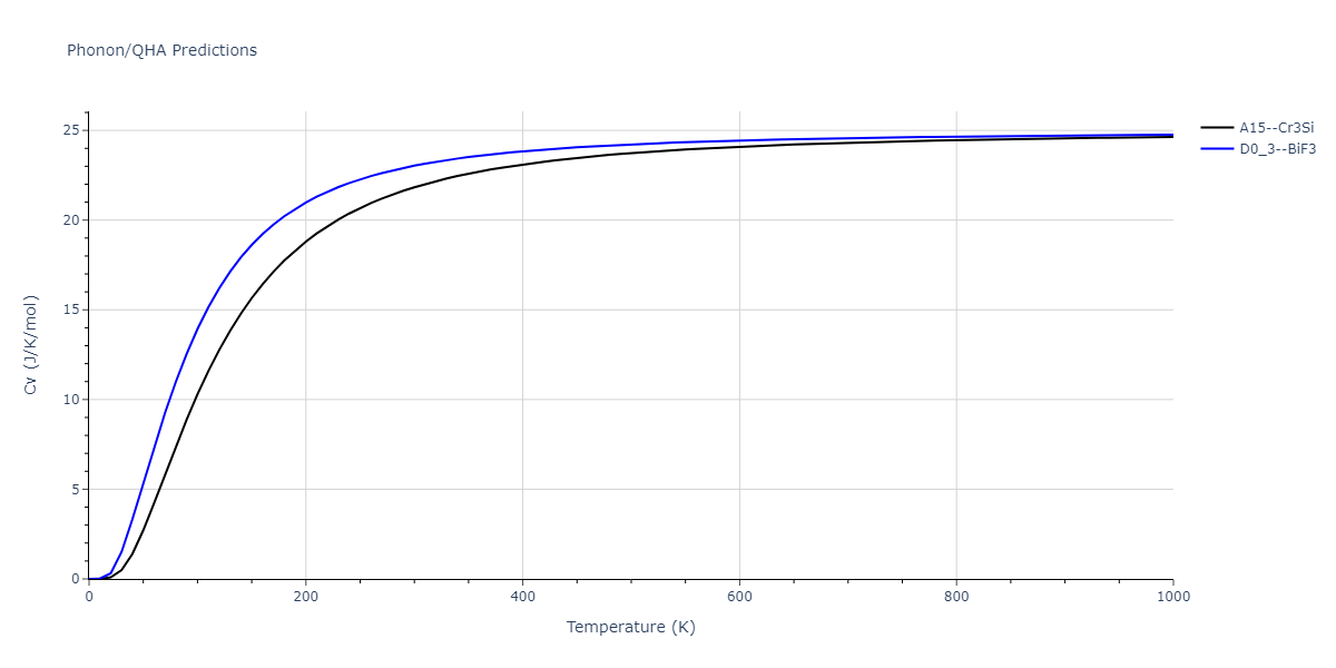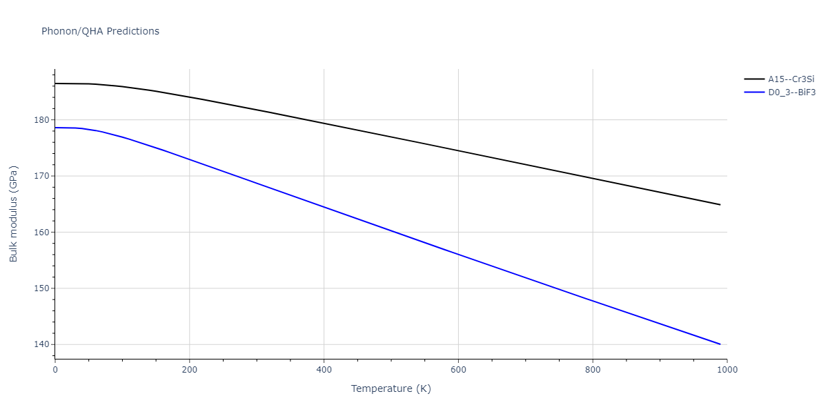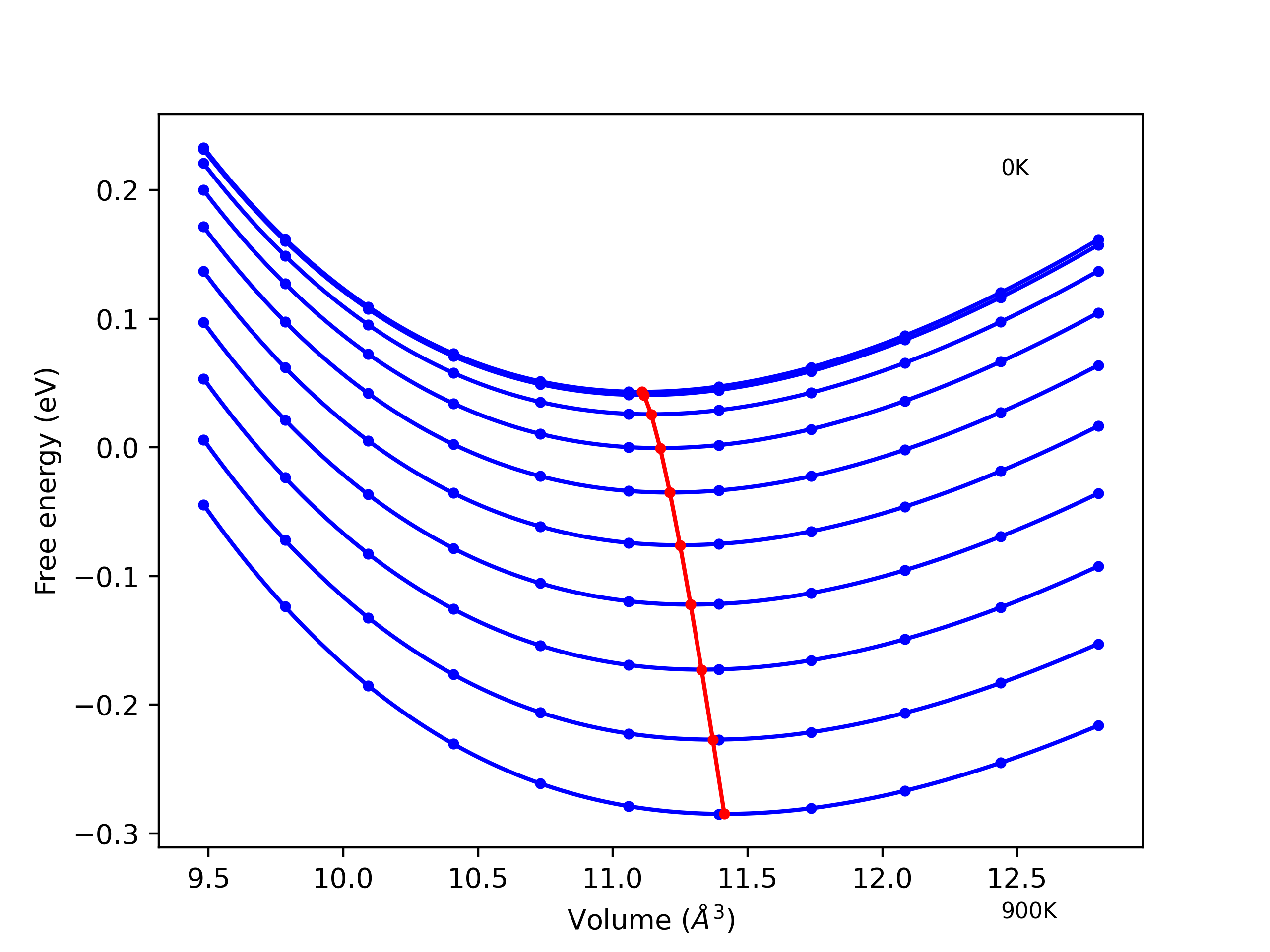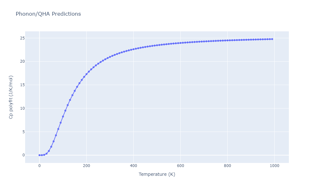 Phonon band structures and crystal properties estimated from quasi-harmonic approximation (QHA) calculations are displayed for select crystals. The calculations were performed using phonopy and LAMMPS. For the phonon calculations, 3x3 supercells of the potential-specific relaxed crystals were used. The QHA calculations were based on 11 strain states ranging from -0.05 to 0.05.