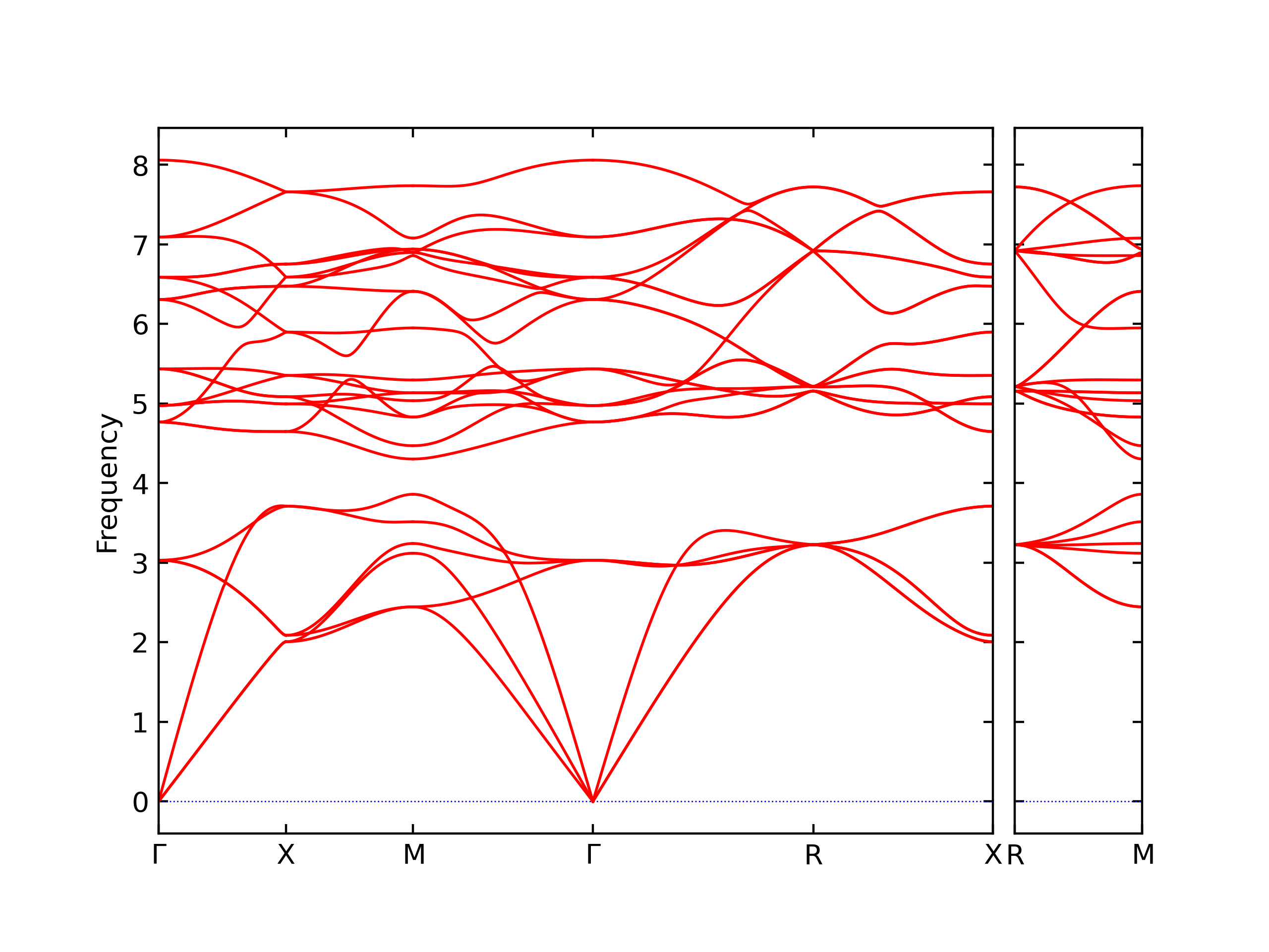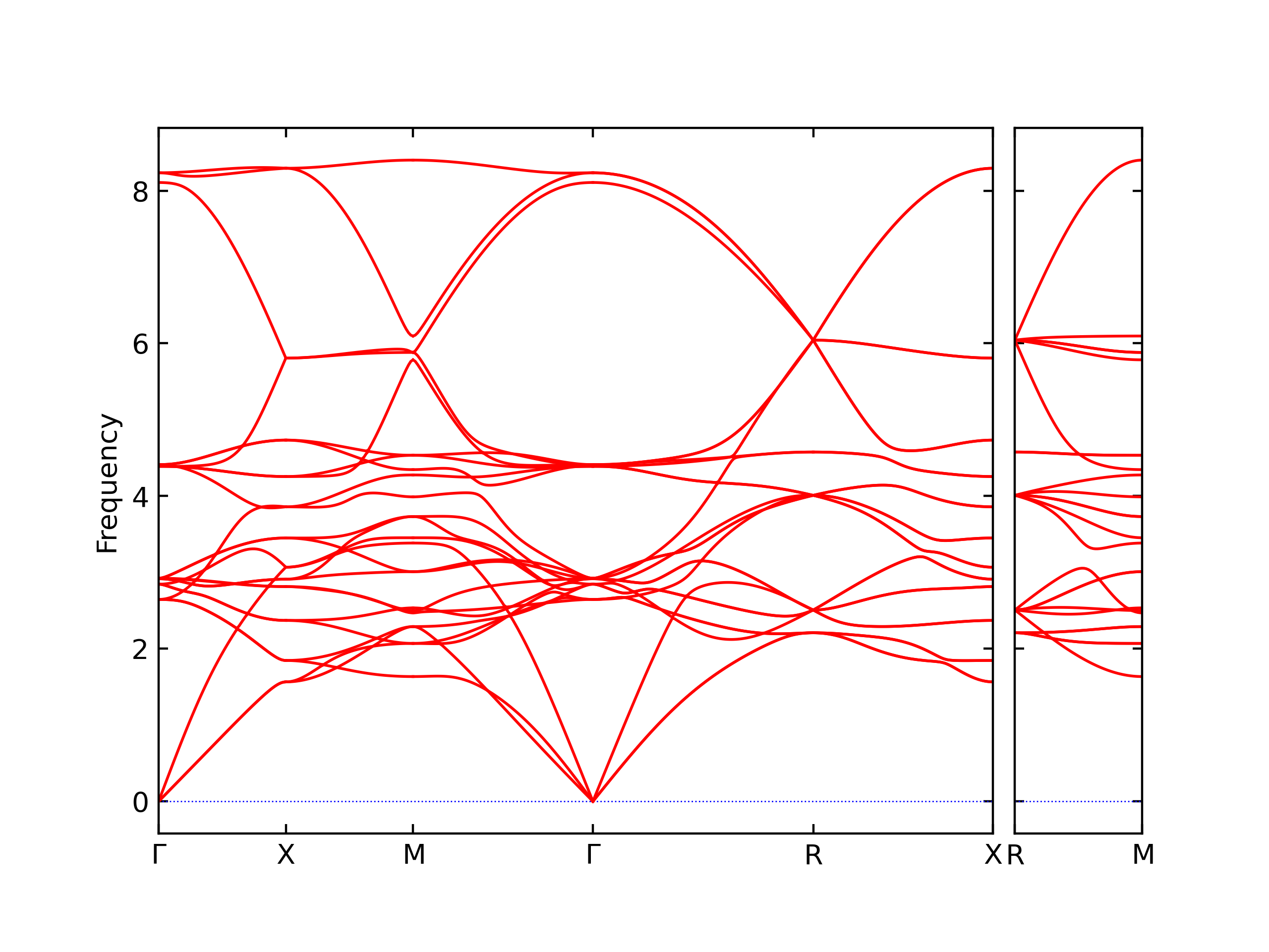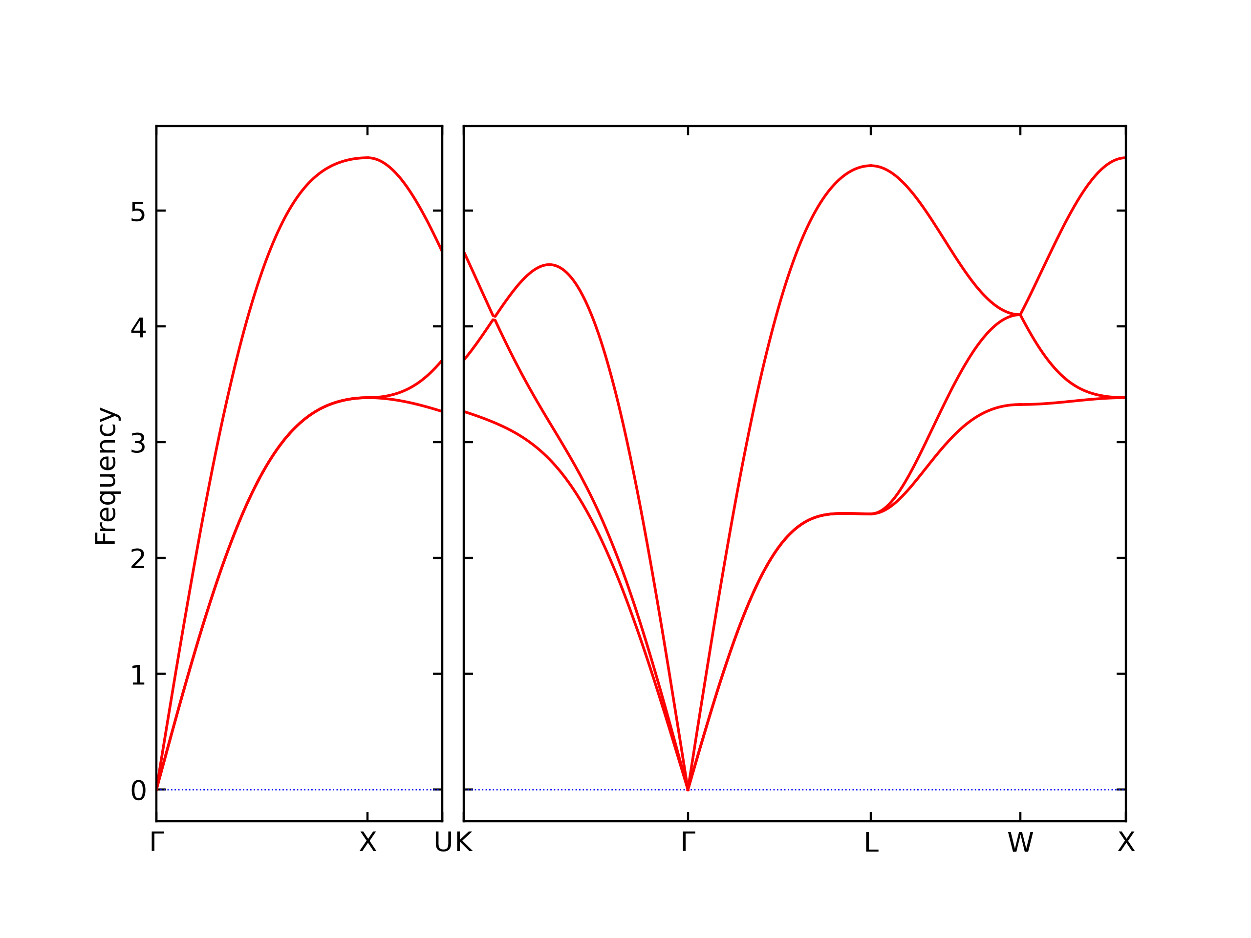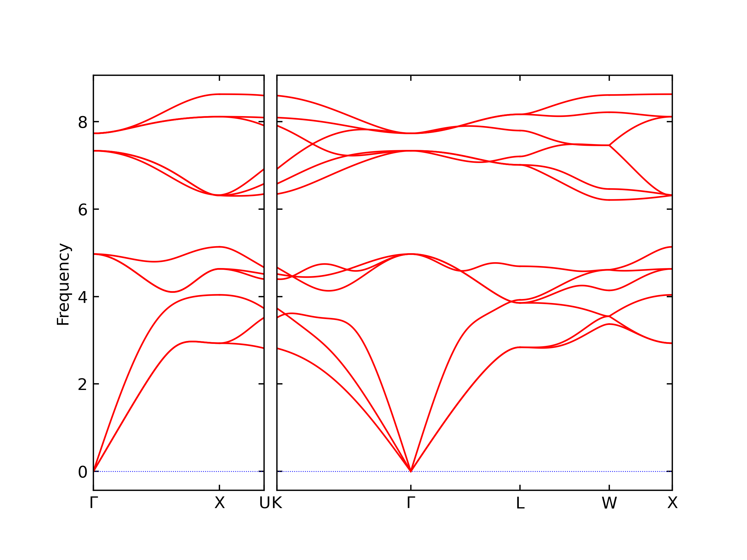 Phonon band structures and crystal properties estimated from quasi-harmonic approximation (QHA) calculations are displayed for select crystals. The calculations were performed using phonopy and LAMMPS. For the phonon calculations, 3x3 supercells of the potential-specific relaxed crystals were used. The QHA calculations were based on 11 strain states ranging from -0.05 to 0.05.