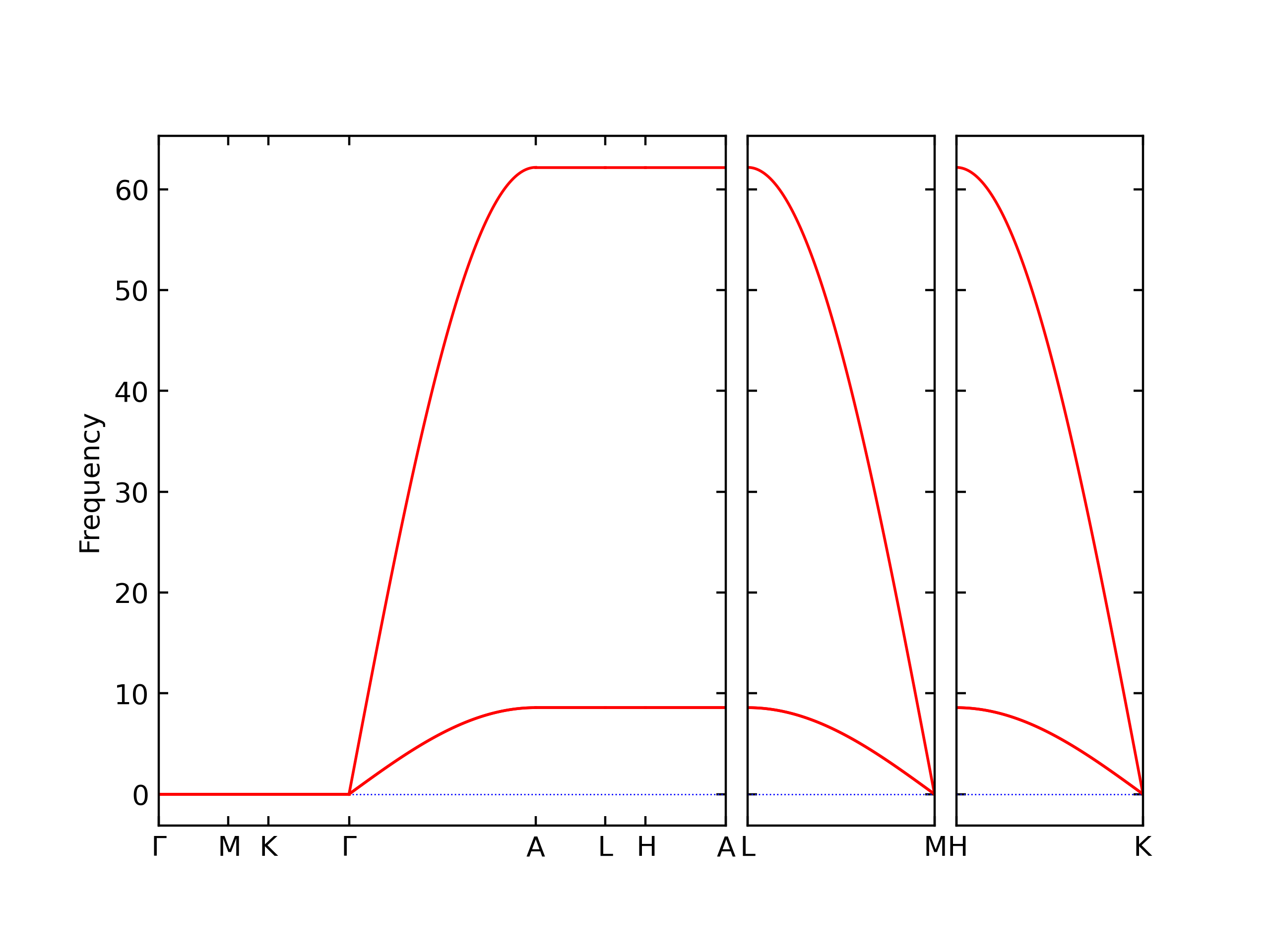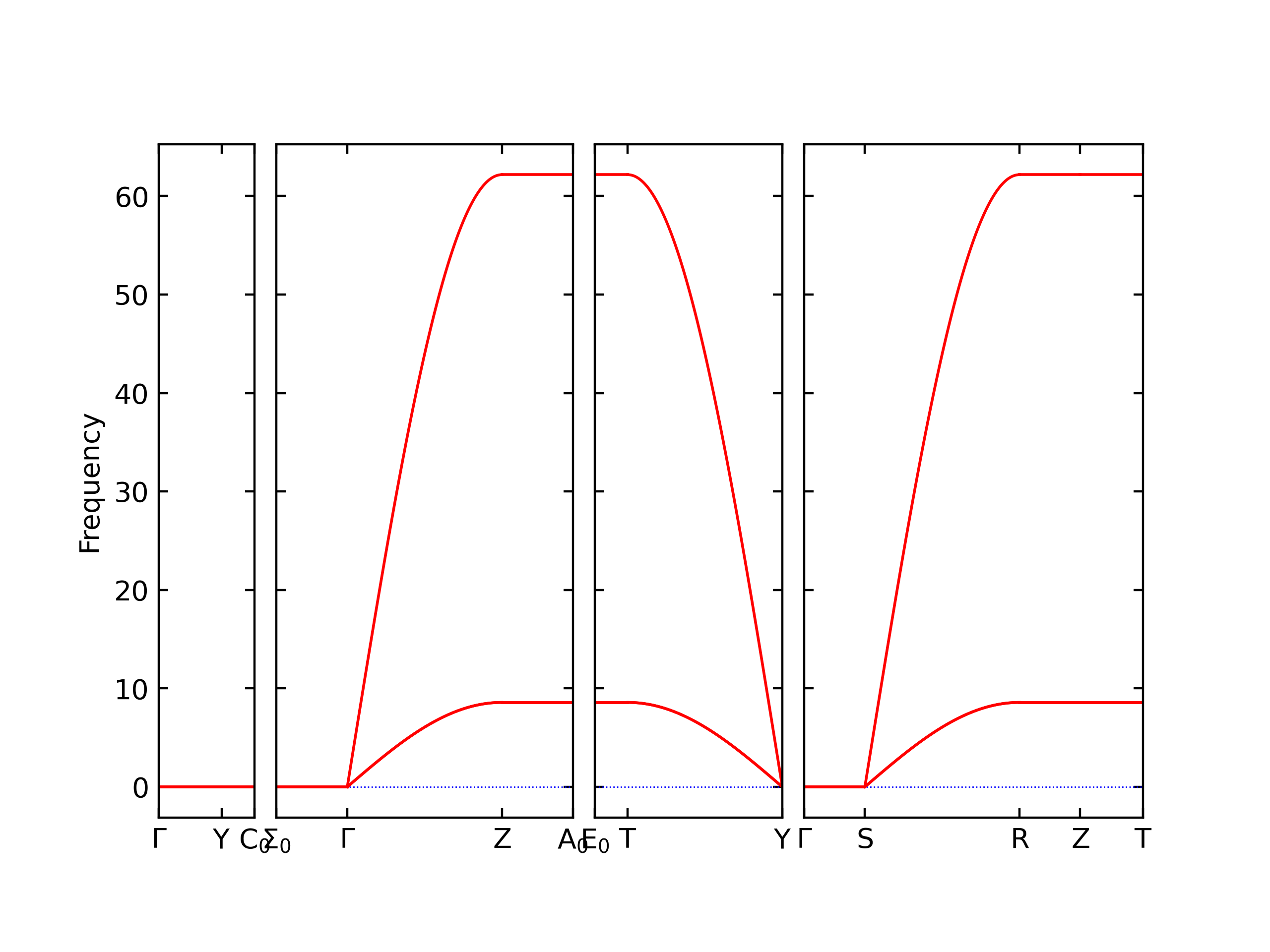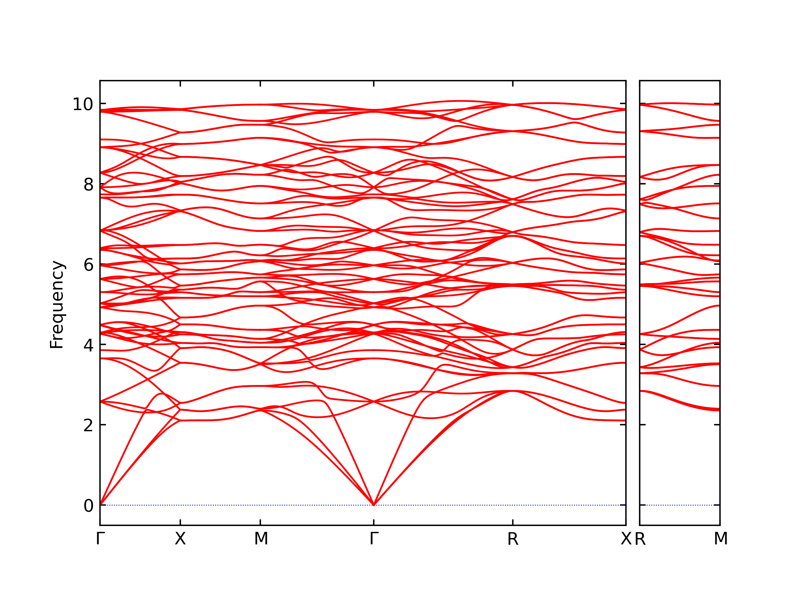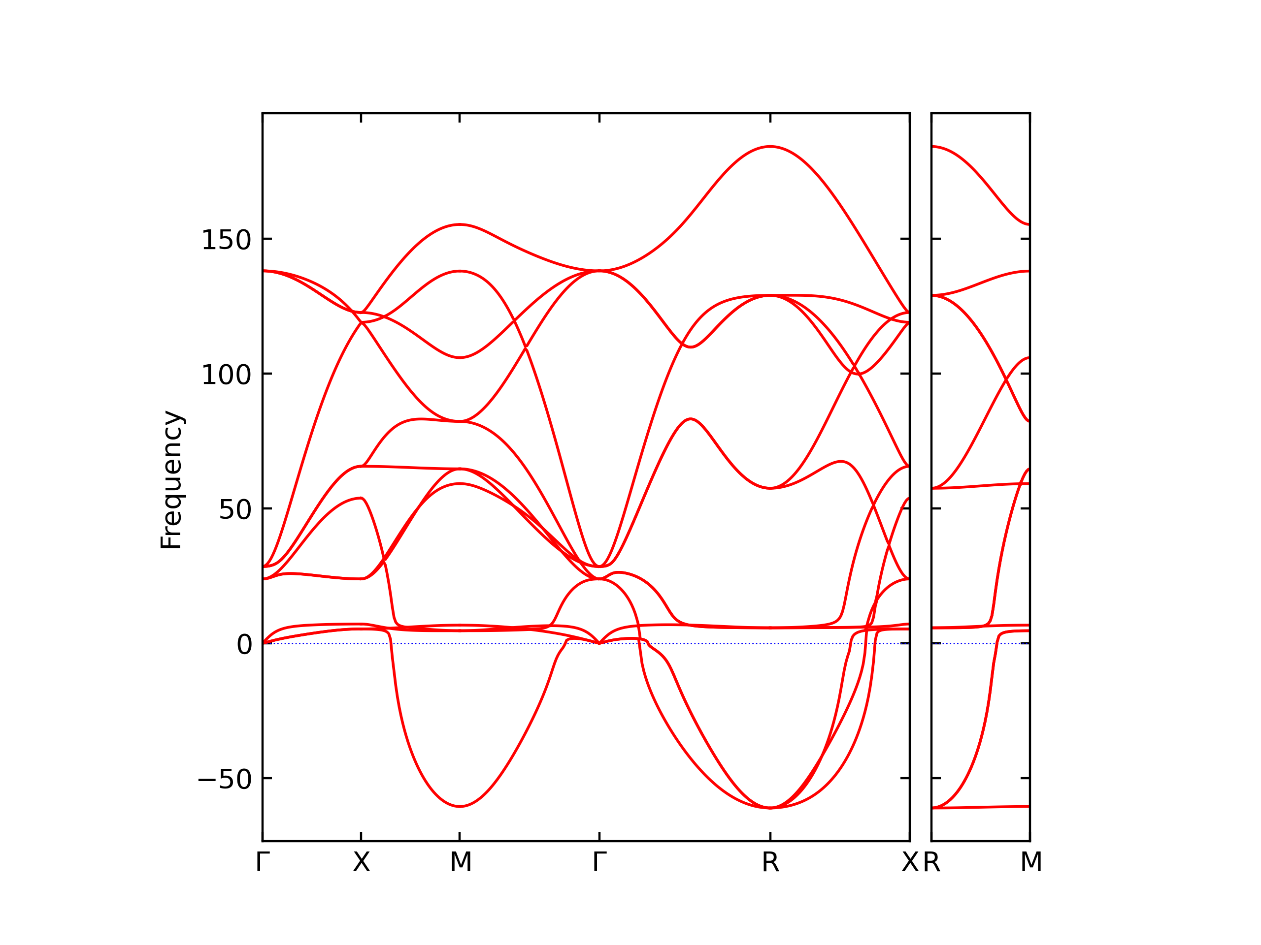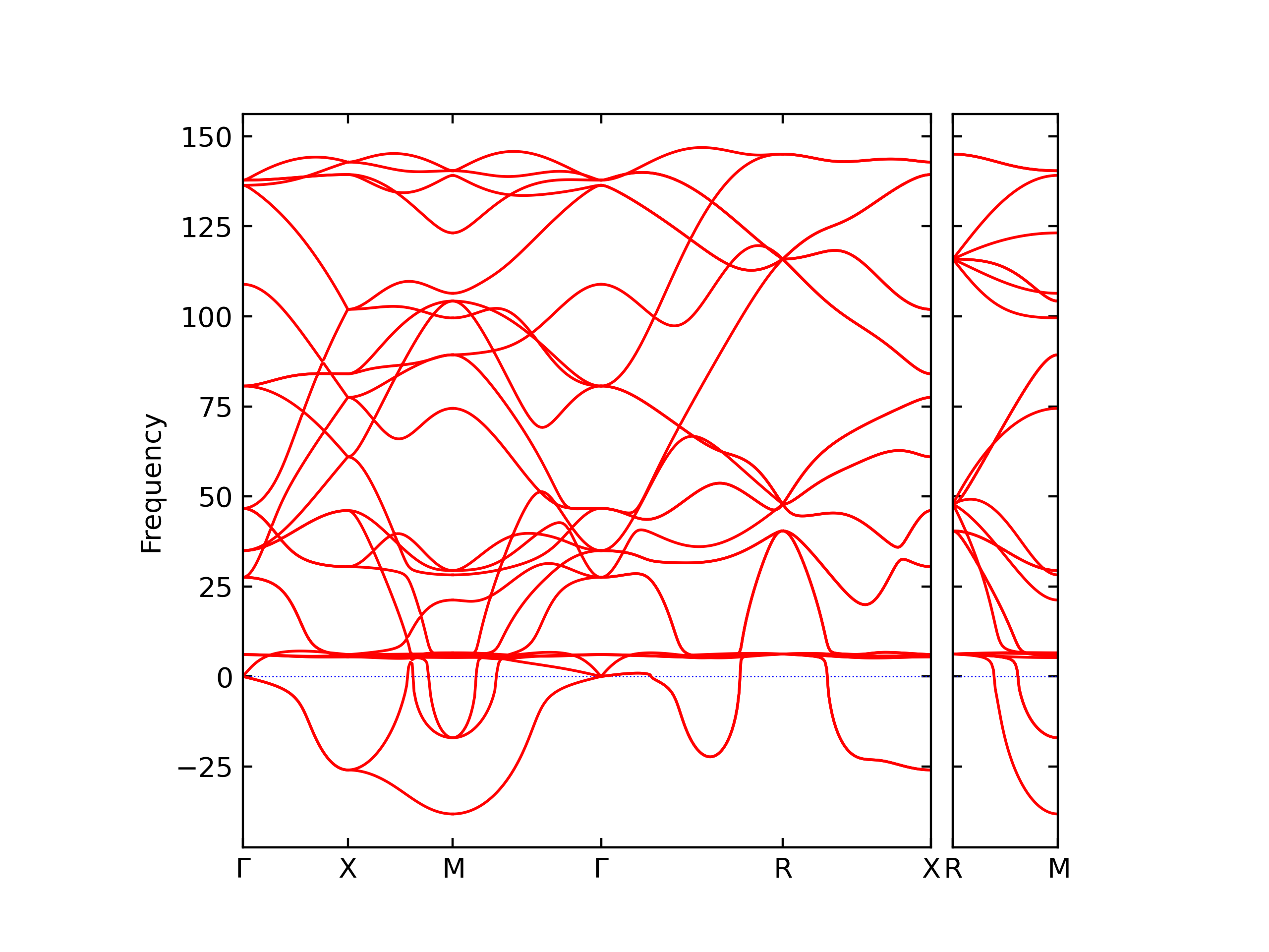 Phonon band structures and crystal properties estimated from quasi-harmonic approximation (QHA) calculations are displayed for select crystals. The calculations were performed using phonopy and LAMMPS. For the phonon calculations, 3x3 supercells of the potential-specific relaxed crystals were used. The QHA calculations were based on 11 strain states ranging from -0.05 to 0.05.