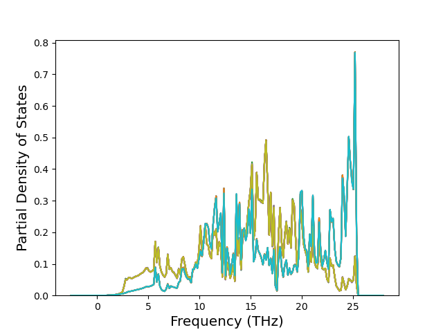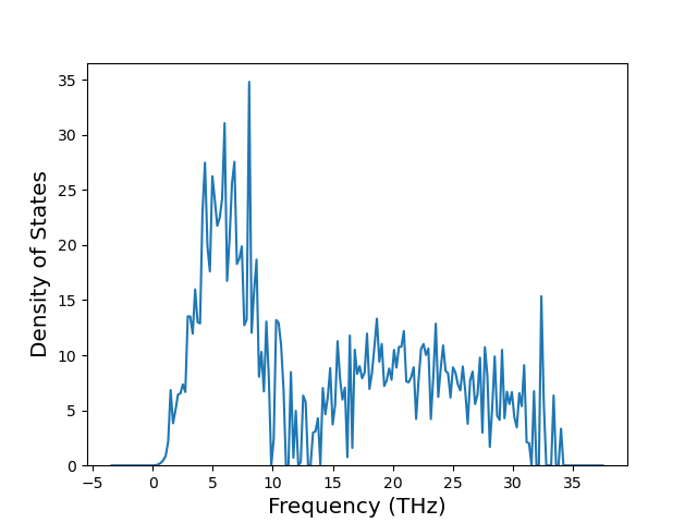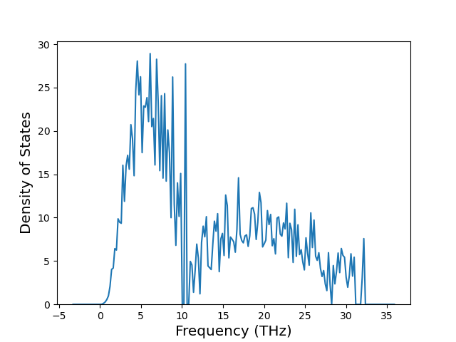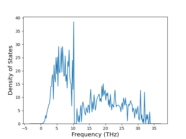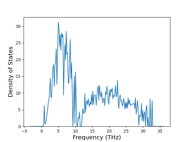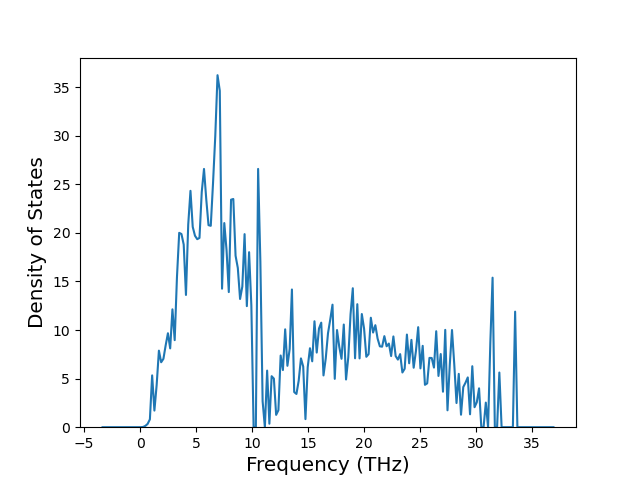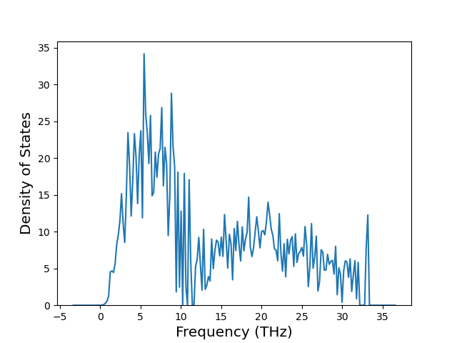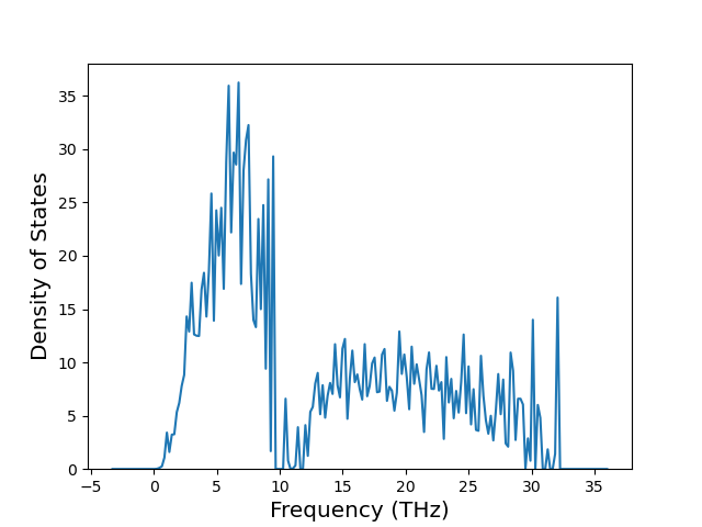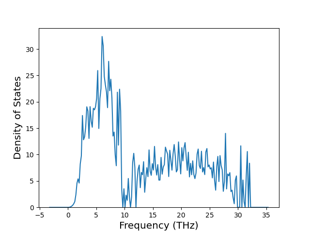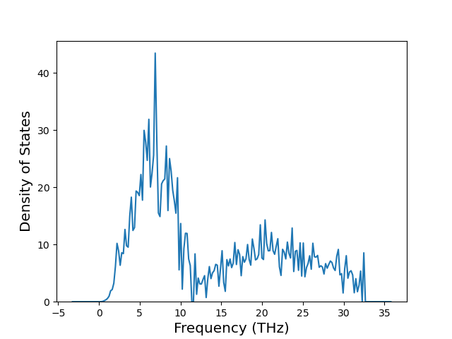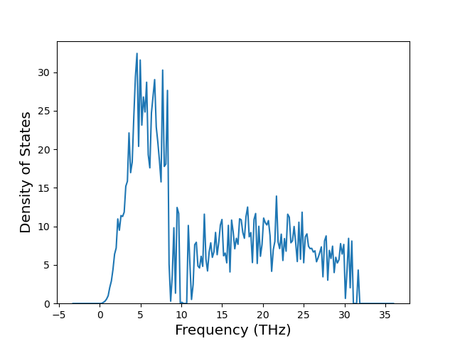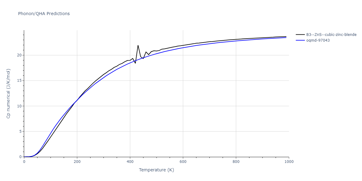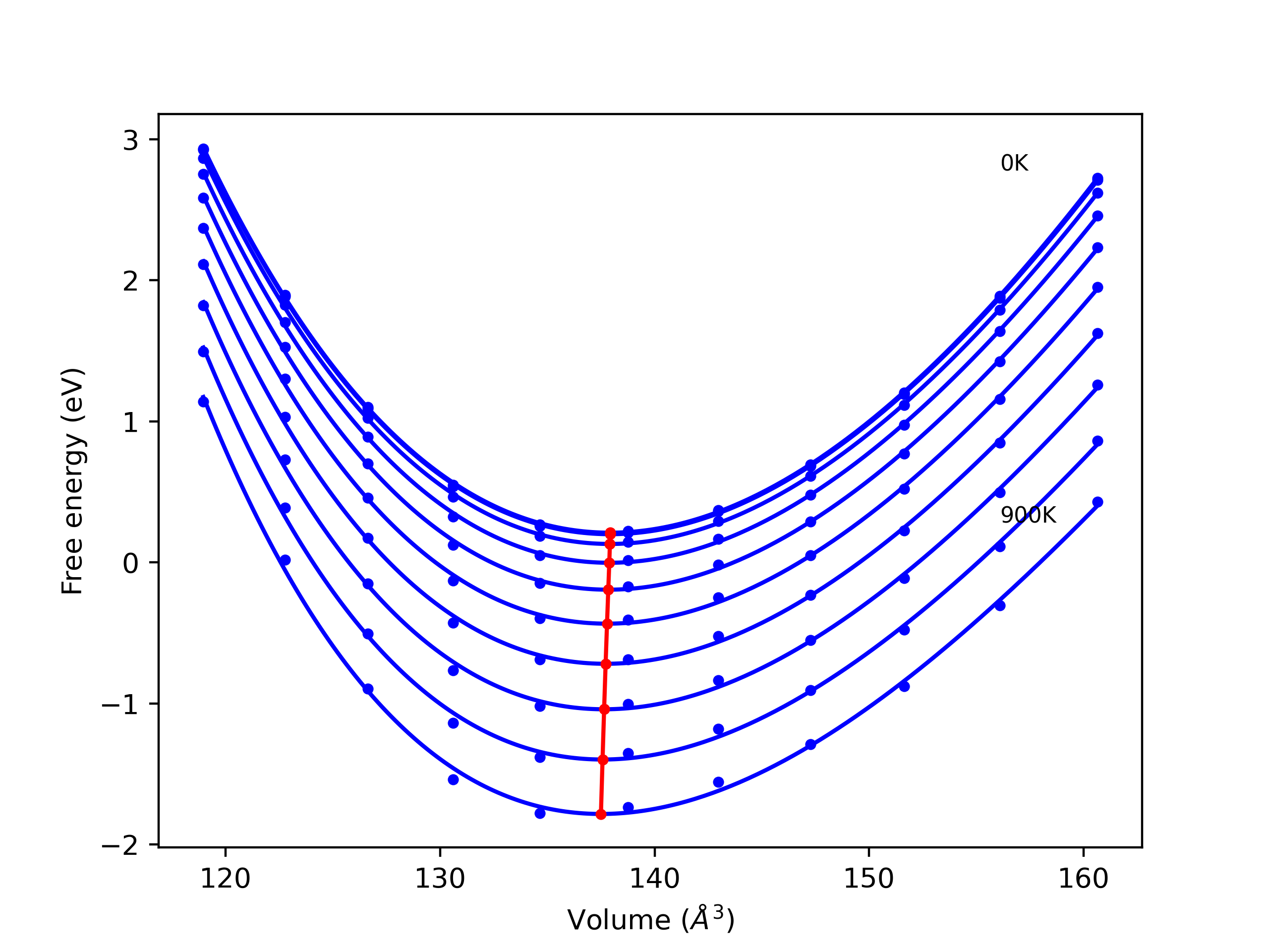 The Gibbs energies of the phases are estimated using thermodynamic integration between the interatomic potential in question and a simpler model with known Gibbs free energy values. For solids, the reference model is an Einstein solid, while for liquids it is the Uhlenbeck-Ford potential. Besides a short run at the start of the solid calculations to estimate Einstein model spring constants, the two calculations proceed similarly. Starting with the final relaxation configurations, the systems are stabilized for 25,000 steps. Then, over the next 50,000 steps the potential is swapped out for the reference potential. The system is then stabilized for another 25,000 steps with the reference model before a reverse swap of 50,000 steps is performed. The simulation ends with one final 25,000 step stabilization period. From the simulation, the irreversible work of transformation is estimated and used to compute the absolute Gibbs free energy of the target phase and potential relative to the reference potential. Entropy is estimated as the difference in enthalpy and Gibbs free energy and divided by temperature.