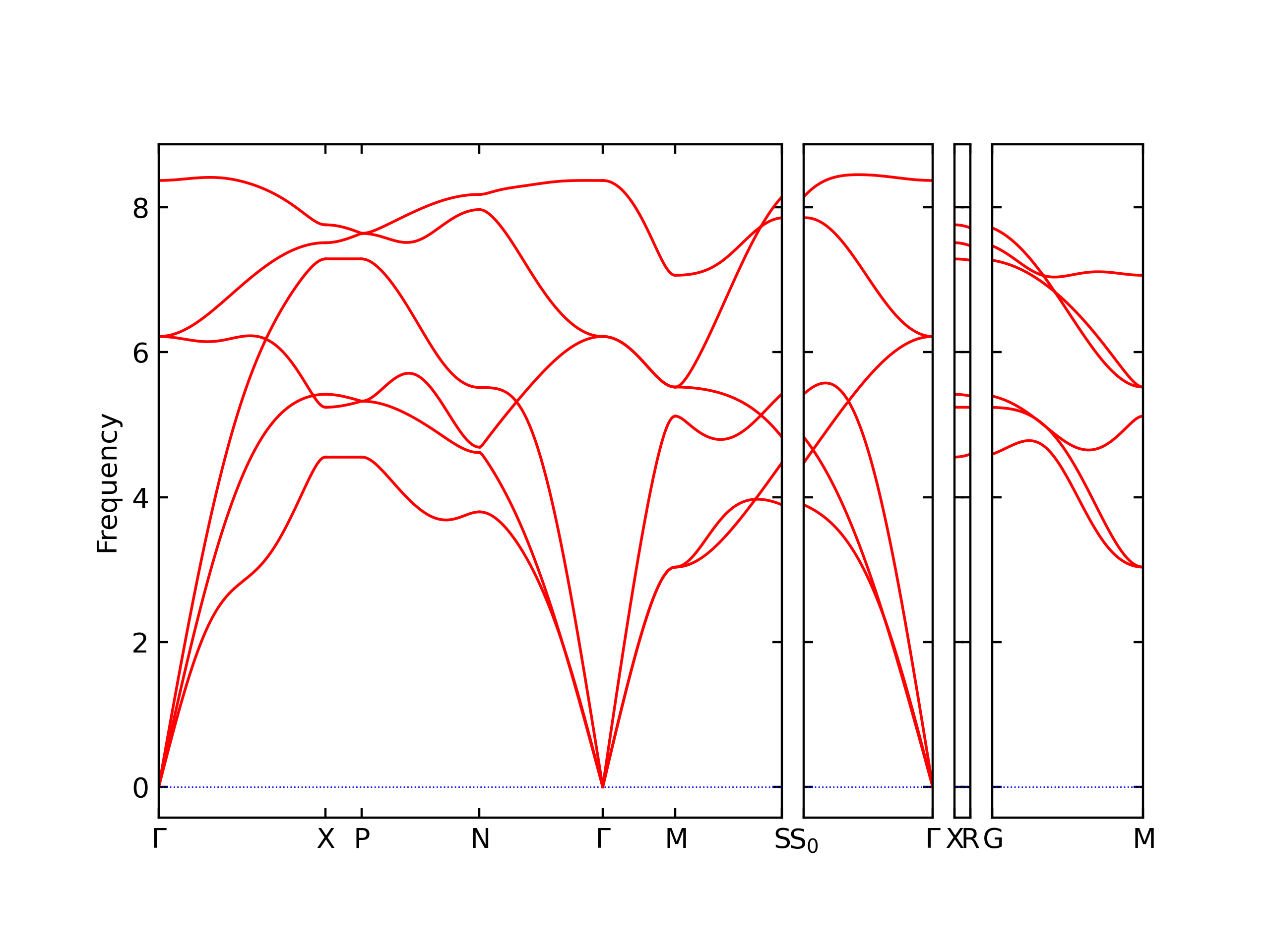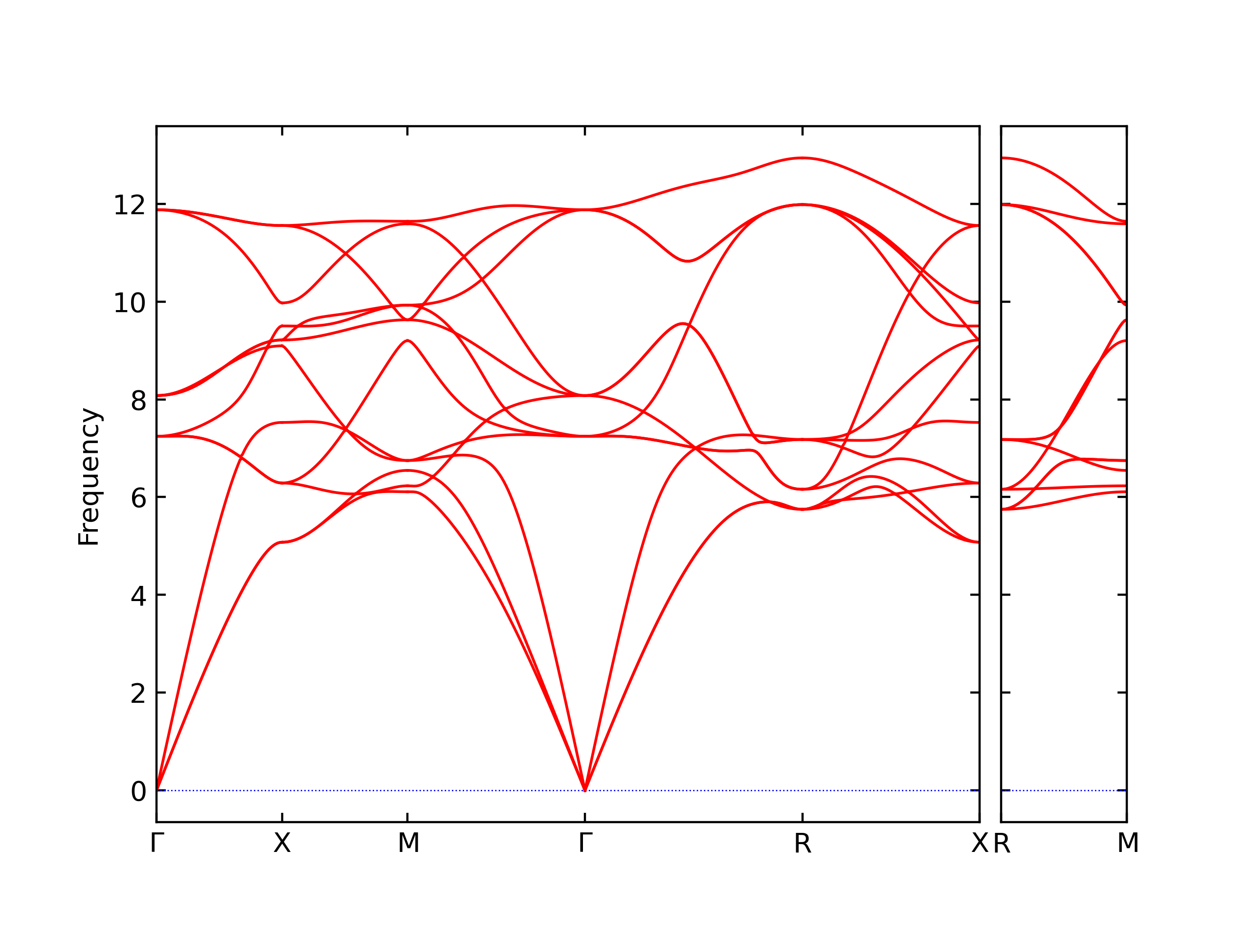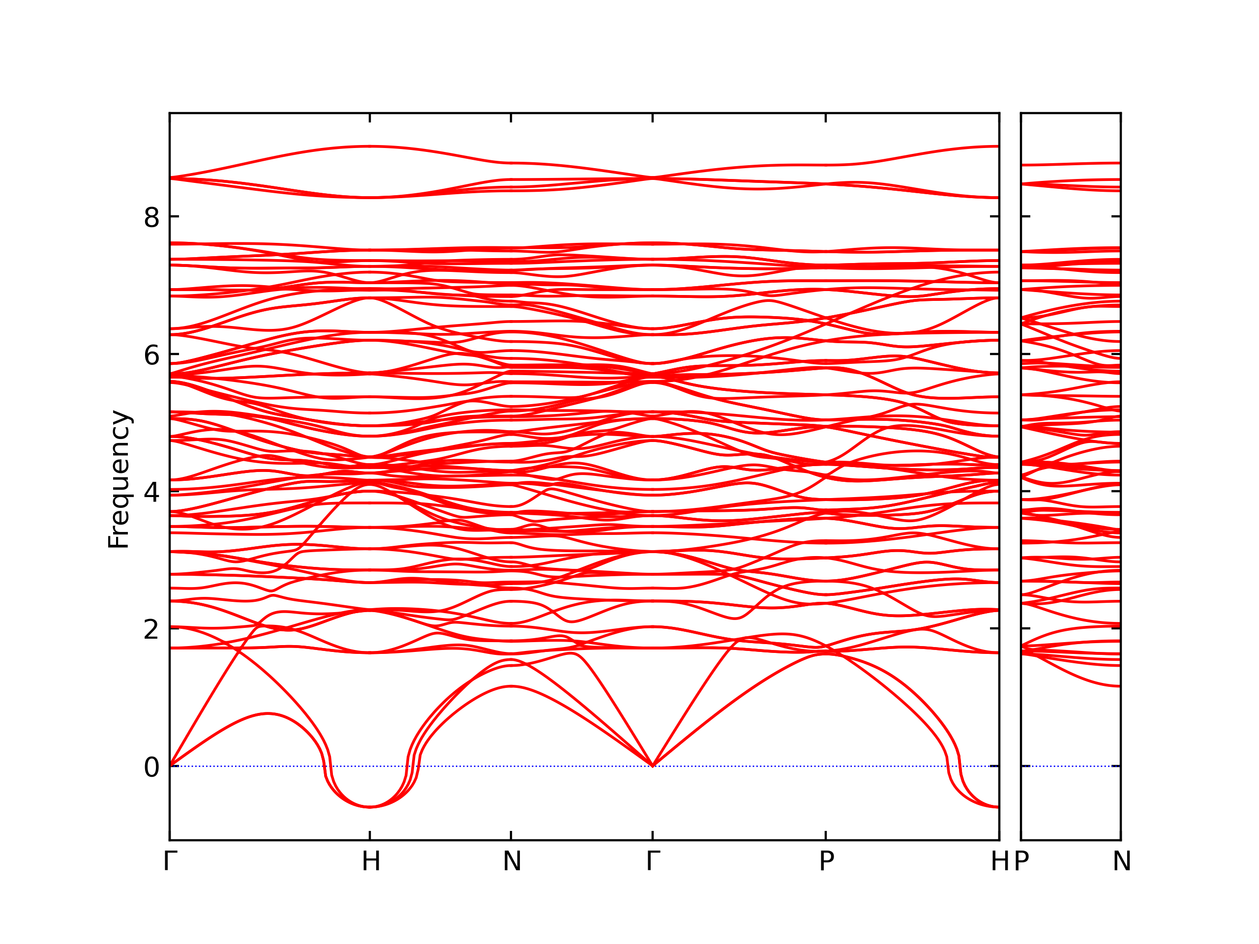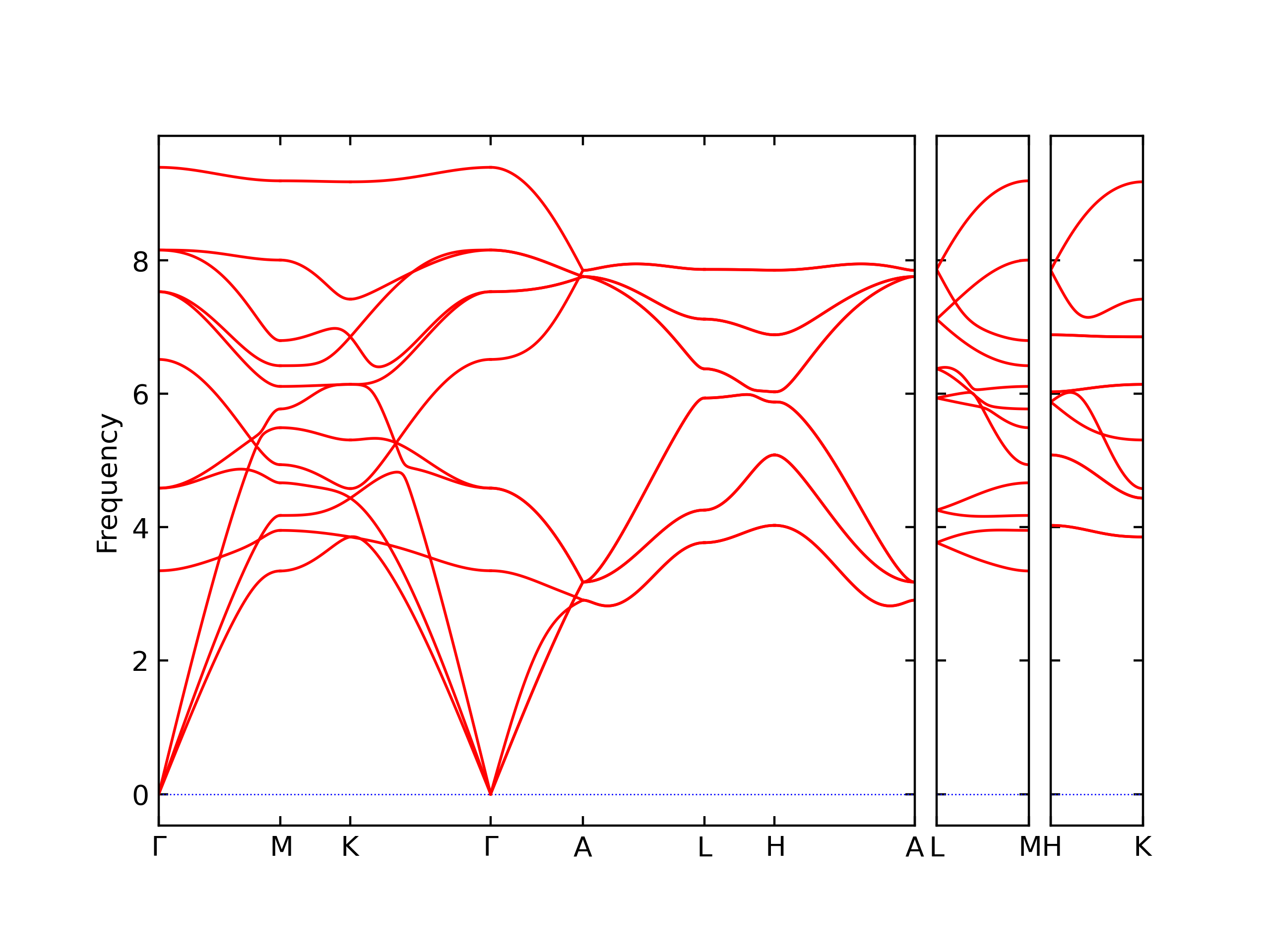 Phonon band structures and crystal properties estimated from quasi-harmonic approximation (QHA) calculations are displayed for select crystals. The calculations were performed using phonopy and LAMMPS. For the phonon calculations, 3x3 supercells of the potential-specific relaxed crystals were used. The QHA calculations were based on 11 strain states ranging from -0.05 to 0.05.