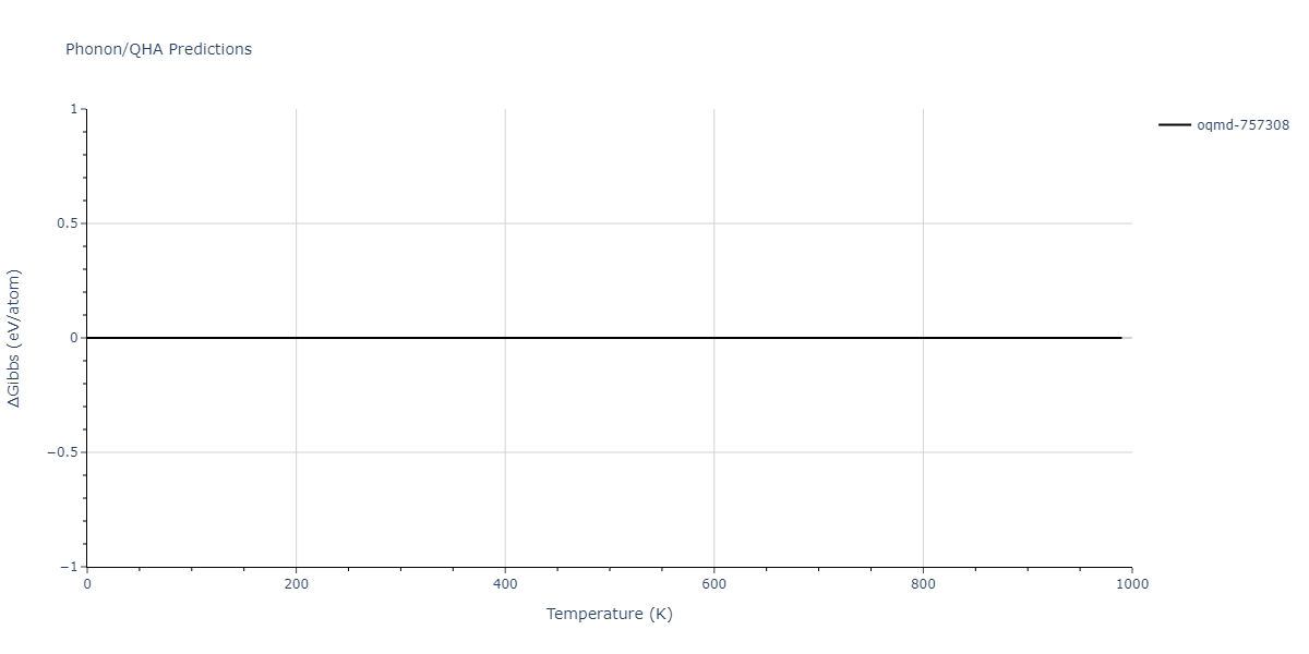 The Gibbs energies of the phases are estimated using thermodynamic integration between the interatomic potential in question and a simpler model with known Gibbs free energy values. For solids, the reference model is an Einstein solid, while for liquids it is the Uhlenbeck-Ford potential. Besides a short run at the start of the solid calculations to estimate Einstein model spring constants, the two calculations proceed similarly. Starting with the final relaxation configurations, the systems are stabilized for 25,000 steps. Then, over the next 50,000 steps the potential is swapped out for the reference potential. The system is then stabilized for another 25,000 steps with the reference model before a reverse swap of 50,000 steps is performed. The simulation ends with one final 25,000 step stabilization period. From the simulation, the irreversible work of transformation is estimated and used to compute the absolute Gibbs free energy of the target phase and potential relative to the reference potential. Entropy is estimated as the difference in enthalpy and Gibbs free energy and divided by temperature.