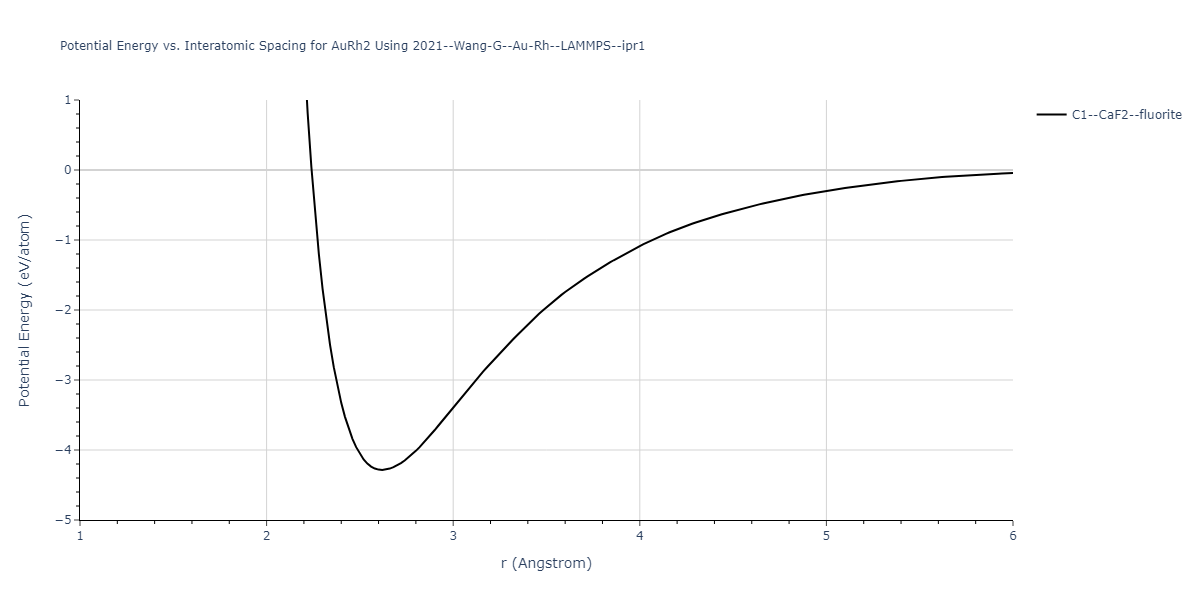 Plots of potential energy vs interatomic spacing, r, are shown below for a number of crystal structures. The structures are generated based on the ideal atomic positions and b/a and c/a lattice parameter ratios for a given crystal prototype. The size of the system is then uniformly scaled, and the energy calculated without relaxing the system. To obtain these plots, values of r are evaluated every 0.02 Å up to 6 Å.