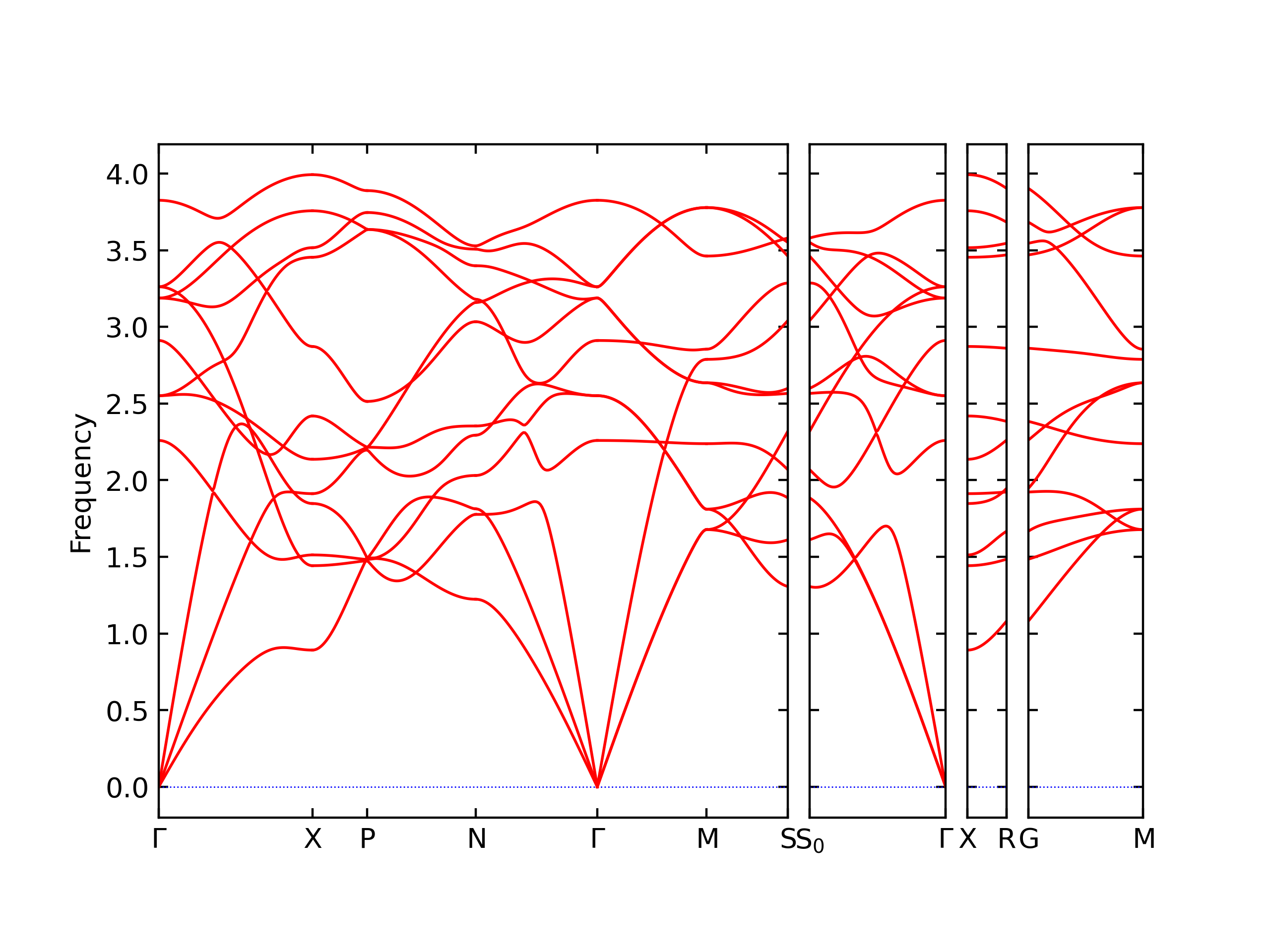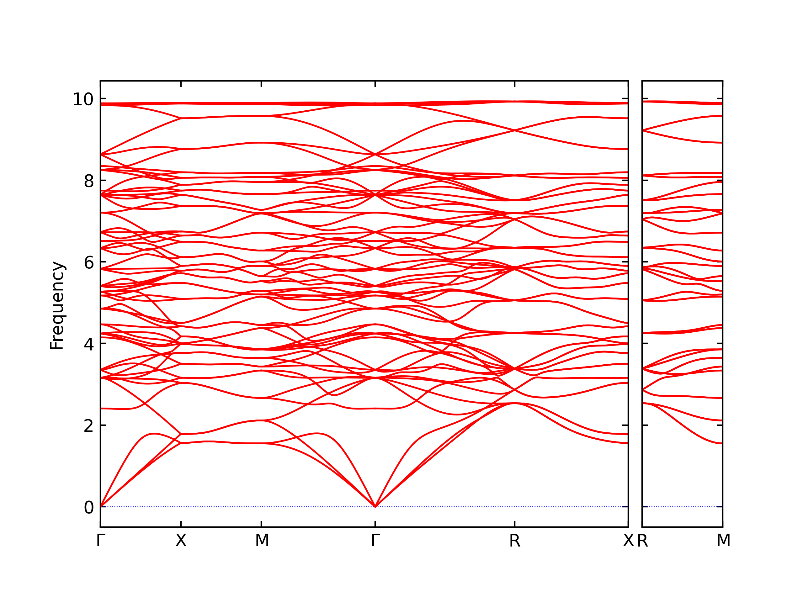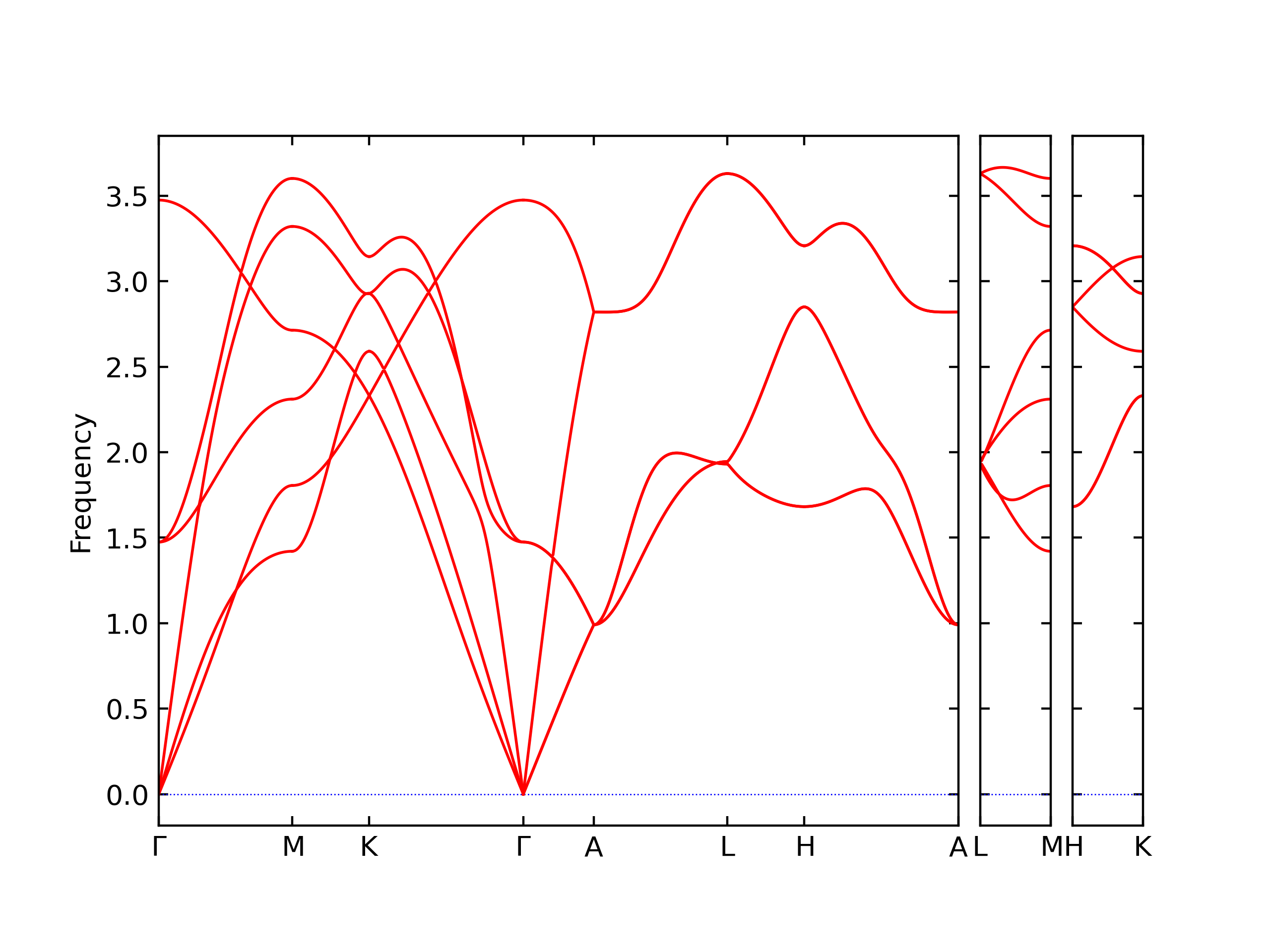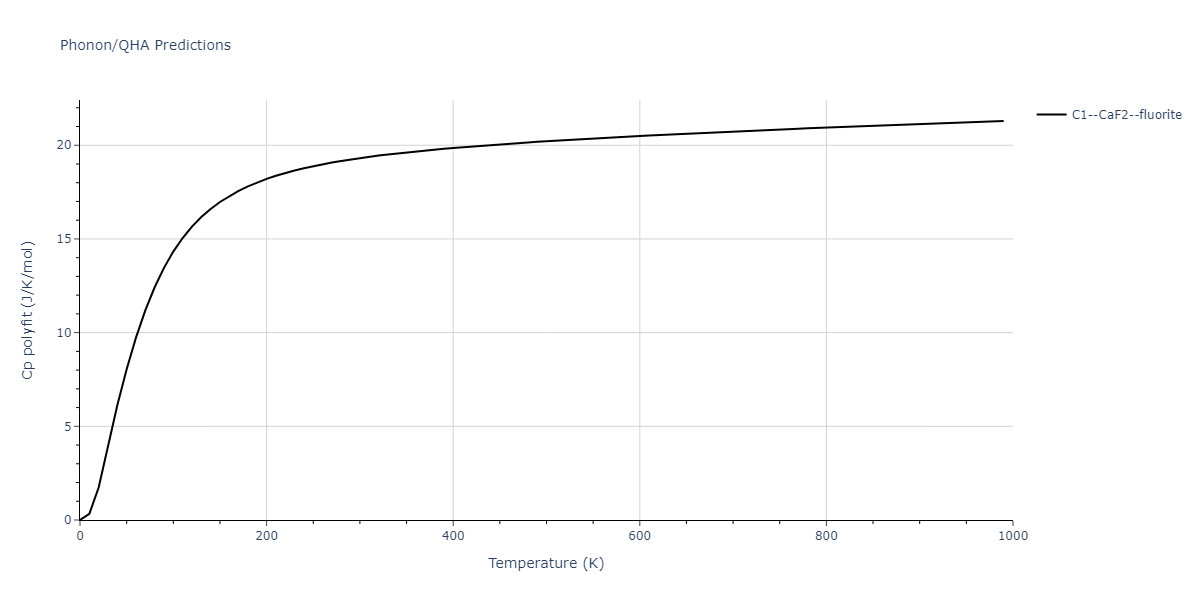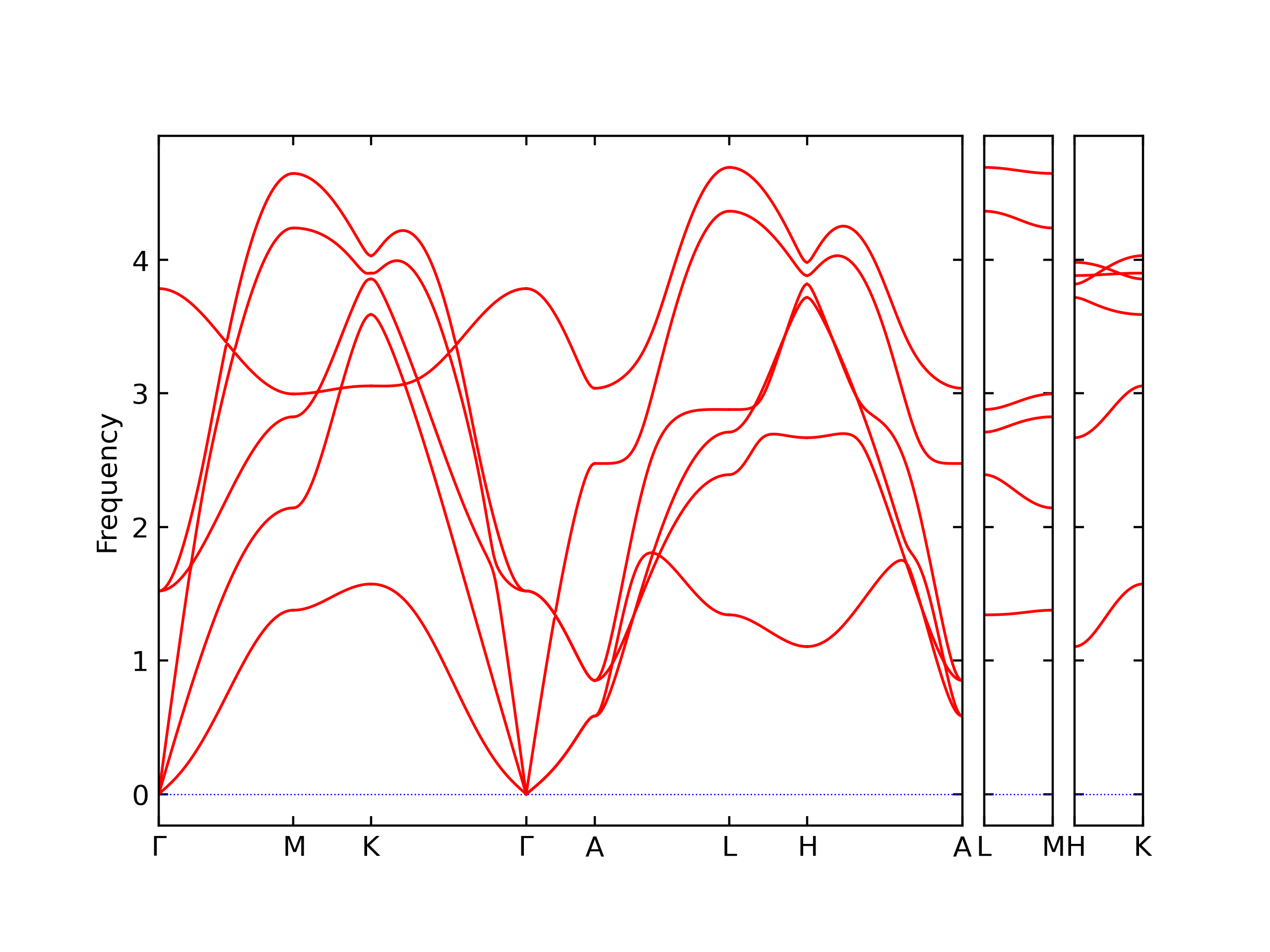 Phonon band structures and crystal properties estimated from quasi-harmonic approximation (QHA) calculations are displayed for select crystals. The calculations were performed using phonopy and LAMMPS. For the phonon calculations, 3x3 supercells of the potential-specific relaxed crystals were used. The QHA calculations were based on 11 strain states ranging from -0.05 to 0.05.
