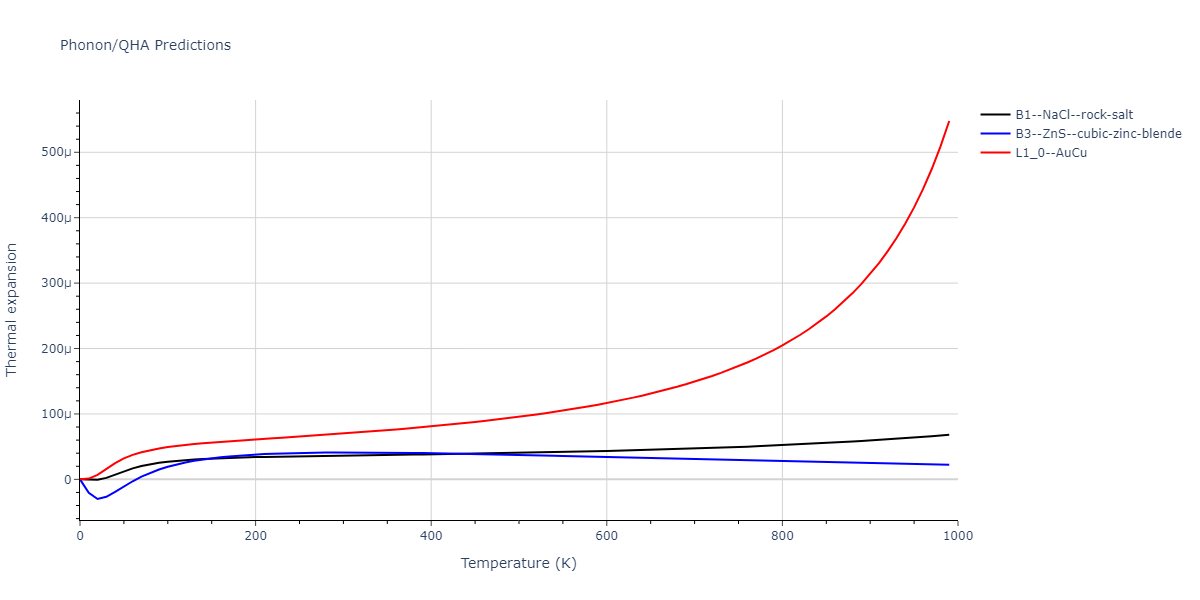 • QHA results may not be available for all crystal structures that have phonon results. Missing QHA results indicates an issue either with the strained states or with the QHA calculation itself.