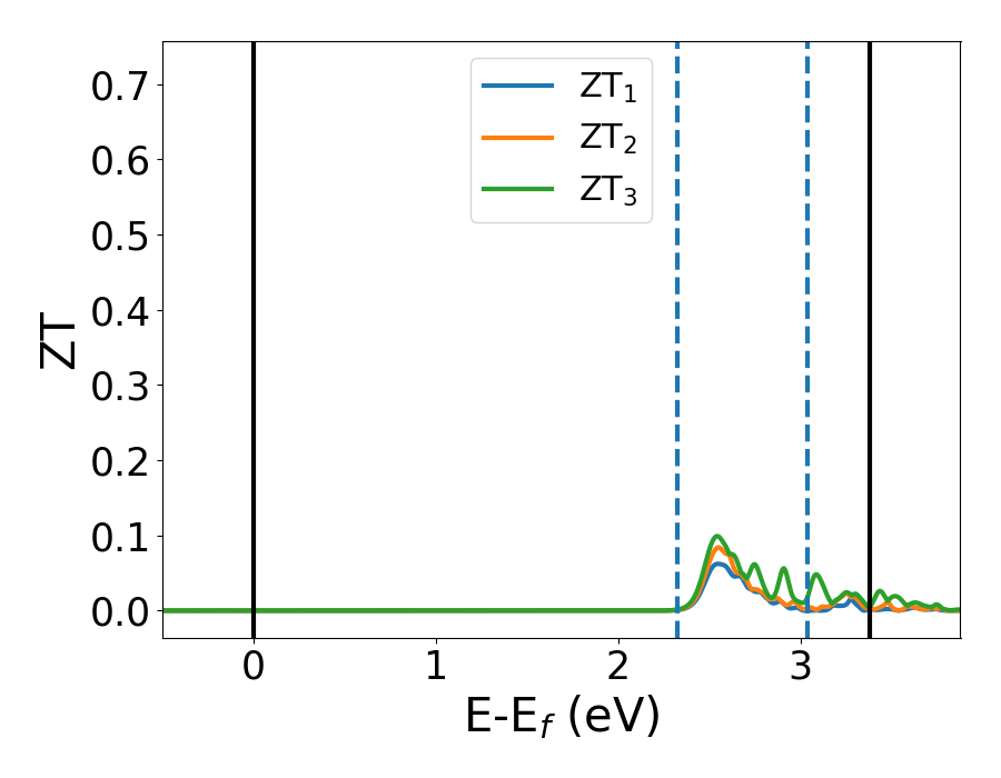 WARNING: Constant relaxation time approximation (10-14 s) and only electronic contribution to thermal conductivity were utilized for calculating ZT.